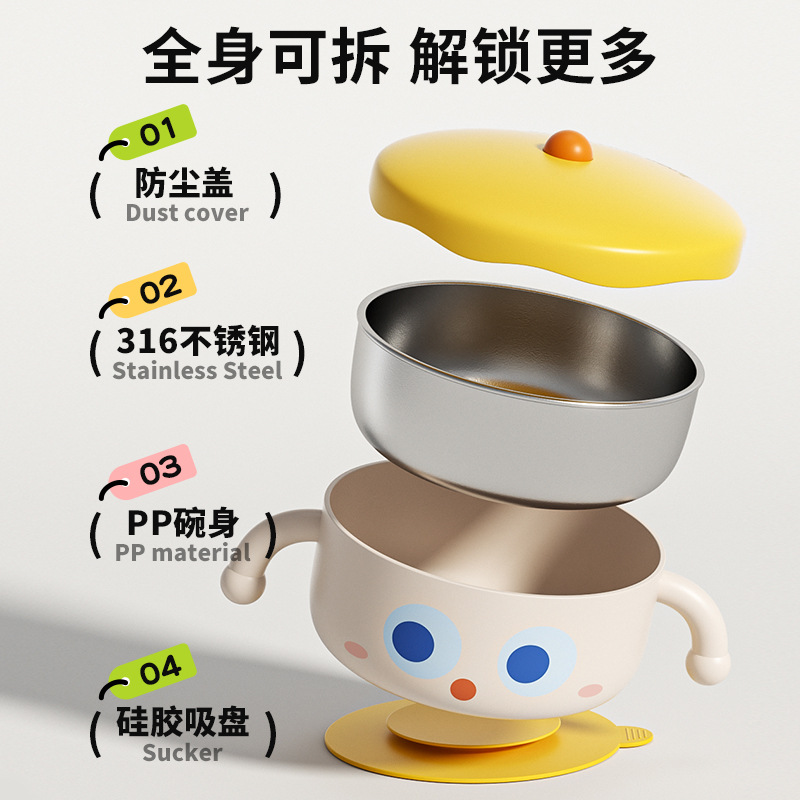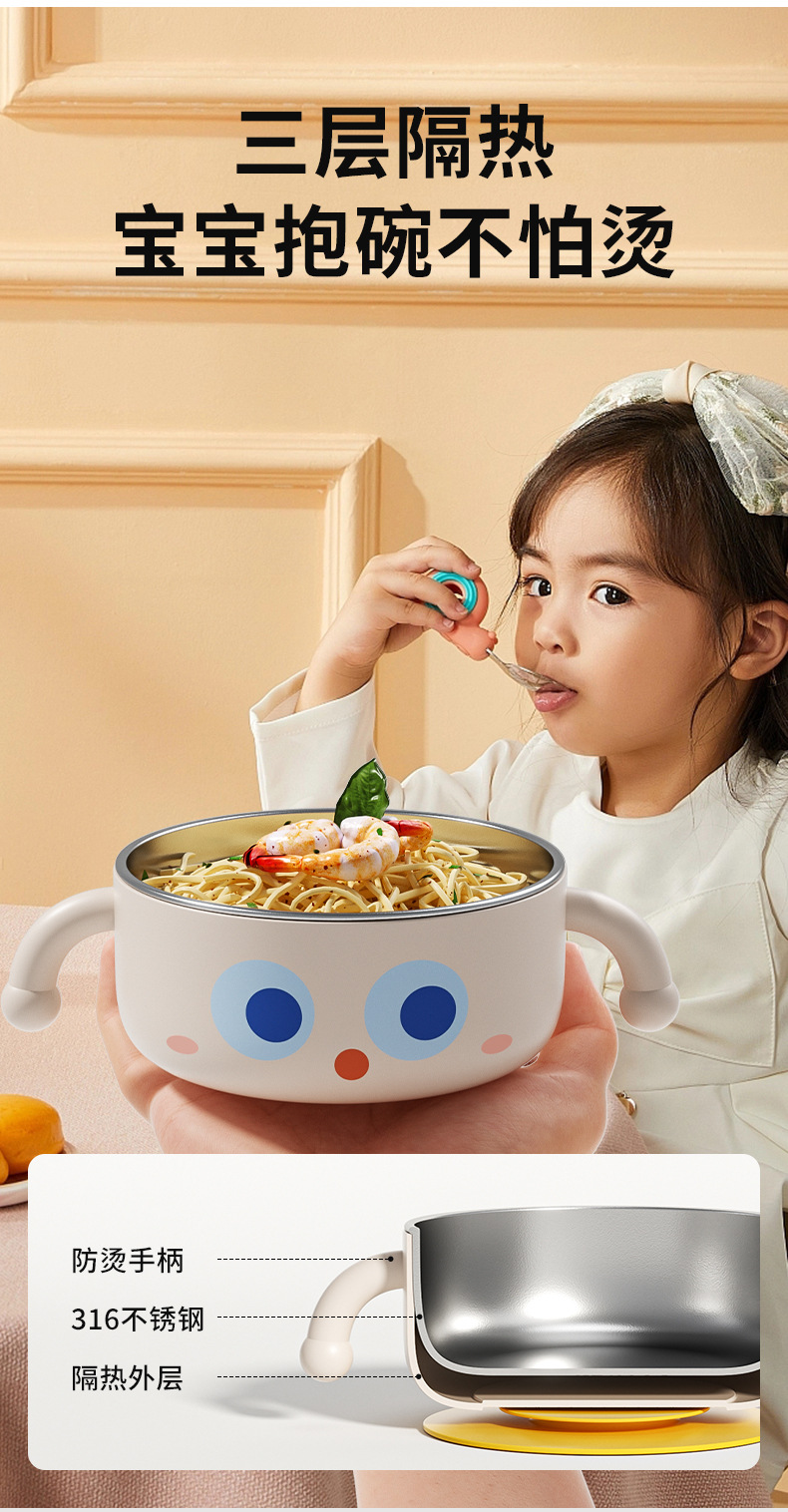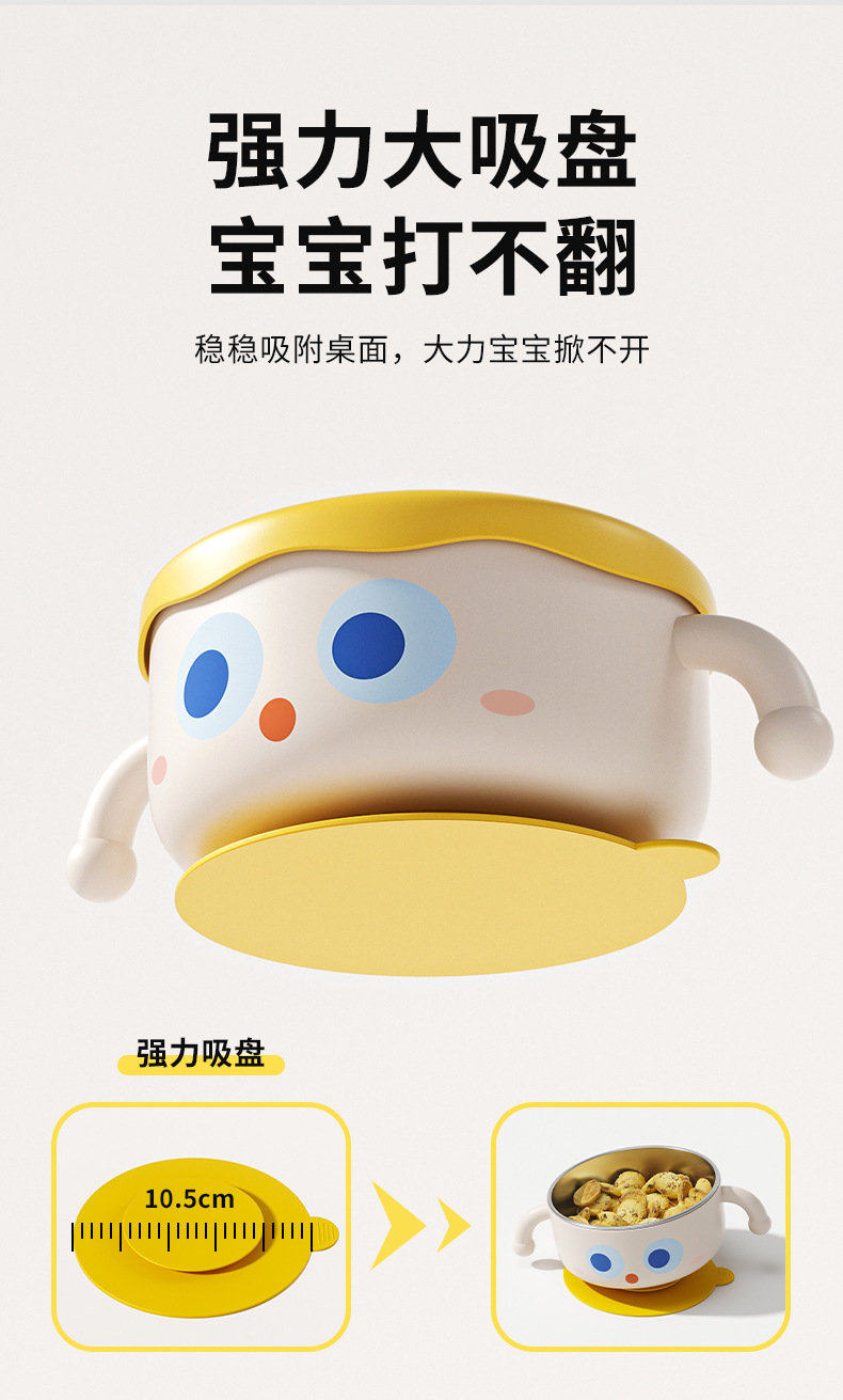 큰 눈 베이비 푸드 그릇 열 보존 보울 베이비 스페셜 어린이 식기 석션 컵 쌀그릇 낙하 방지 및 화상 방지 풀 세트