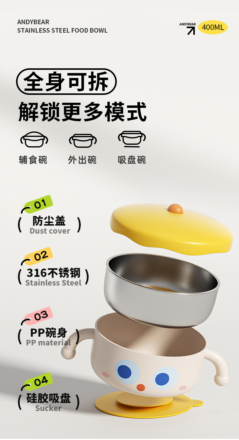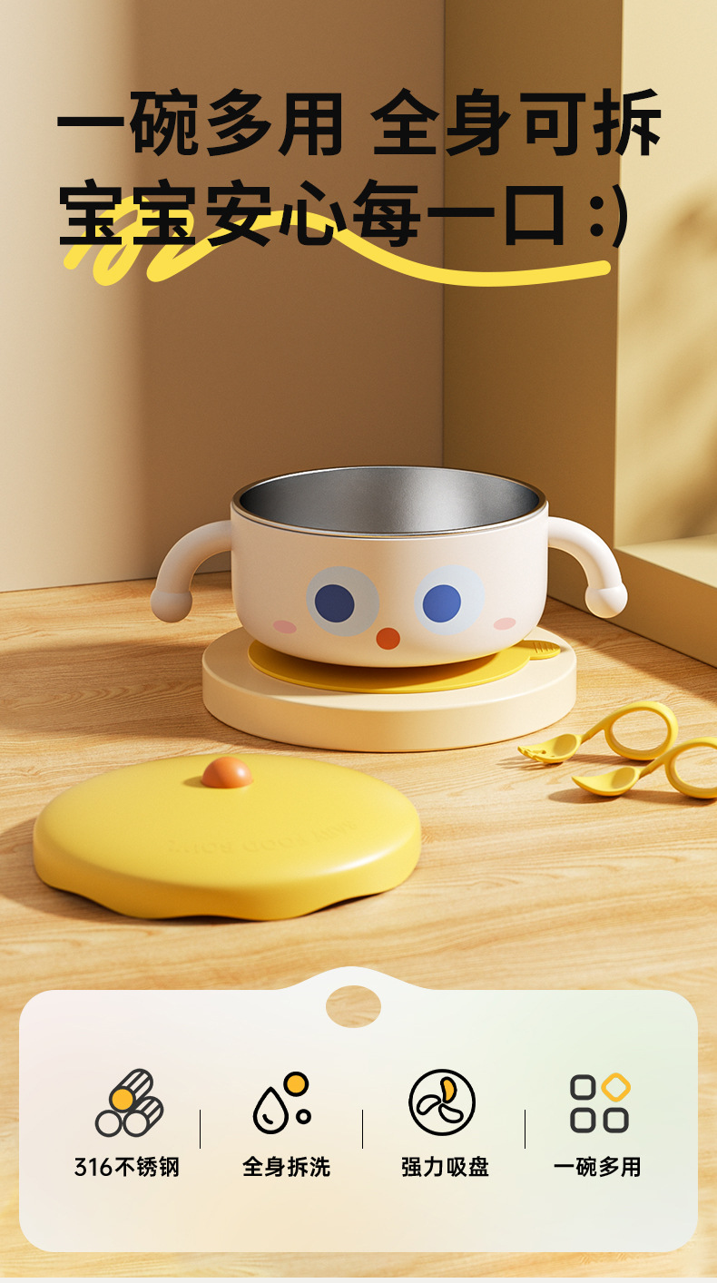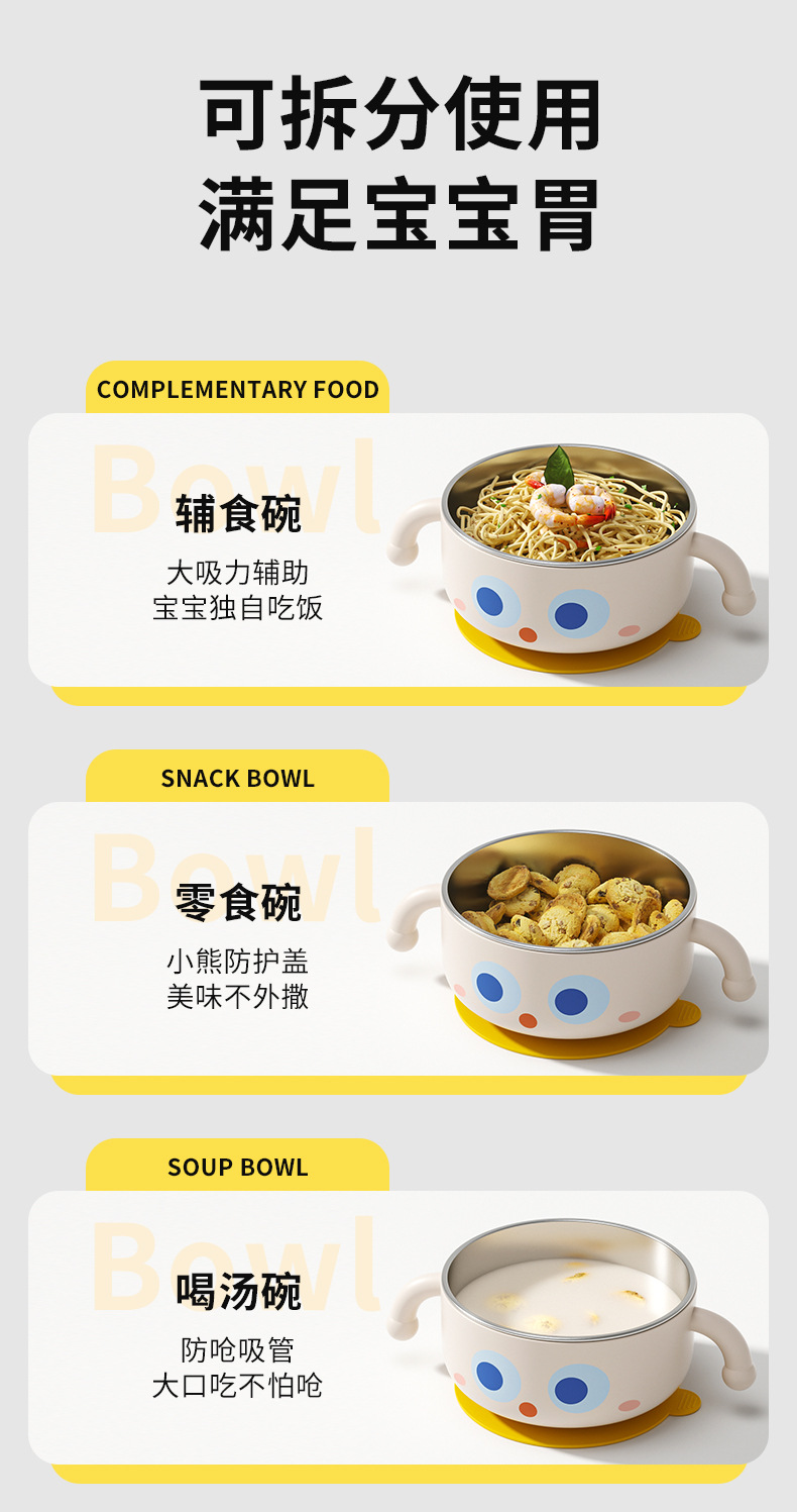 큰 눈 베이비 푸드 그릇 열 보존 보울 베이비 스페셜 어린이 식기 석션 컵 쌀그릇 낙하 방지 및 화상 방지 풀 세트