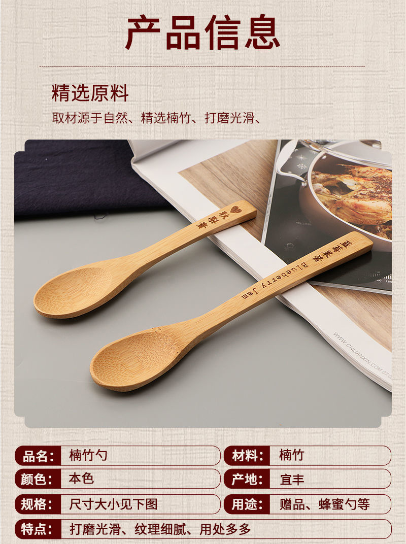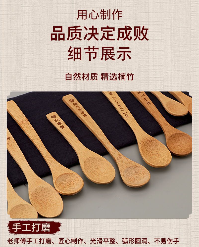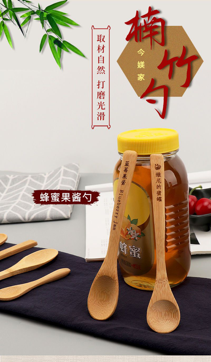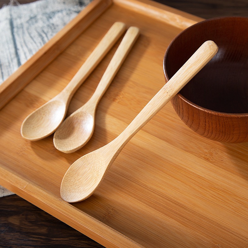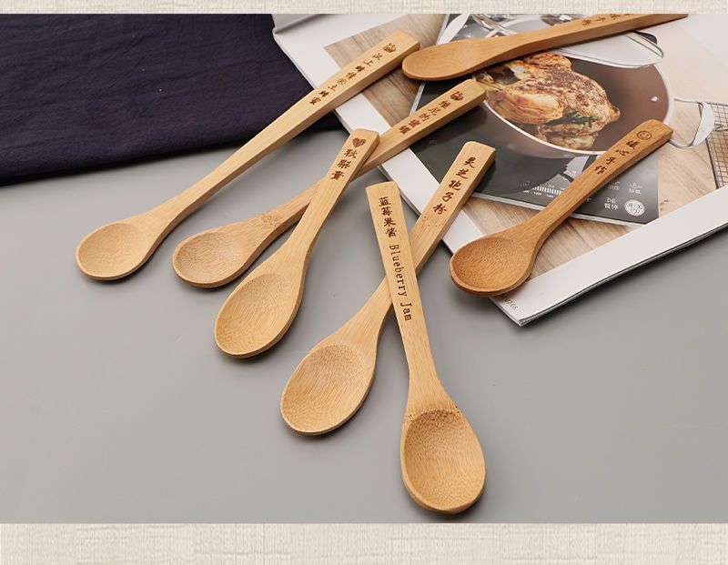 작은 대나무 스푼 꿀 차 일본 커피 스푼 페인트가없는 긴 손잡이 순수 대나무 스푼 가정용 어린이 식기 교반 스푼