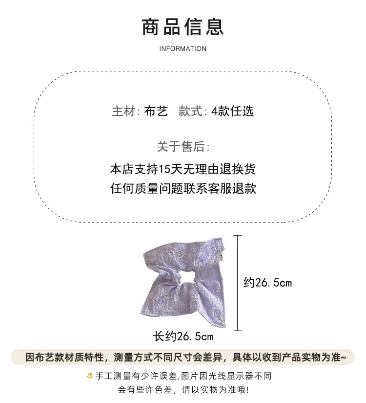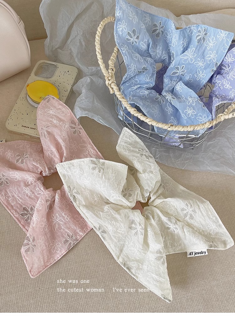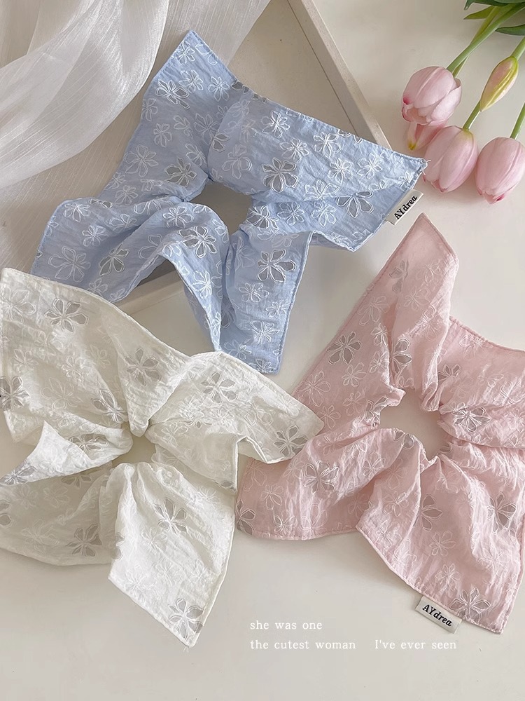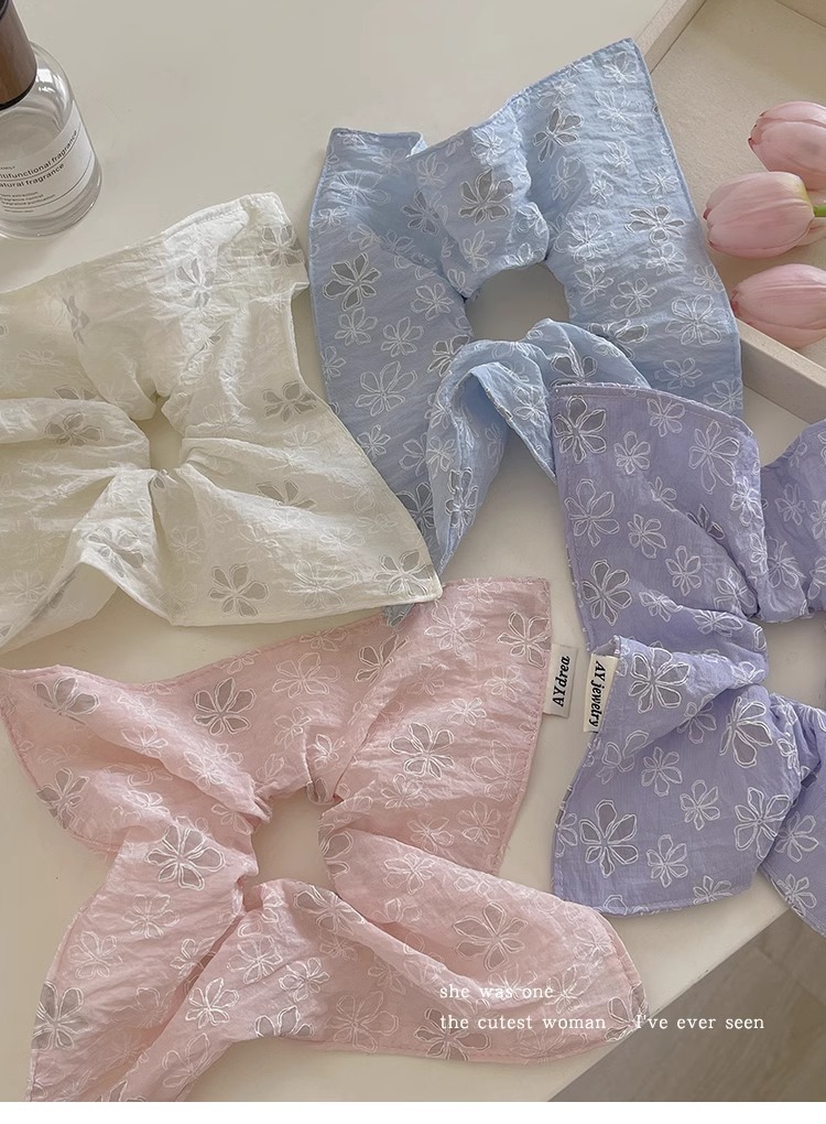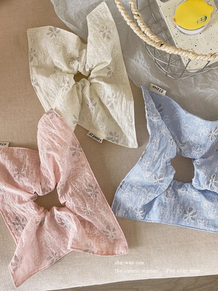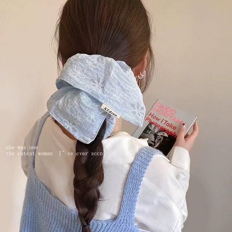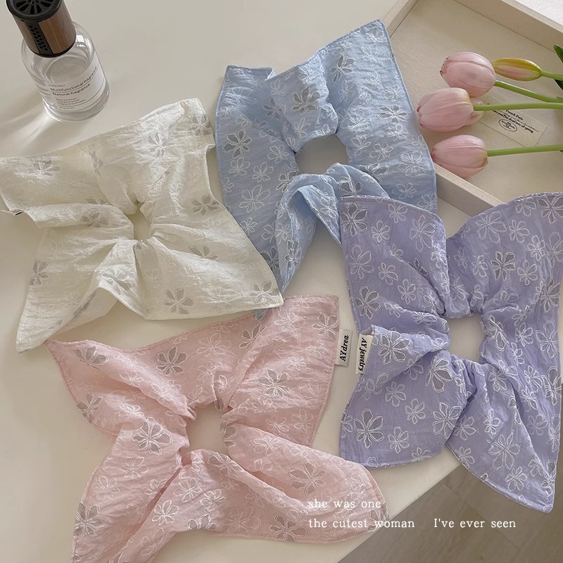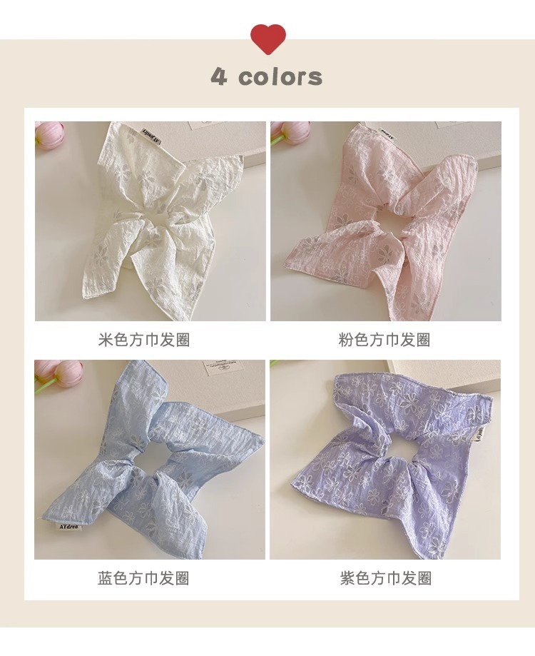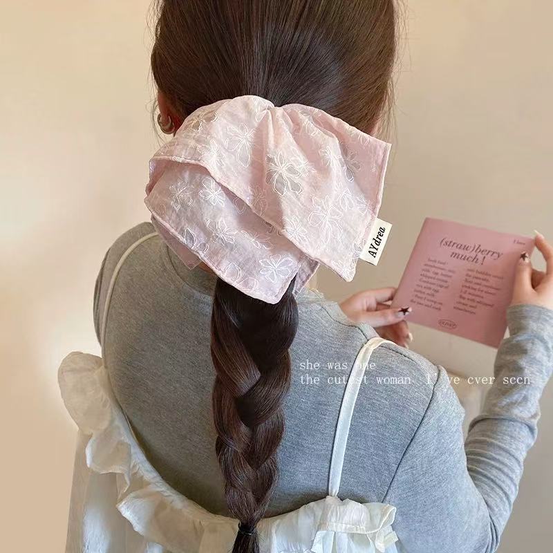 달콤한 자수 꽃 광장 스카프 헤어 서클 대형 그릇 봄과 여름 여성 올 매치 로우 포니 테일 헤어 로프 헤어 헤어 헤어 헤어 액세서리 2025