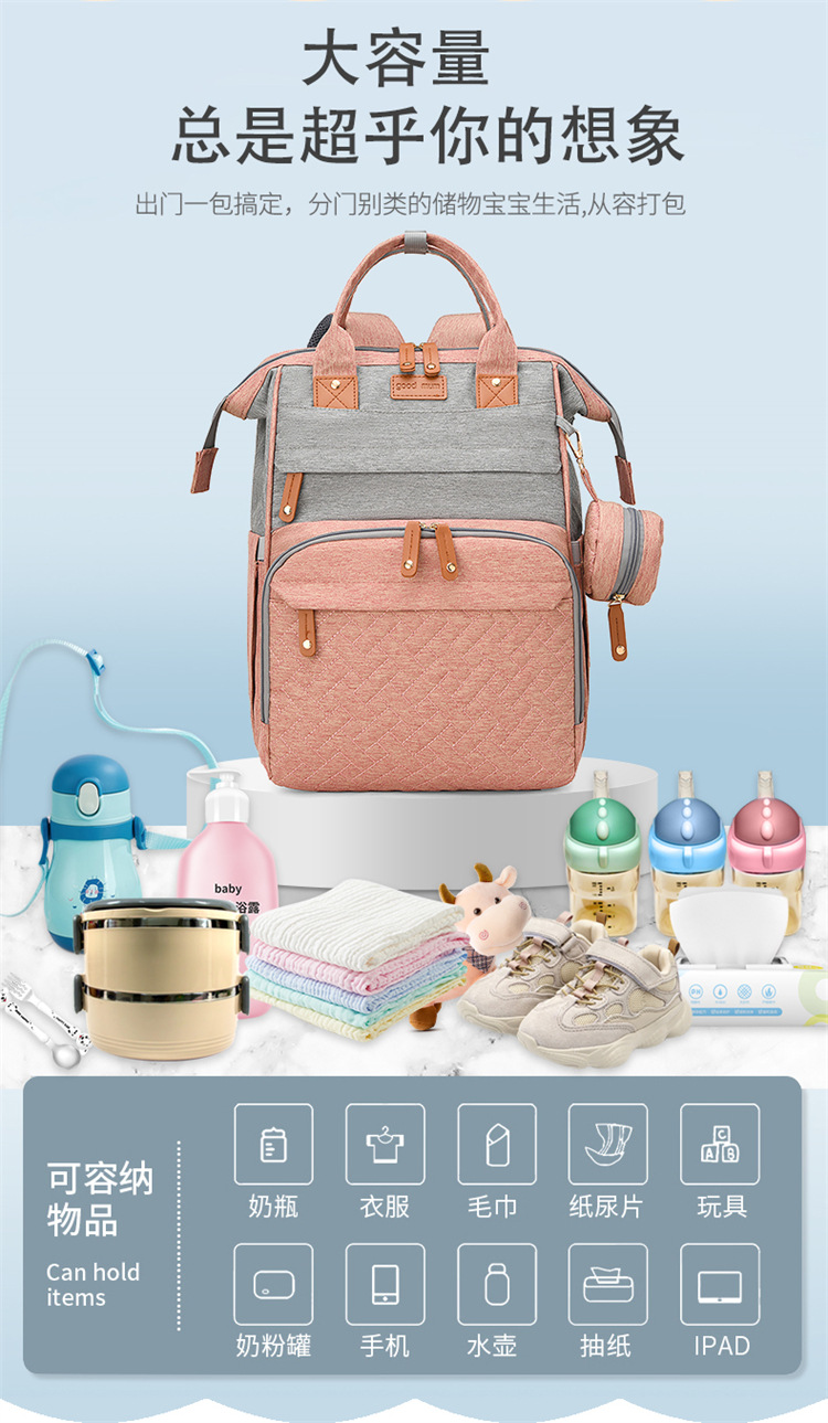 신생아 기저귀 패드가 포함된 새로운 스타일의 엄마 가방, 3피스 세트, 다기능 엄마와 아기 가방, 대용량 외출 엄마 가방