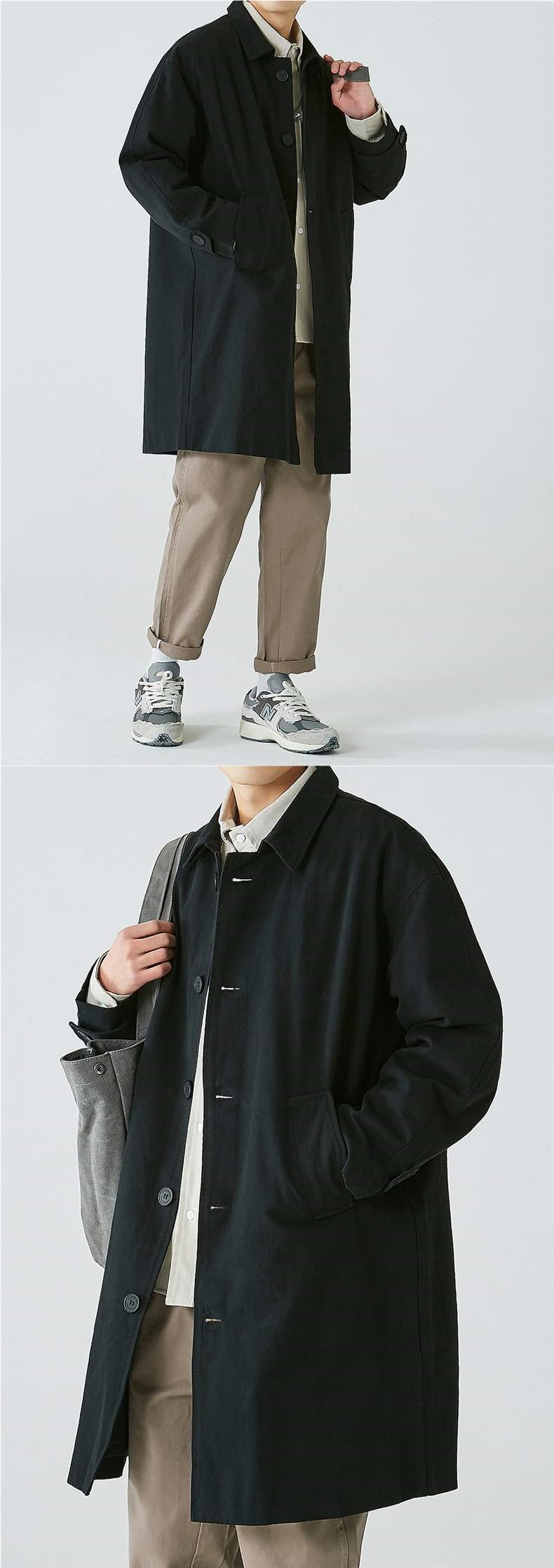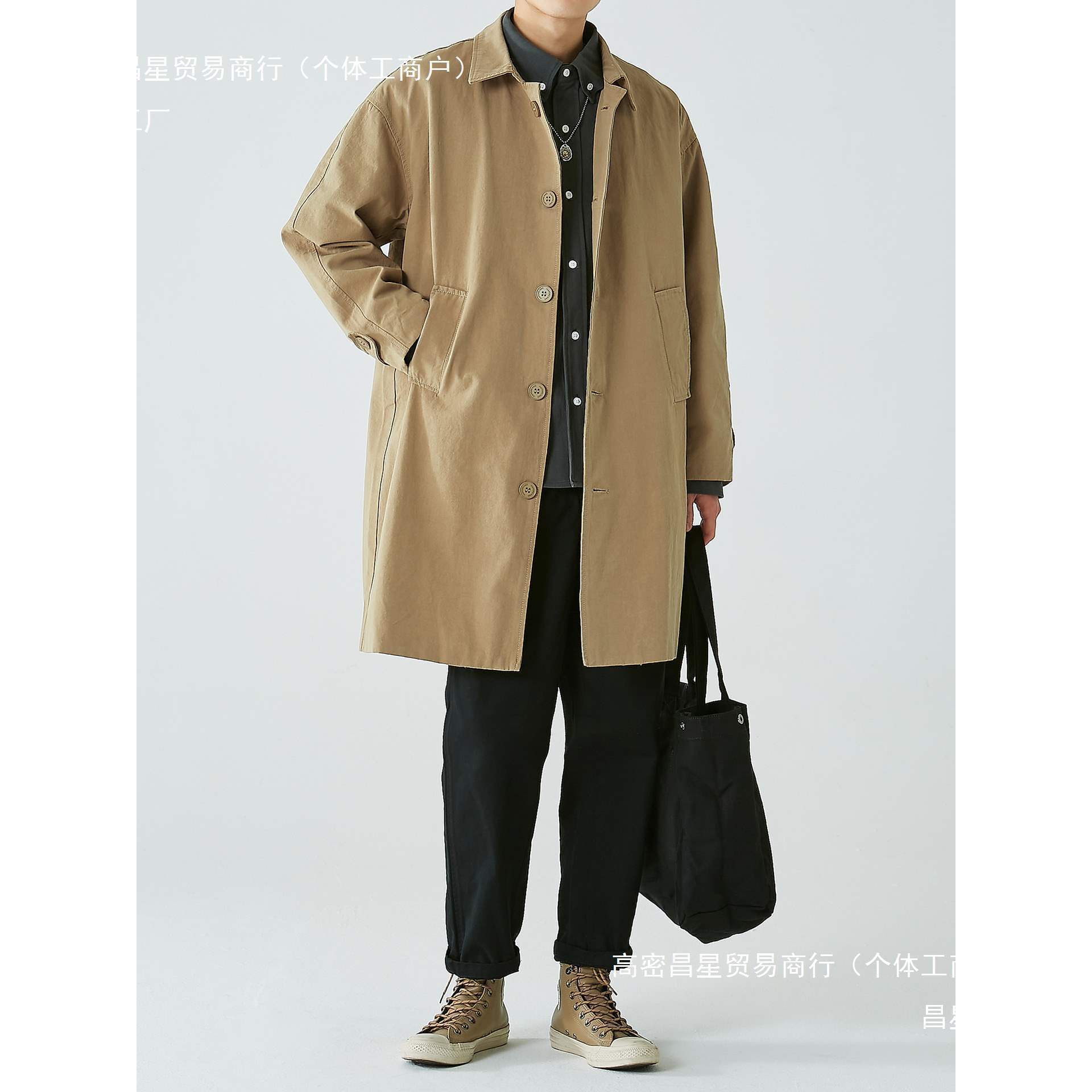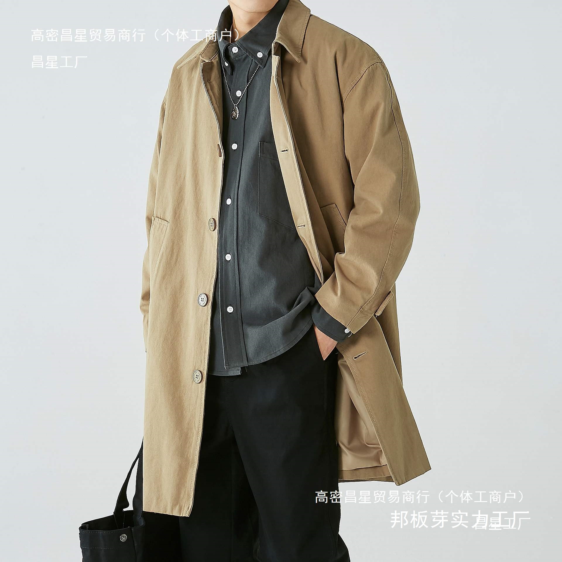 카키 일본 도시 소년 중장 트렌치 코트 남성용 캐주얼 패션 잘 생긴 간단한 캐주얼 통근 도매