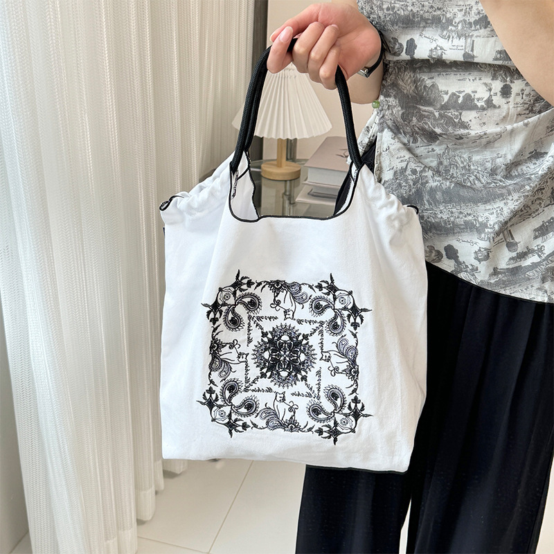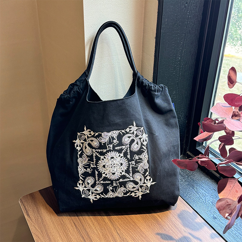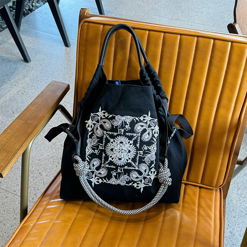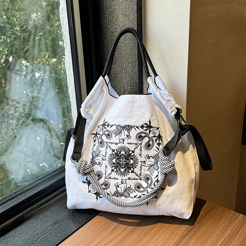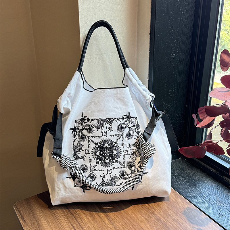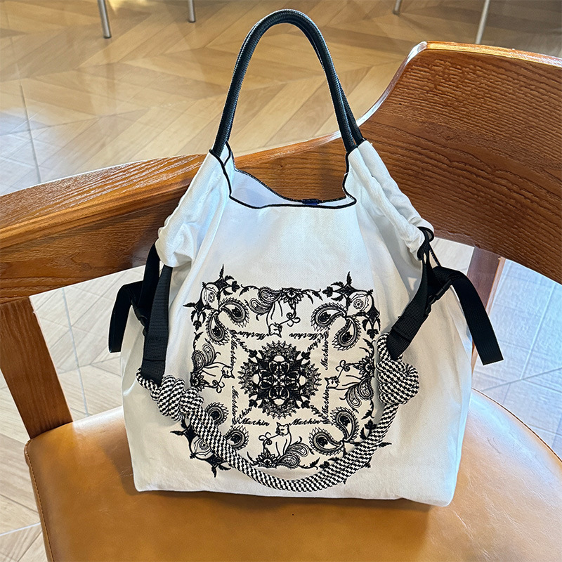 봄 새로운 일본 자수 볼 체인 환경 친화적 인 가방 여성 가방 쇼핑 크로스 바디 가방 어깨 캔버스 가방 토트 백