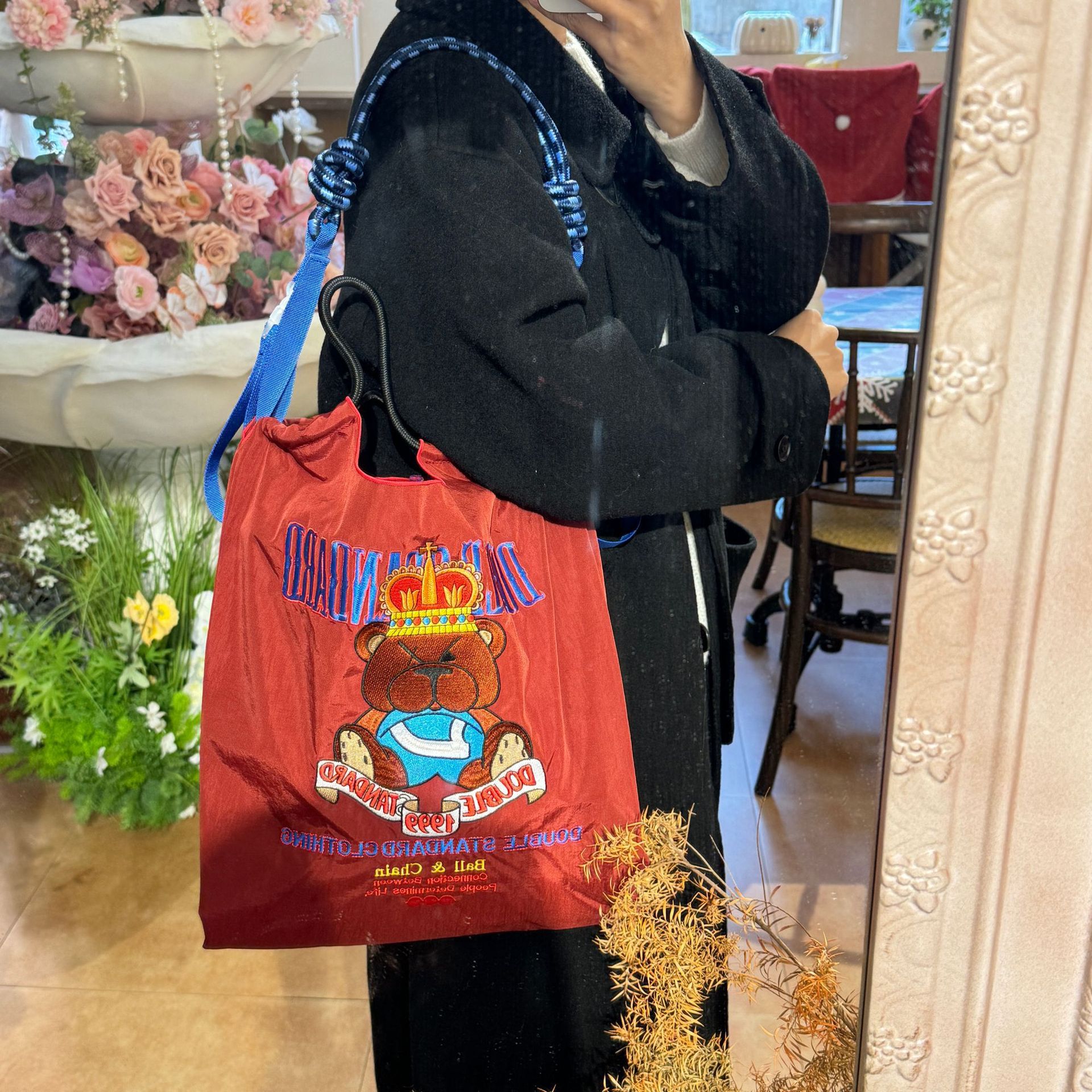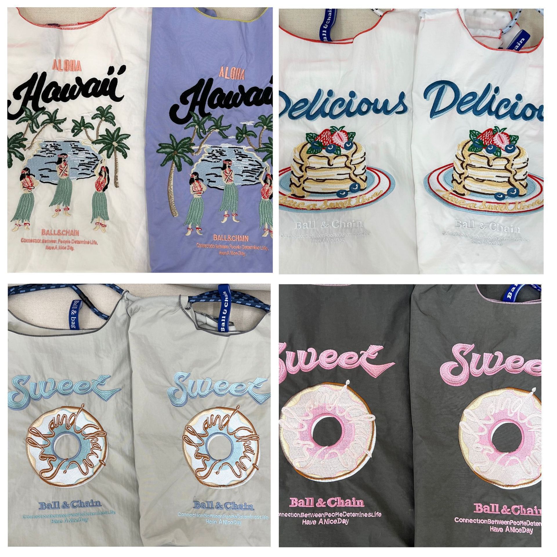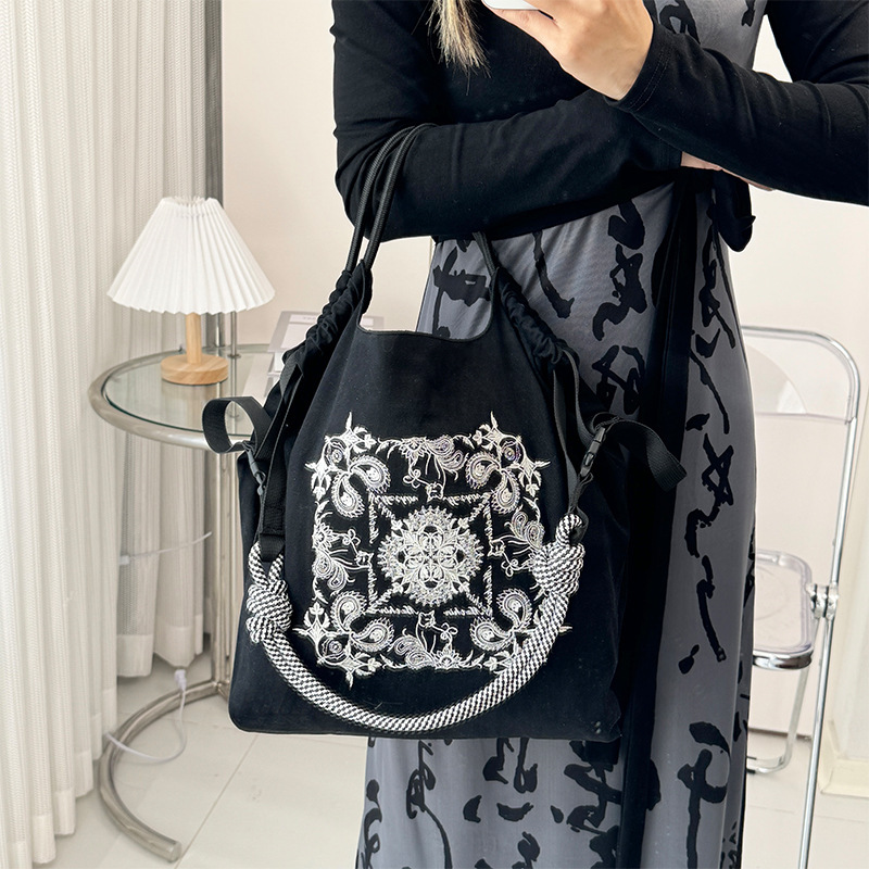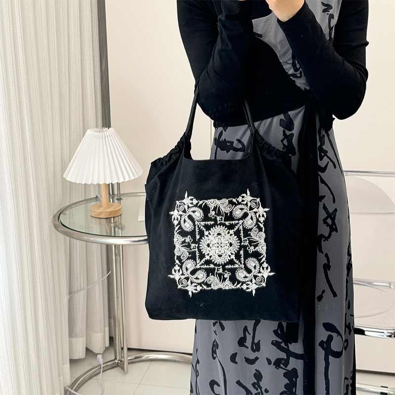 봄 새로운 일본 자수 볼 체인 환경 친화적 인 가방 여성 가방 쇼핑 크로스 바디 가방 어깨 캔버스 가방 토트 백