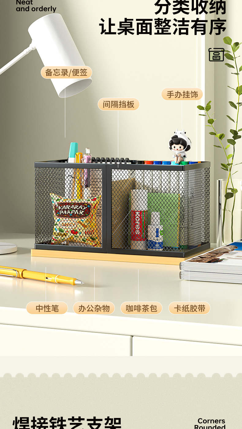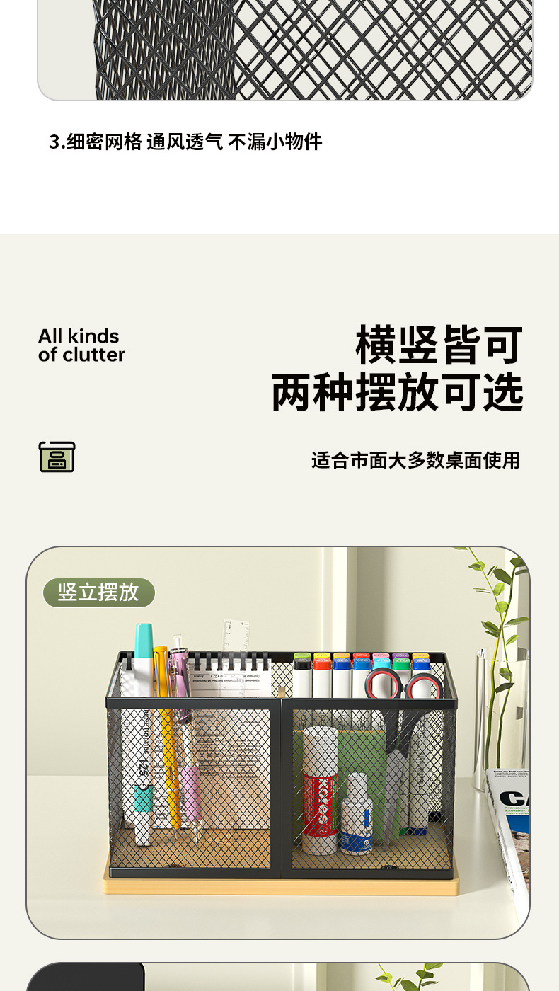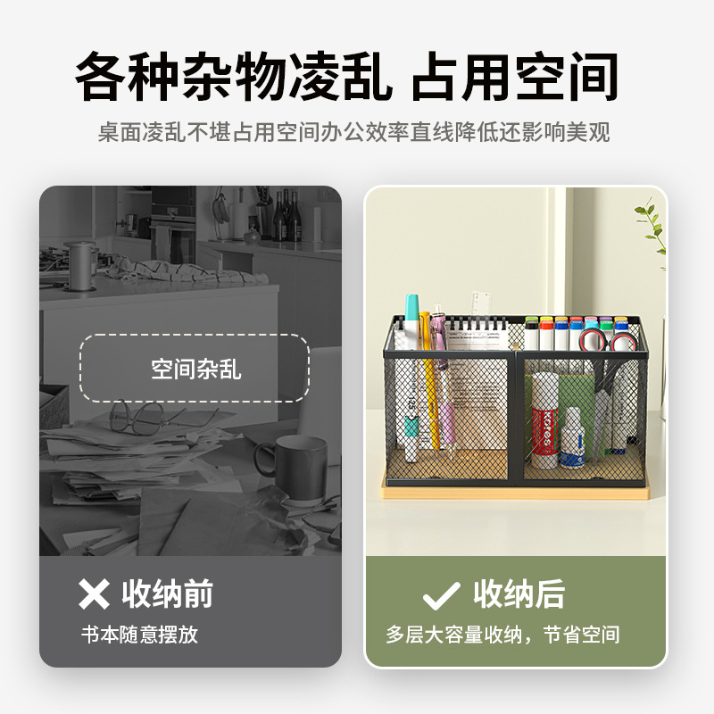 펜 홀더 사무실 데스크탑 철 케이스 간단한 문구 보관 상자 사무용품 펜 홀더 학생 금속 대나무 보드