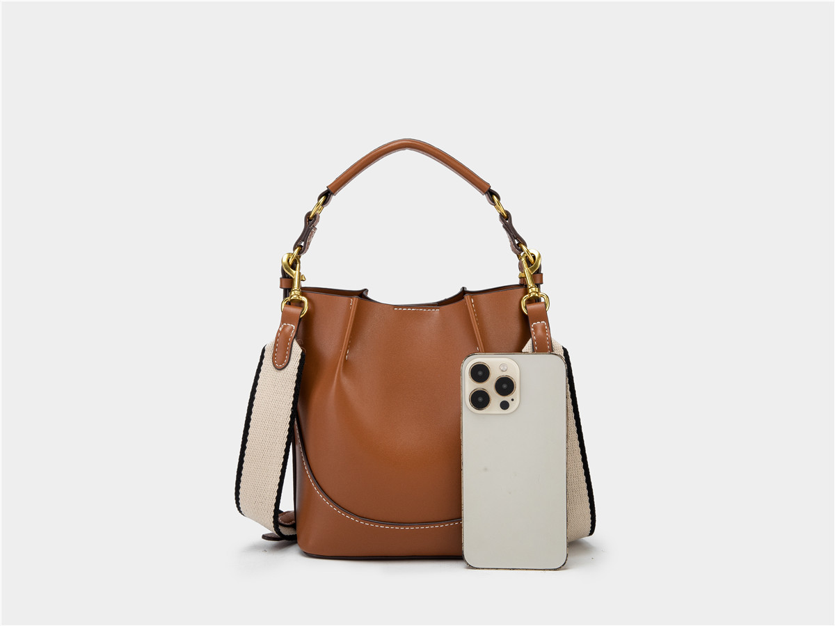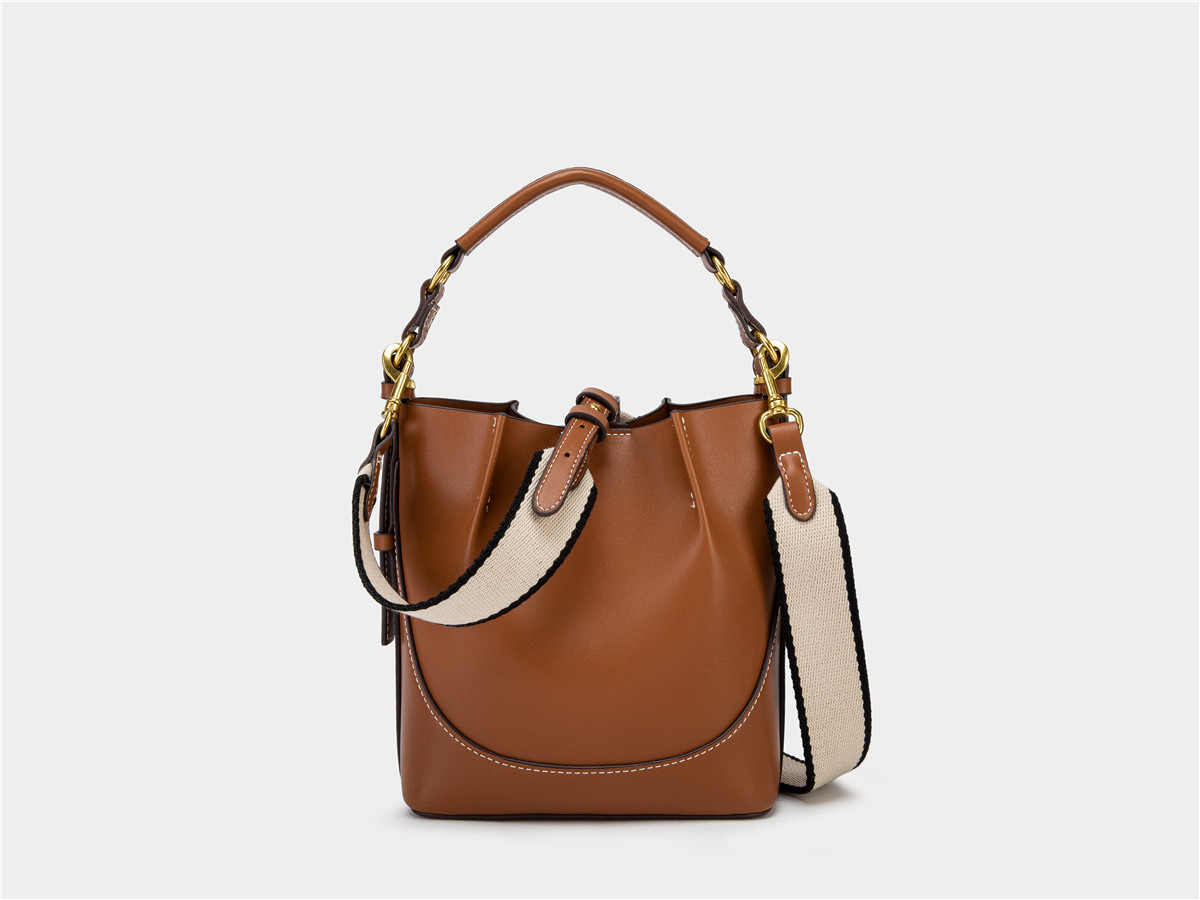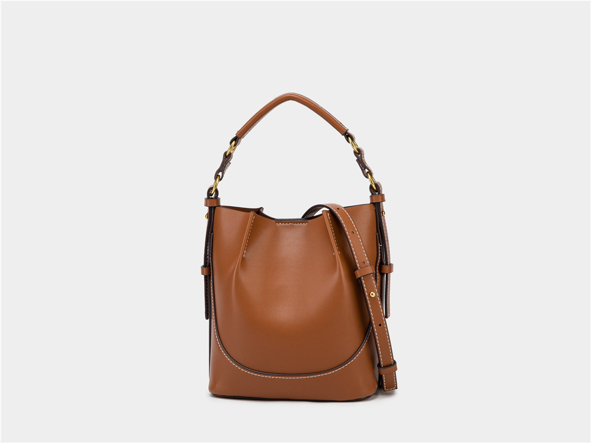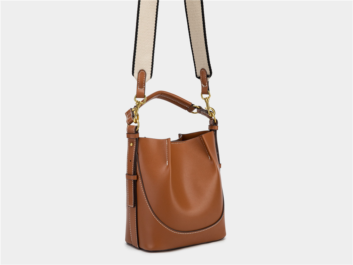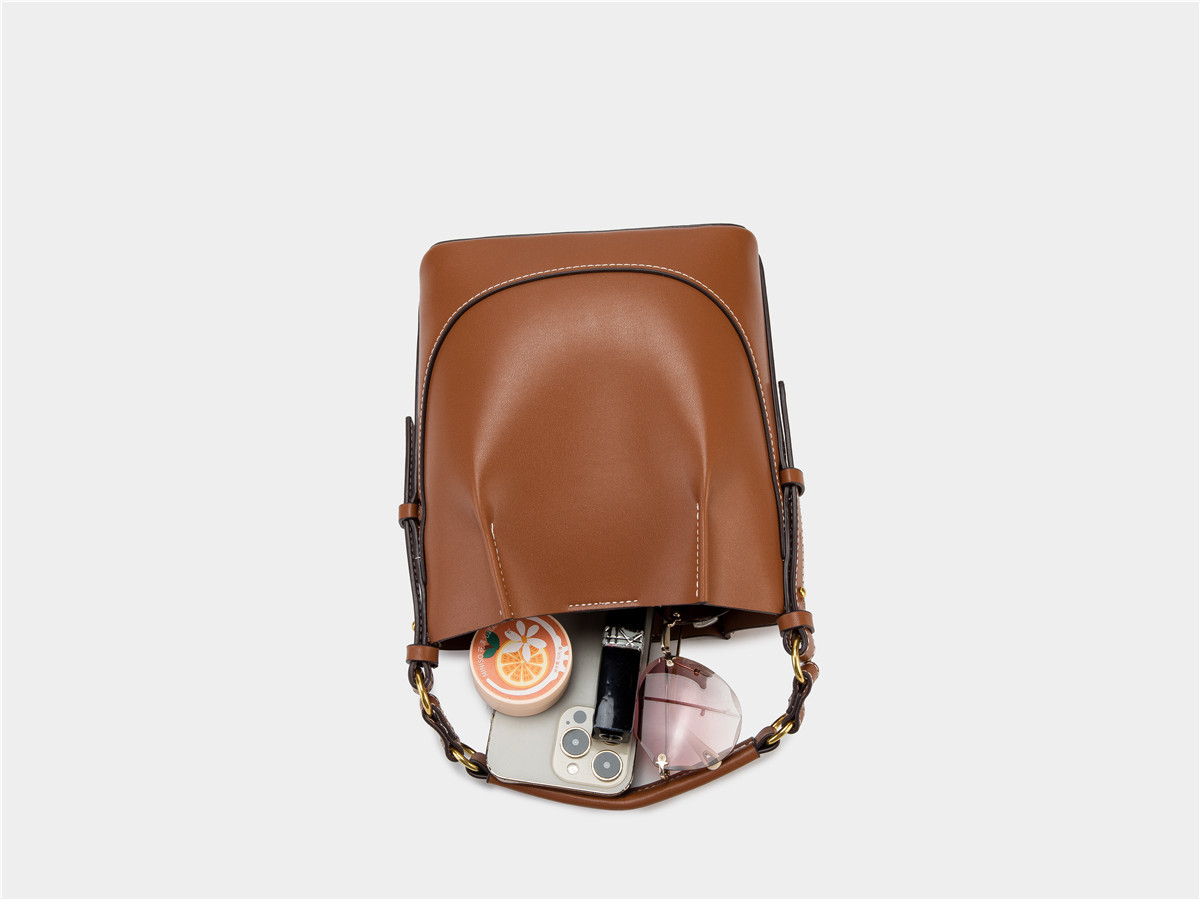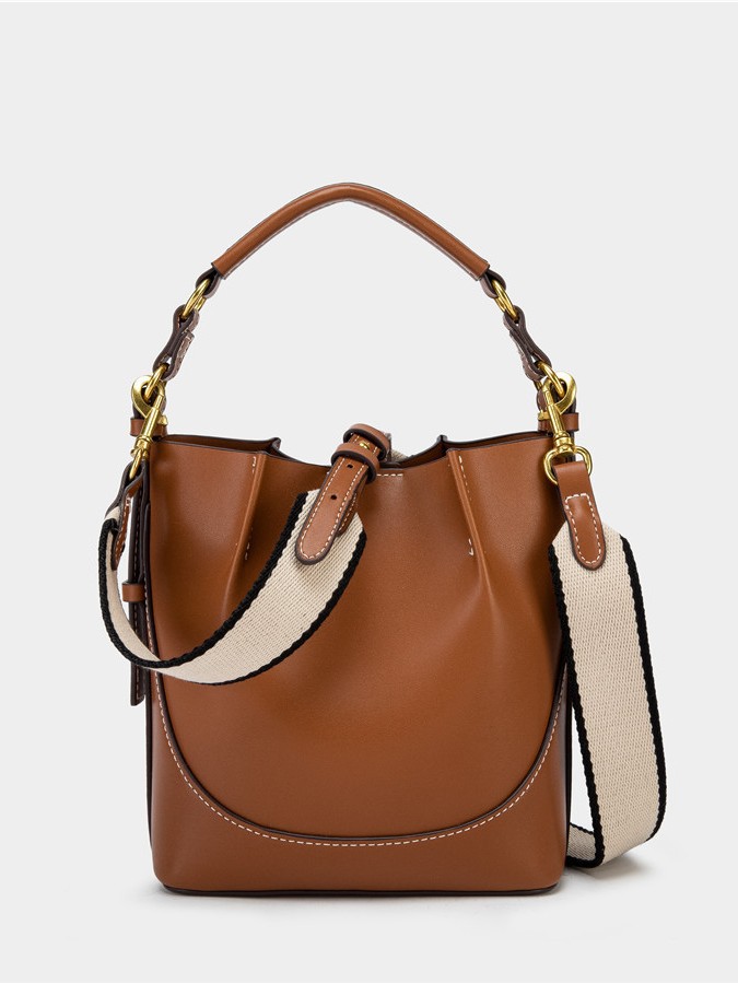 스페인 2025 새로운 여성 가방 다크 브라운 주름 된 거들 올 매치 휴대용 버킷 백 와이드 어깨 스트랩 크로스 바디 백