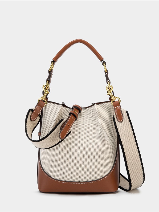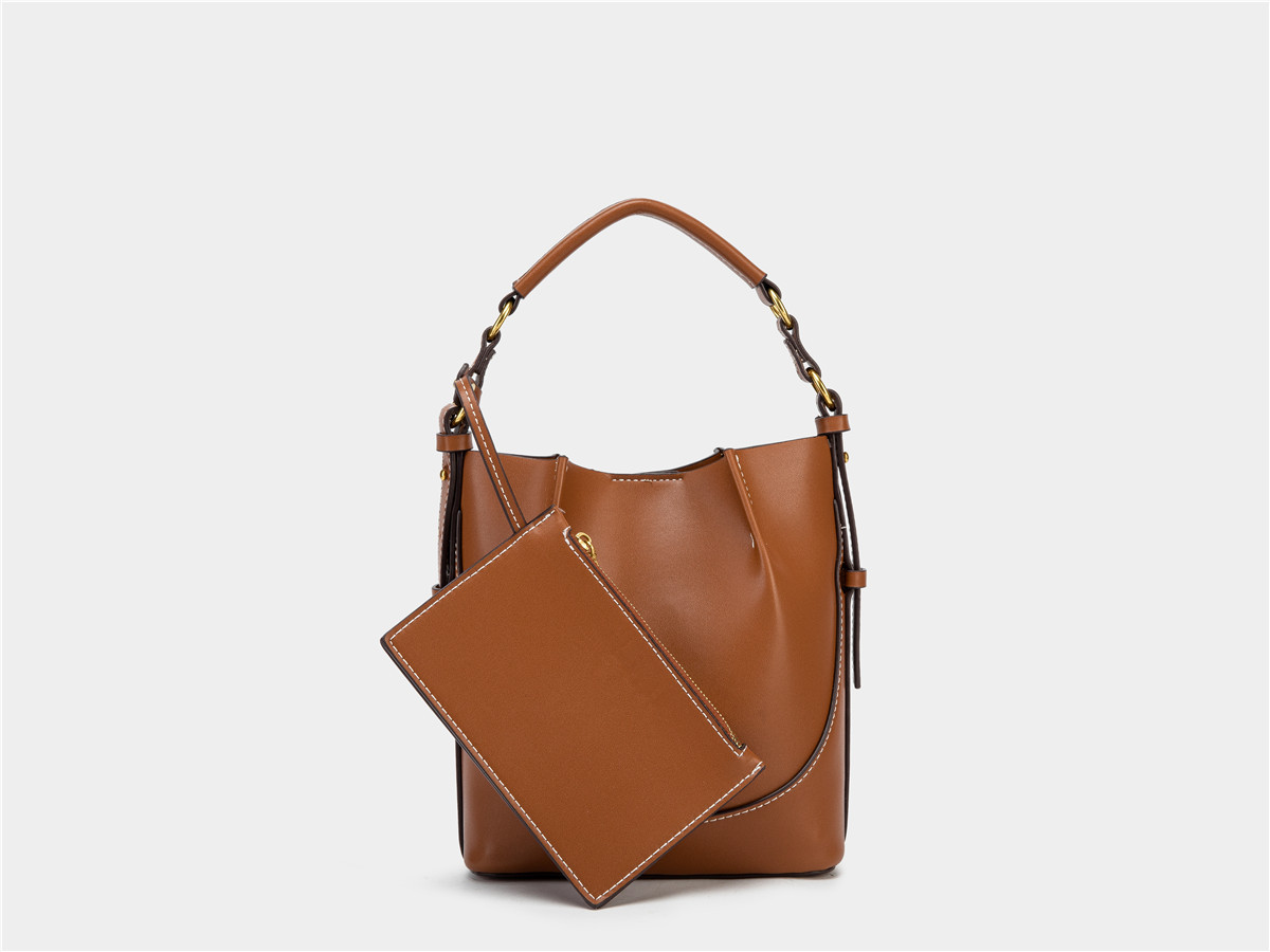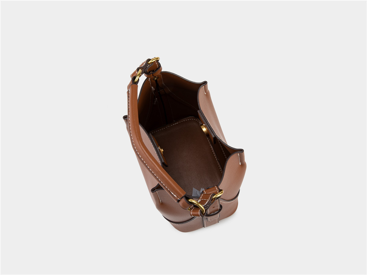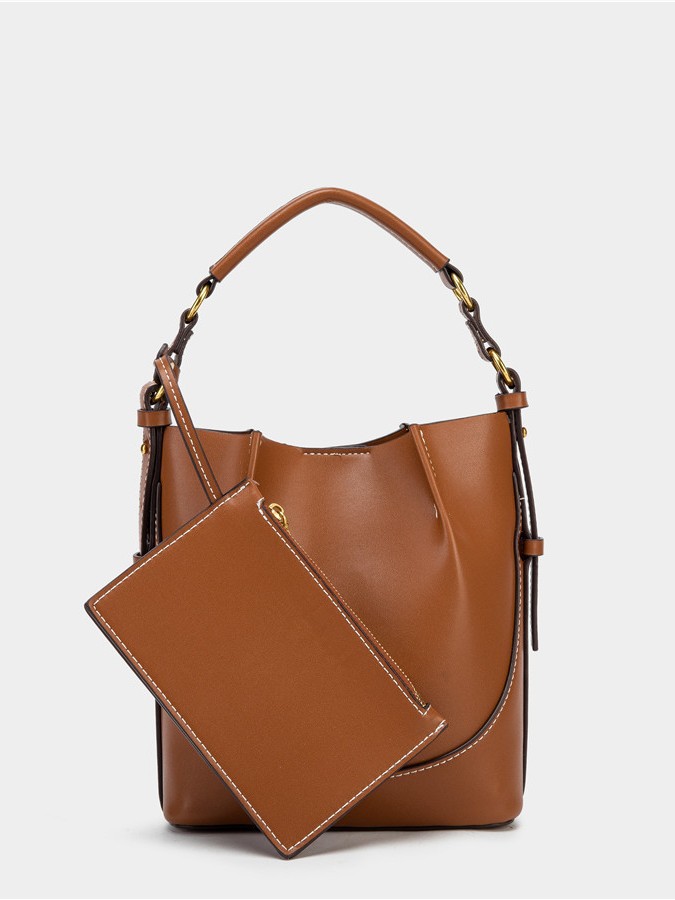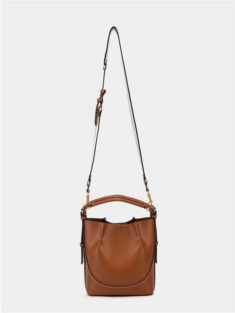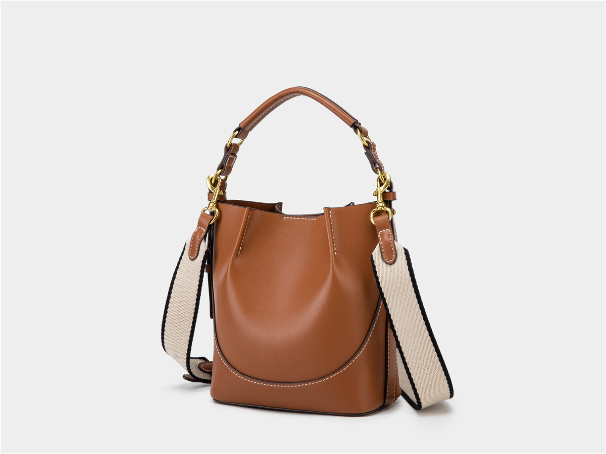 스페인 2025 새로운 여성 가방 다크 브라운 주름 된 거들 올 매치 휴대용 버킷 백 와이드 어깨 스트랩 크로스 바디 백