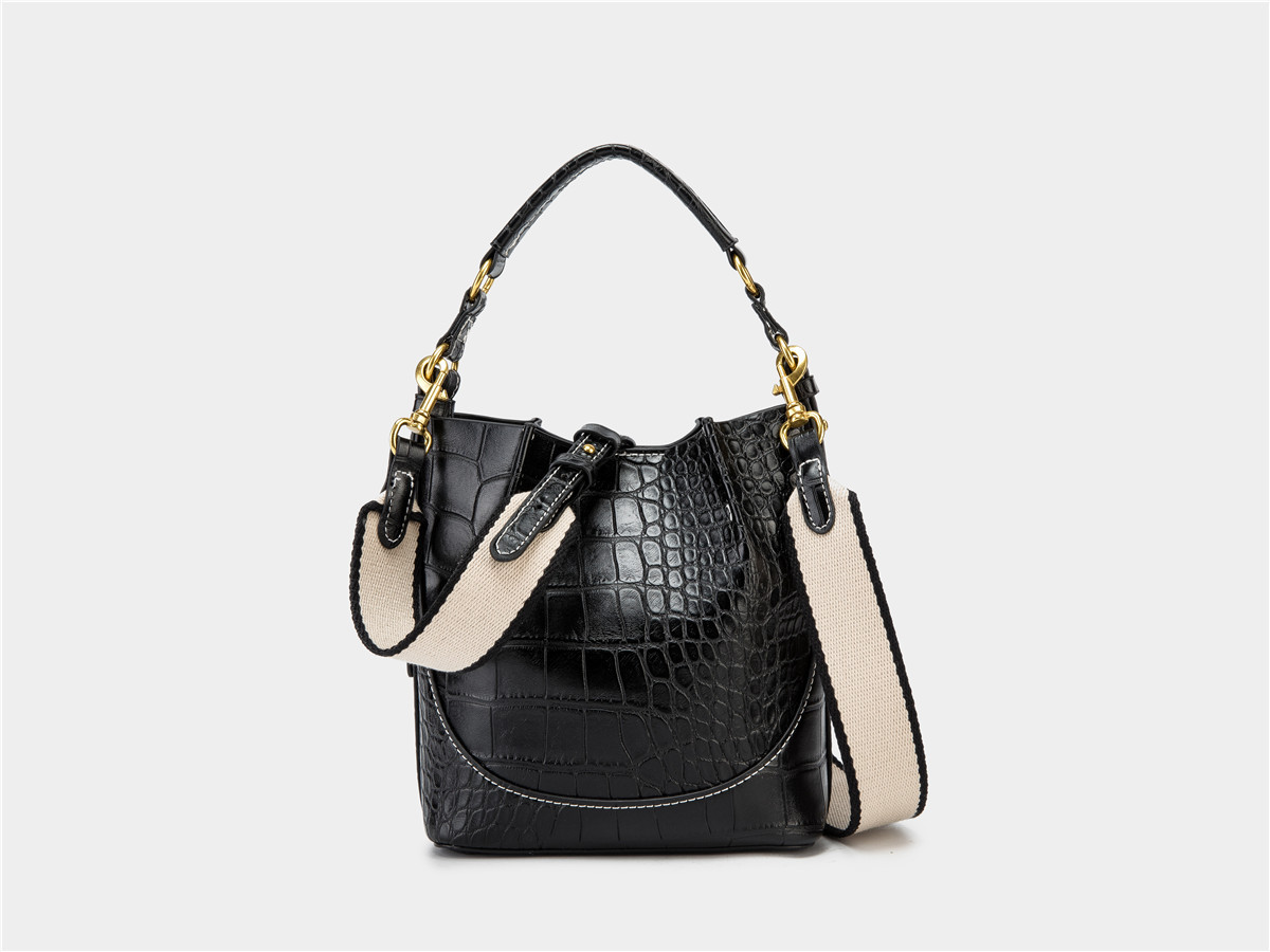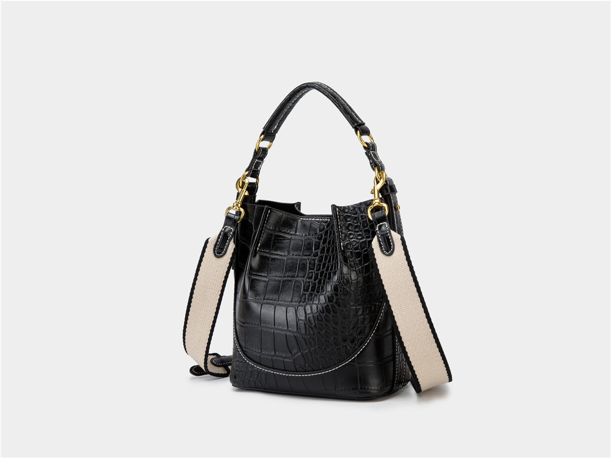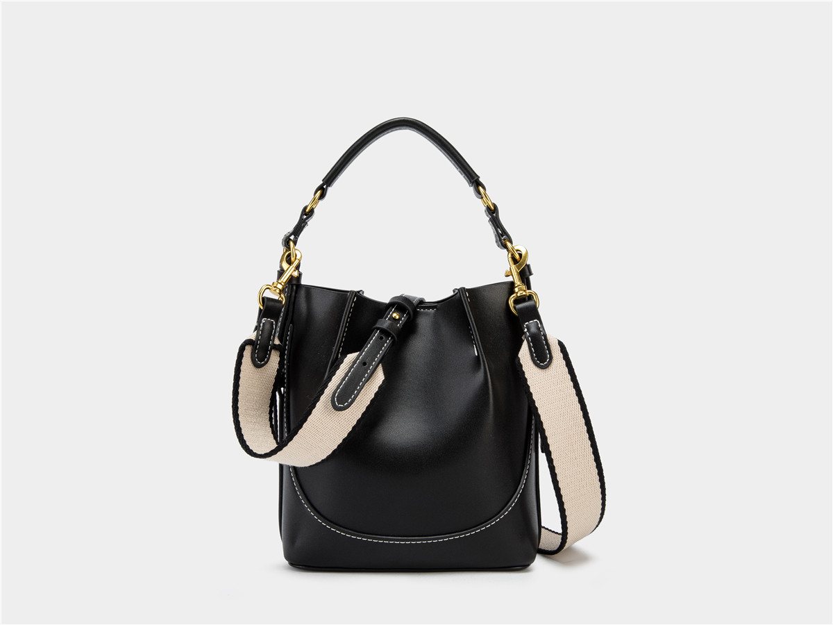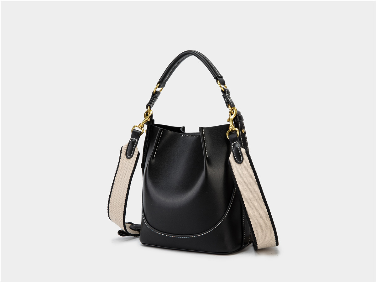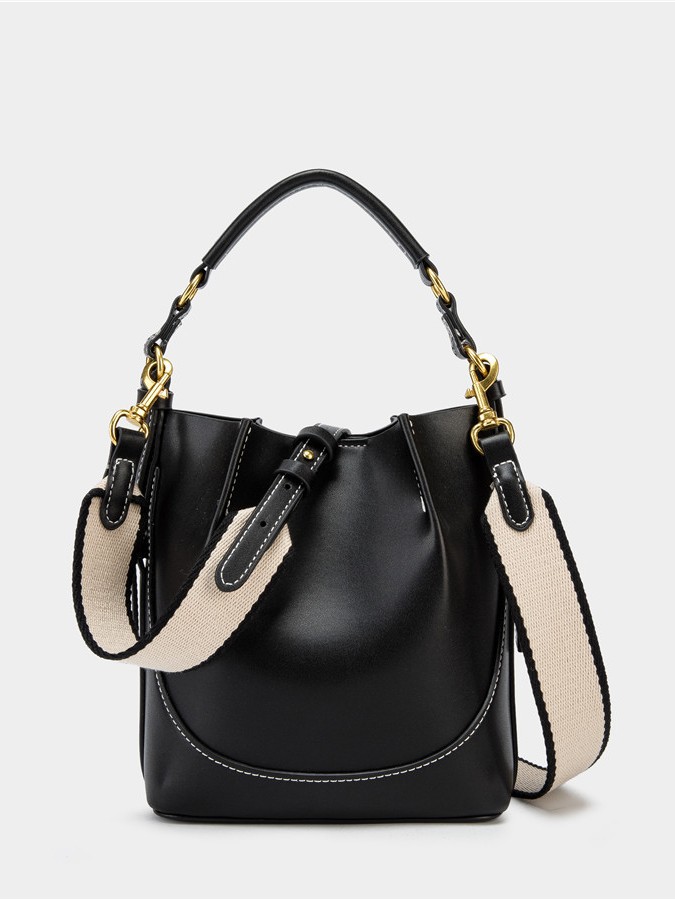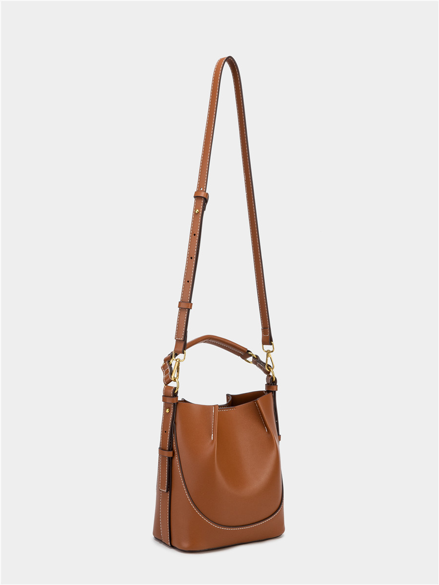 스페인 2025 새로운 여성 가방 다크 브라운 주름 된 거들 올 매치 휴대용 버킷 백 와이드 어깨 스트랩 크로스 바디 백
