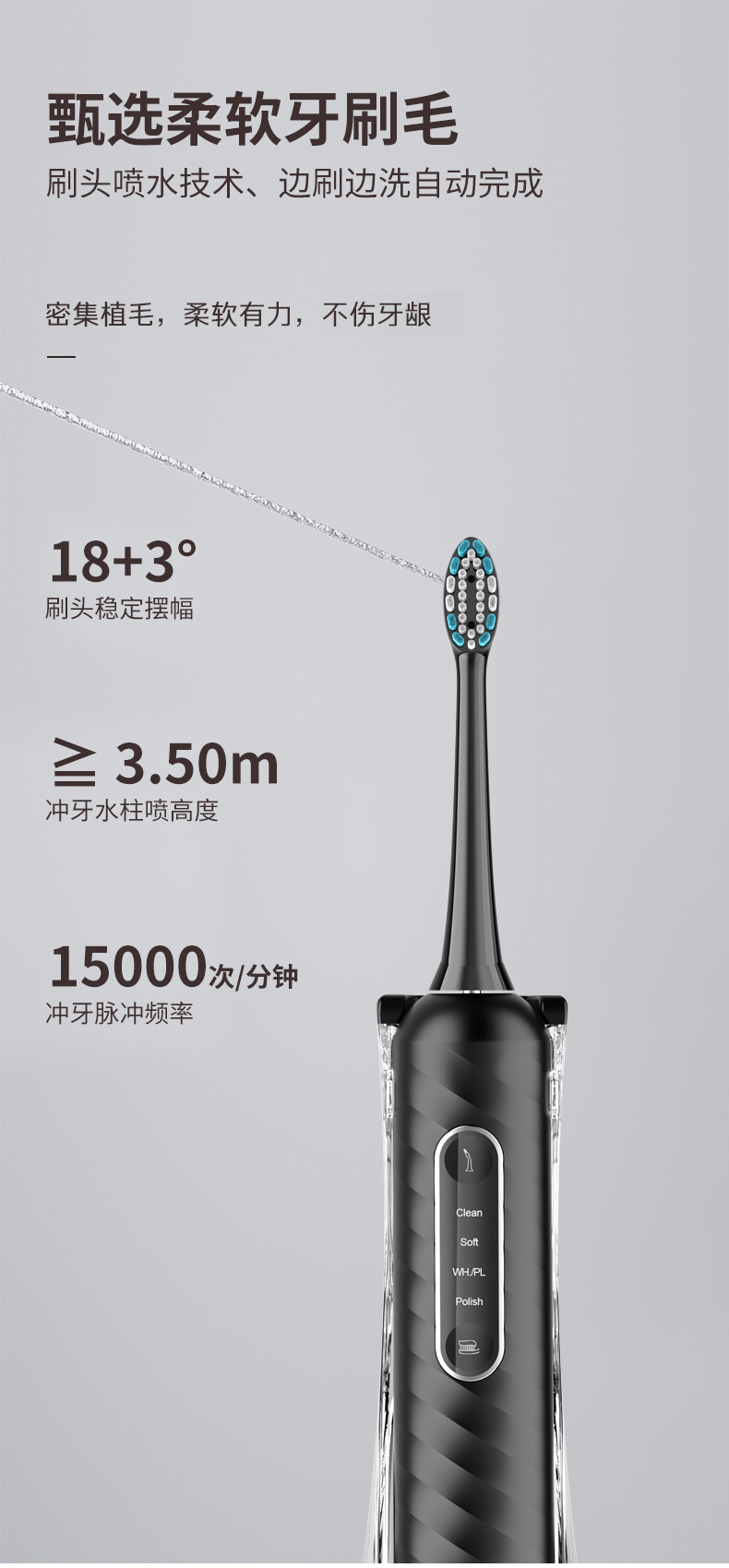 다기능 치아 린서, 2-in-1 충전식 칫솔, 가정용 스마트 자기 부상 부드러운 강모 전동 칫솔