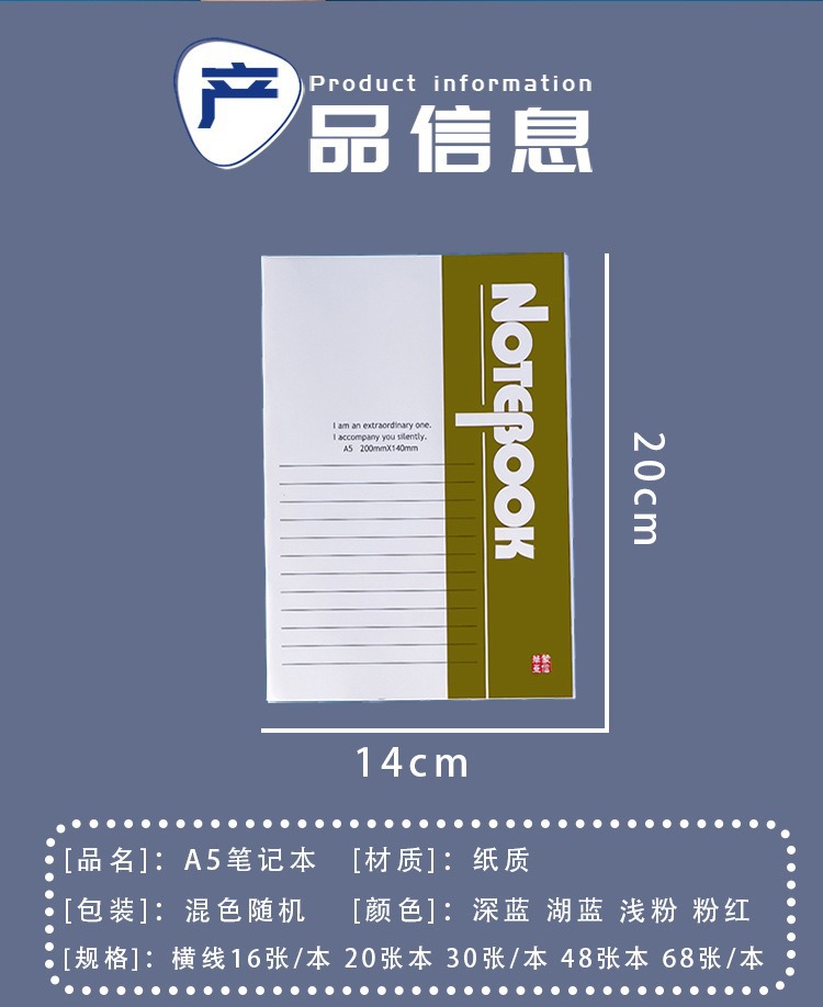 간단한 A5 가로 노트 학생 학습 메모장 편지지 선물 두꺼운 32k 부드러운 표면 복사 일기