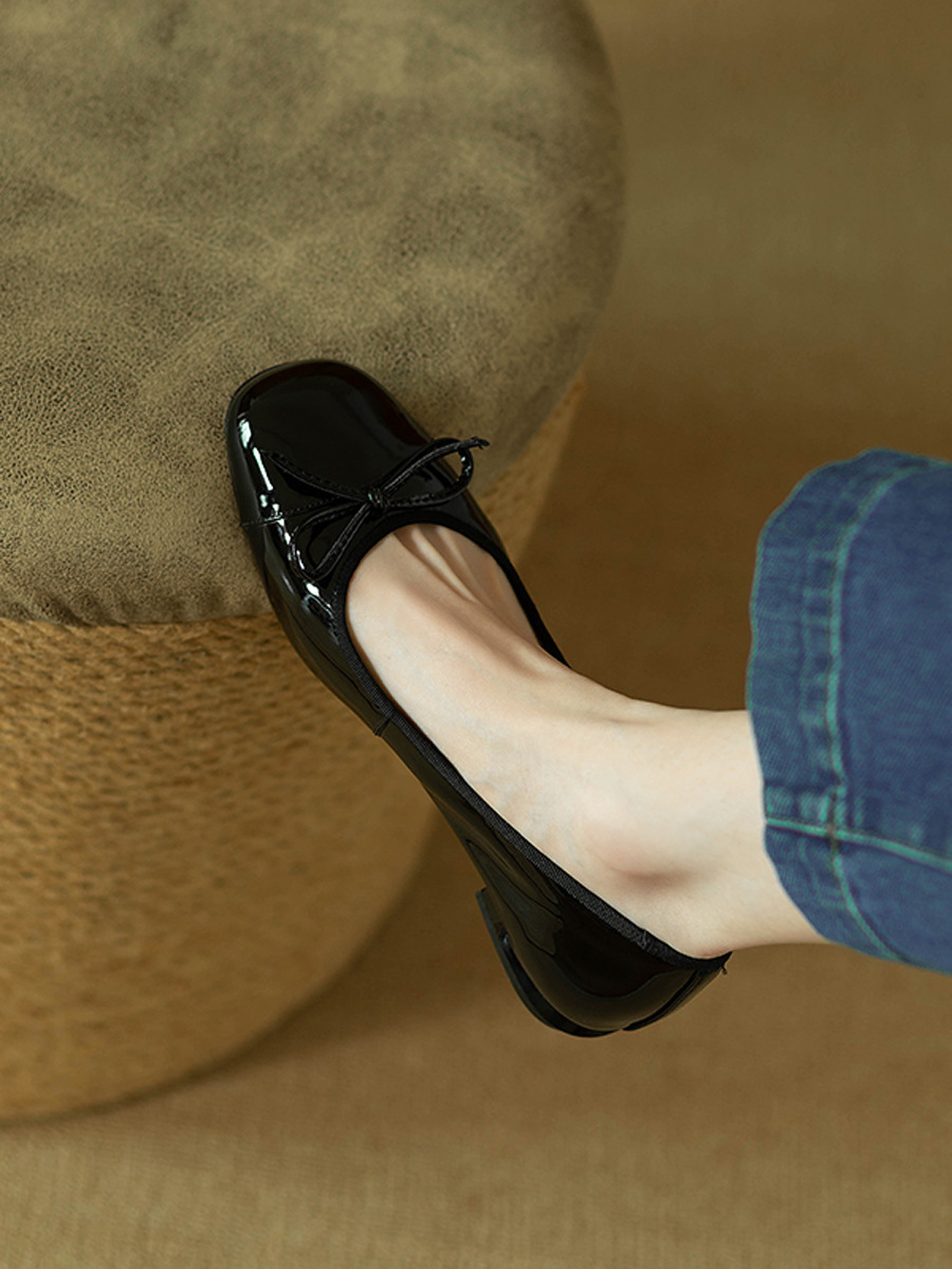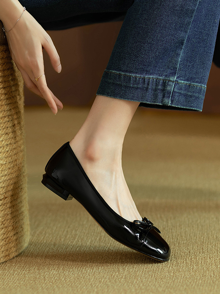 빈티지 활 광장 발가락 낮은 입 평면 낮은 발 뒤꿈치 신발 여성의 2025 년 봄과 가을 특허 가죽 여성 신발 웨딩 슈즈