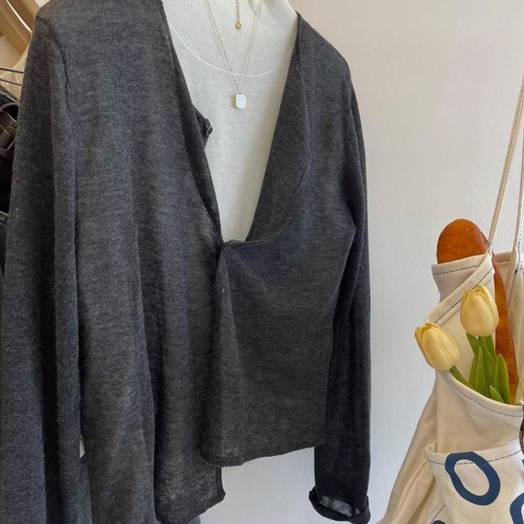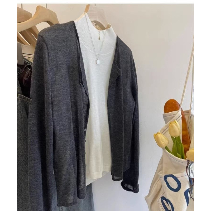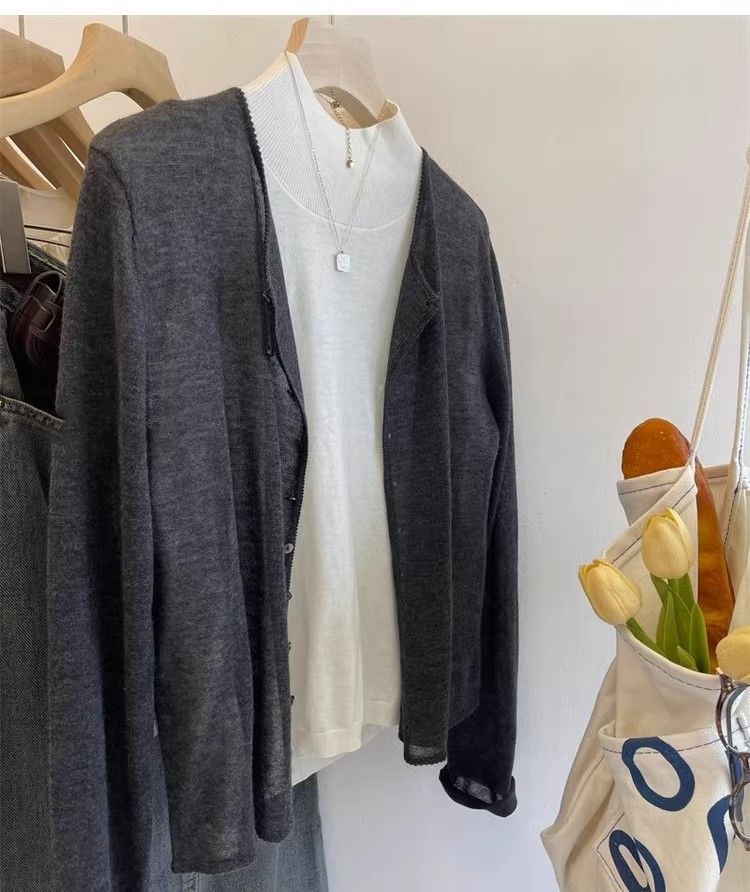여성 봄 여름 게으른 스타일 긴팔 자외선 차단 셔츠 재킷과 매치한 한국 시크 오트밀 컬러의 얇은 가디건