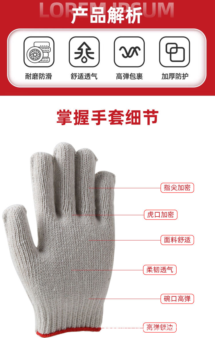 공장 도매 면사 작업용 장갑, 두꺼운 내마모성 내구성 건설 현장 운반용 장갑, 안전 보호 장갑