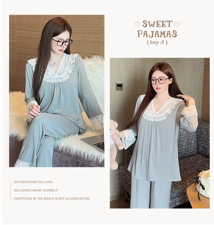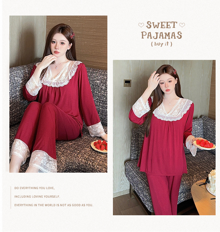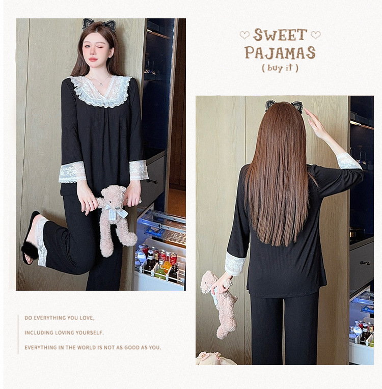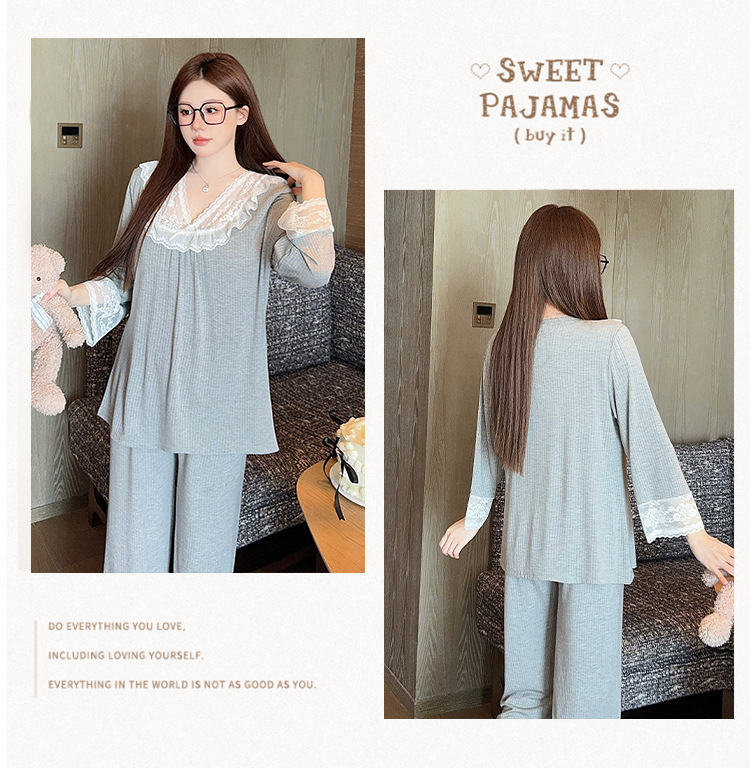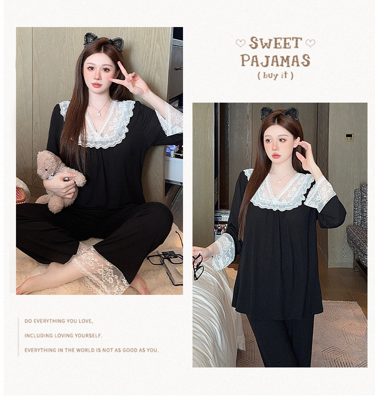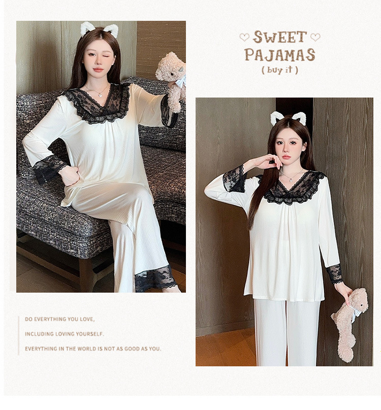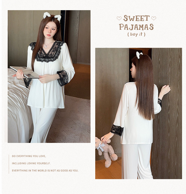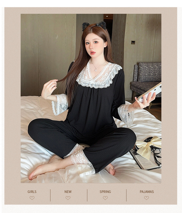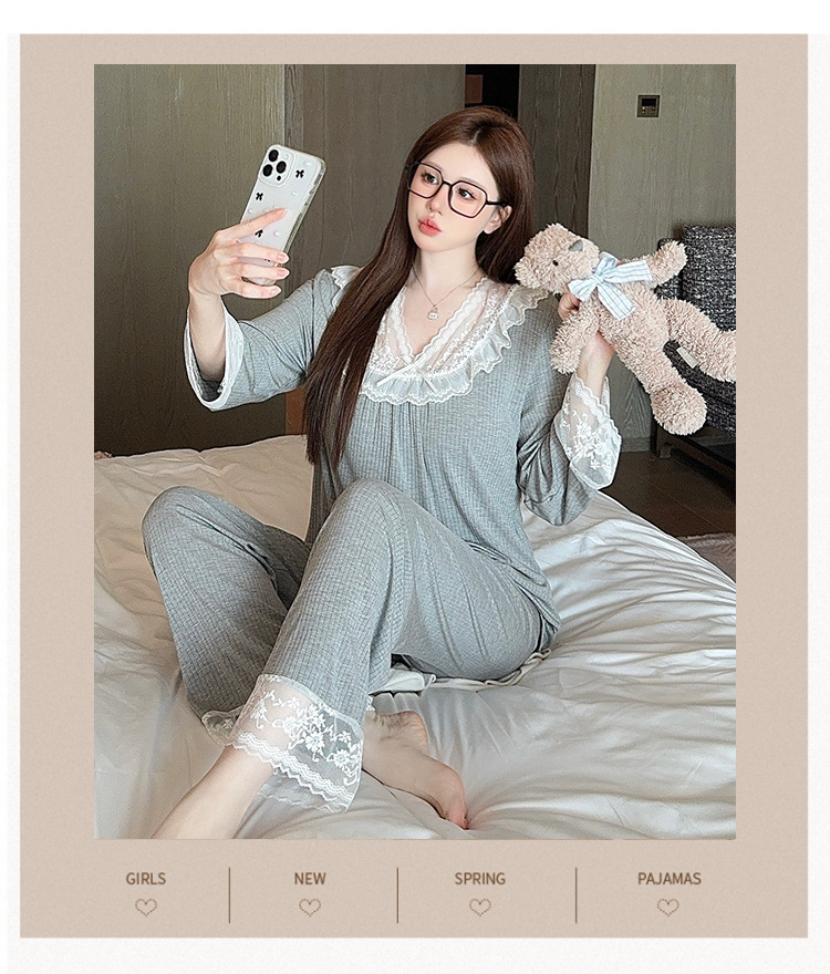 여성용 모달 패딩 잠옷 봄 가을 라운드넥 7부 소매 긴바지 2025 신상 홈웨어 라운드넥 세트