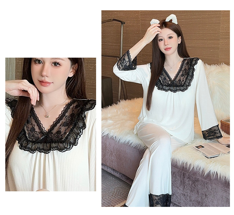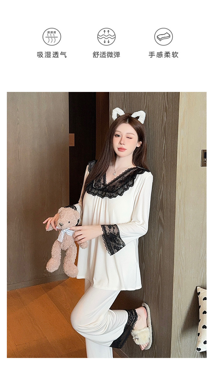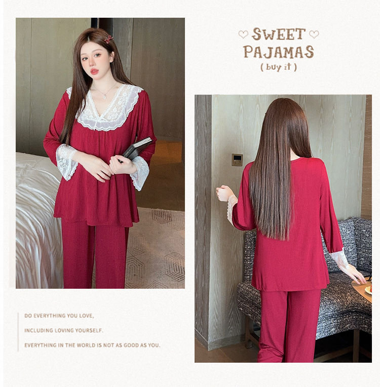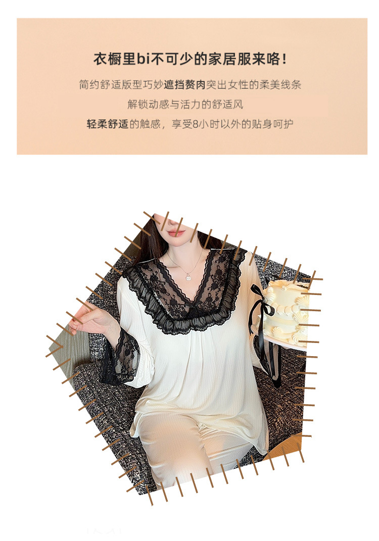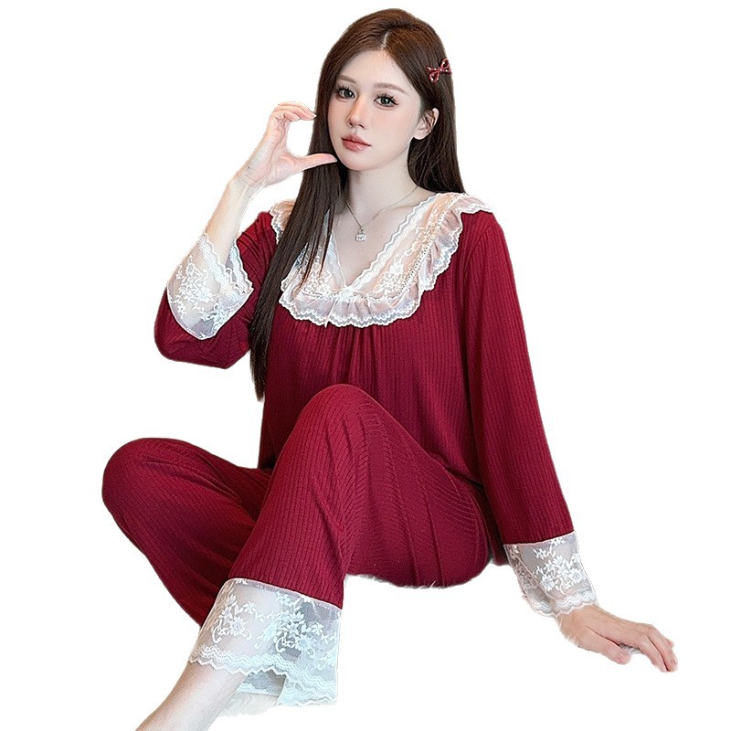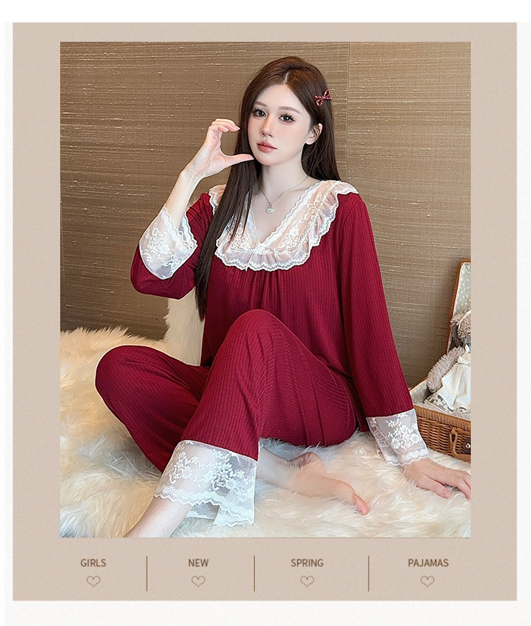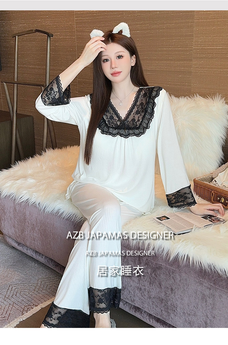 여성용 모달 패딩 잠옷 봄 가을 라운드넥 7부 소매 긴바지 2025 신상 홈웨어 라운드넥 세트