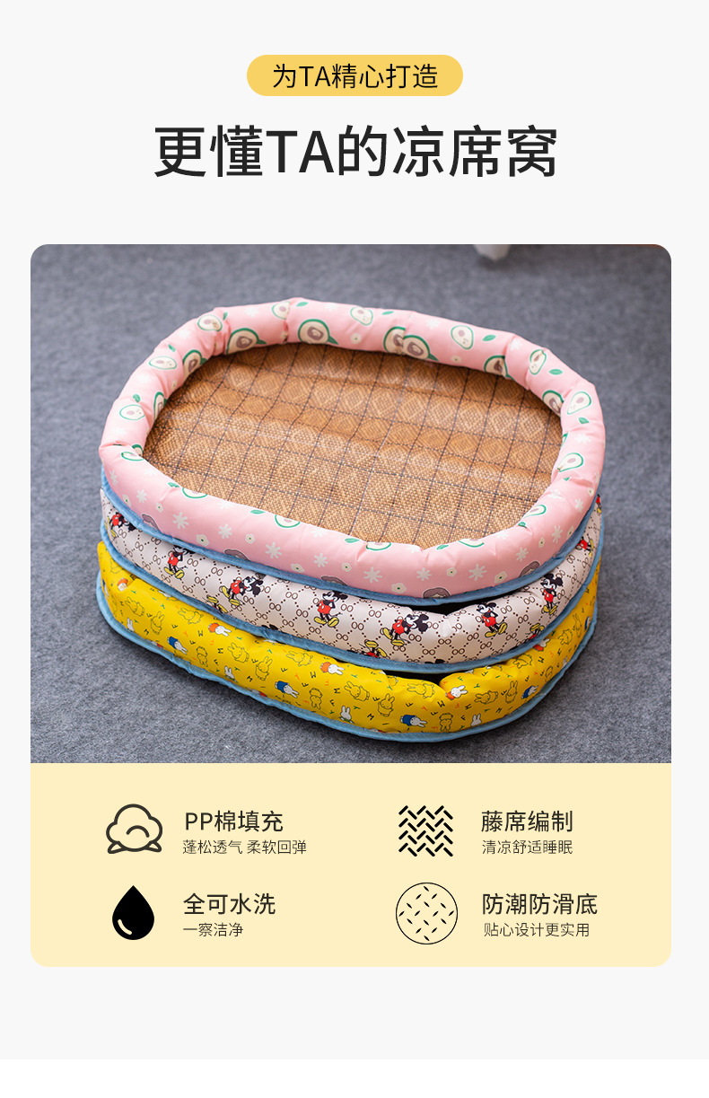 애완동물 냉방매트, 여름용 등나무 매트, 린넨 대형 애완동물 침대, 실내 사계절 고양이 침대, 강아지 침대, 도매 고양이 침대