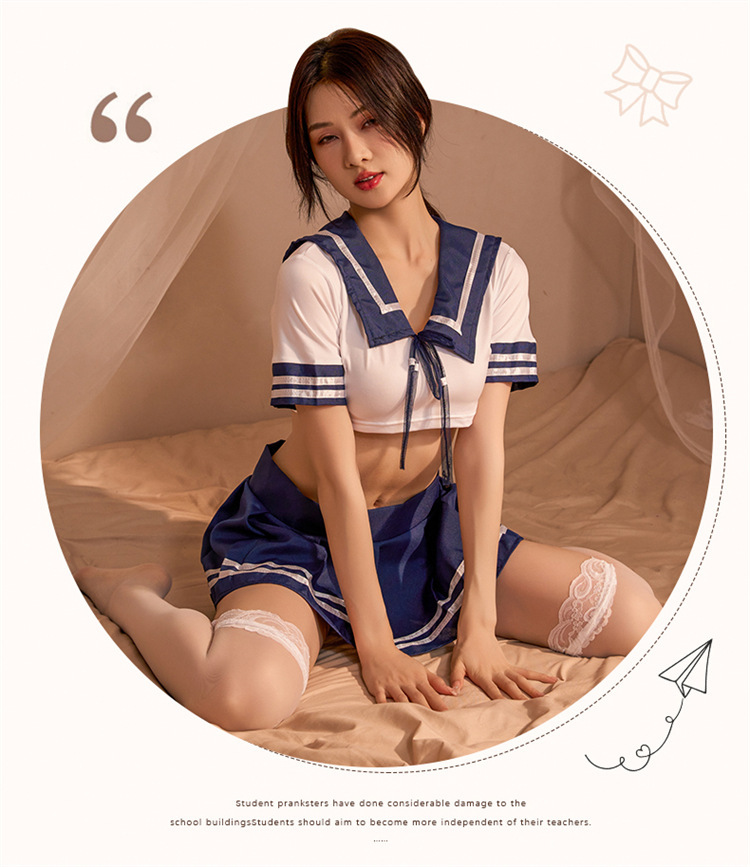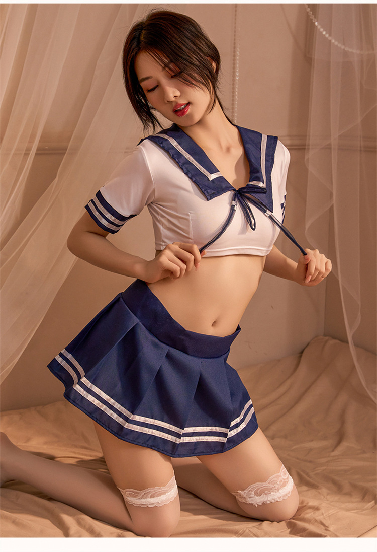 침대 유니폼 유혹 섹시한 미니 스커트 선원 jk 학생복 속옷 세트 뜨겁고 유혹적