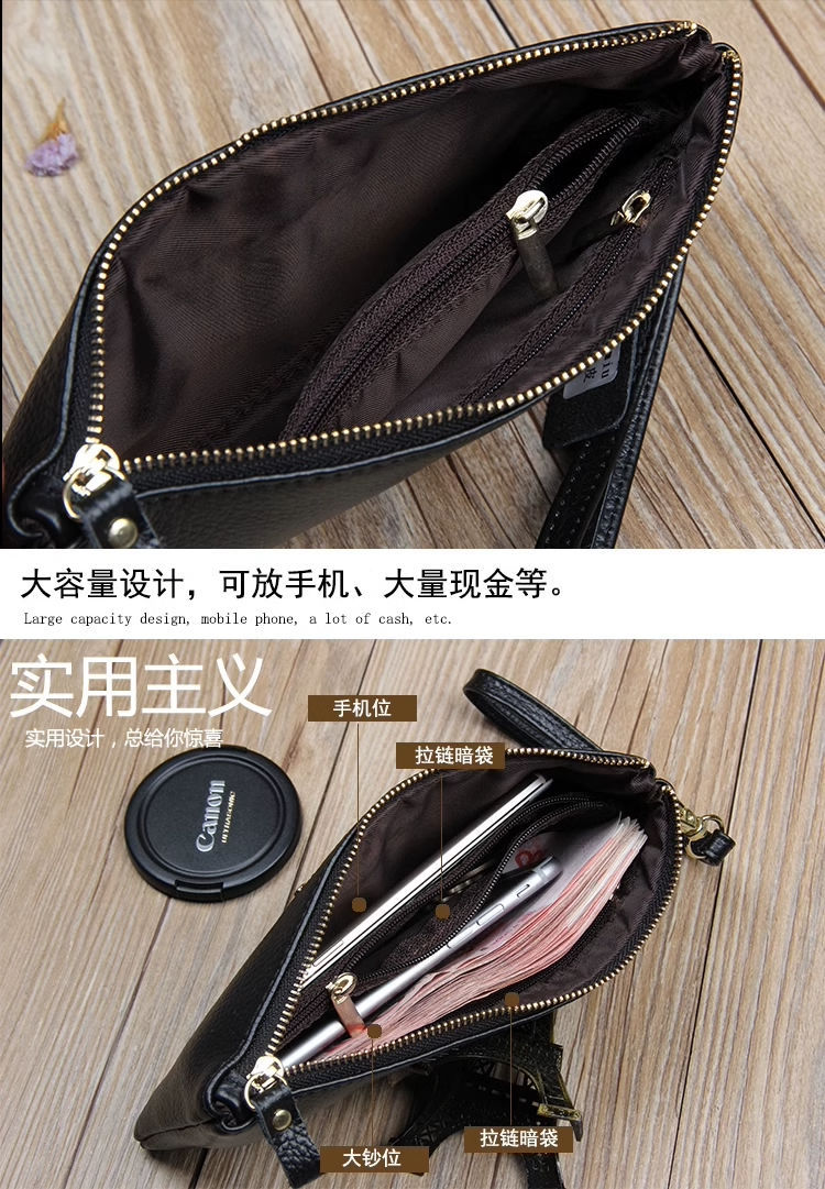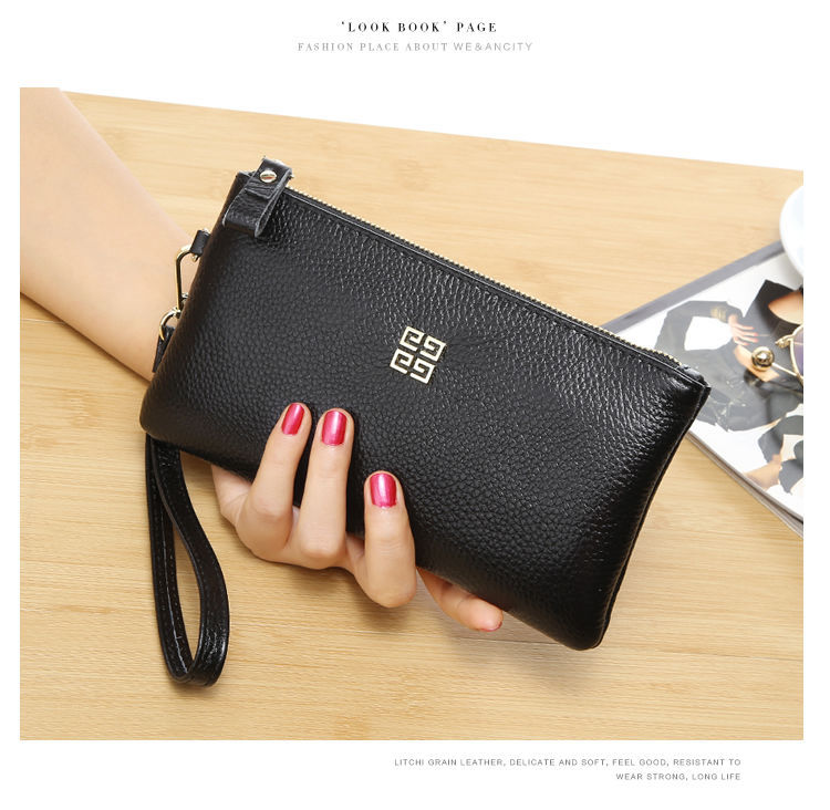 클러치 백 여성용 가방 2024 새로운 동전 지갑 긴 패션 기질 부드러운 가죽 정품 가죽 작은 핸드백 유행
