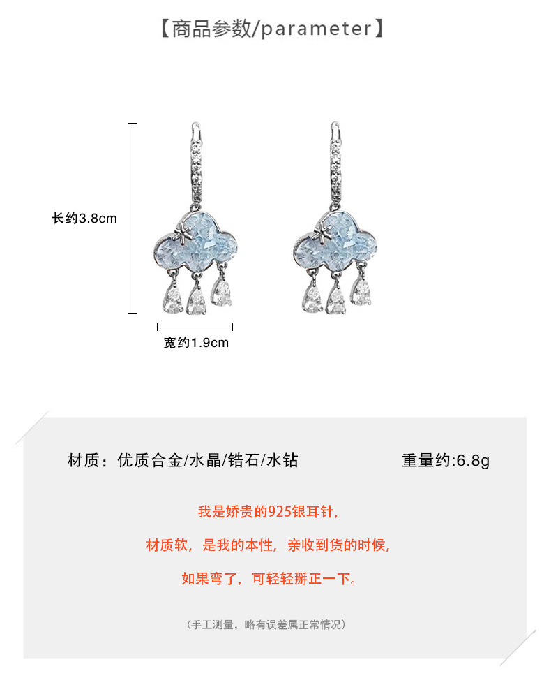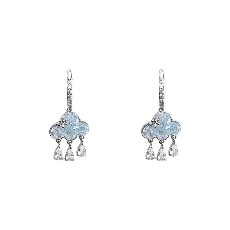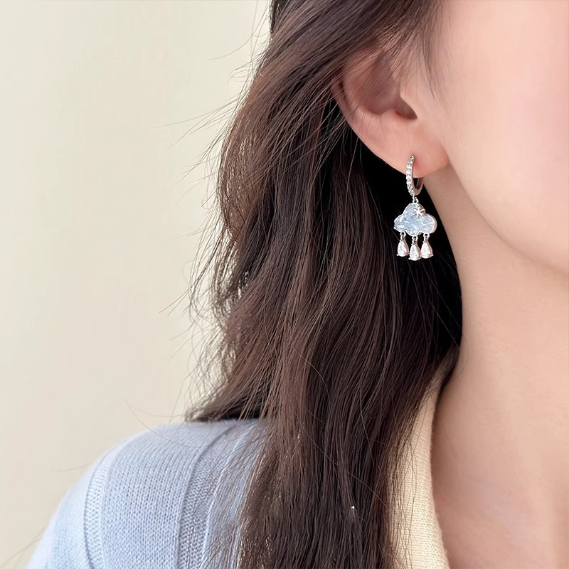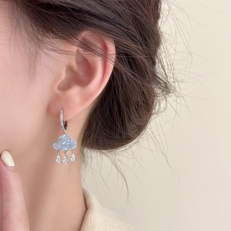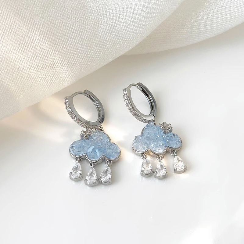블루 클라우드 라인스톤 귀걸이 - 메인 사진 스타일