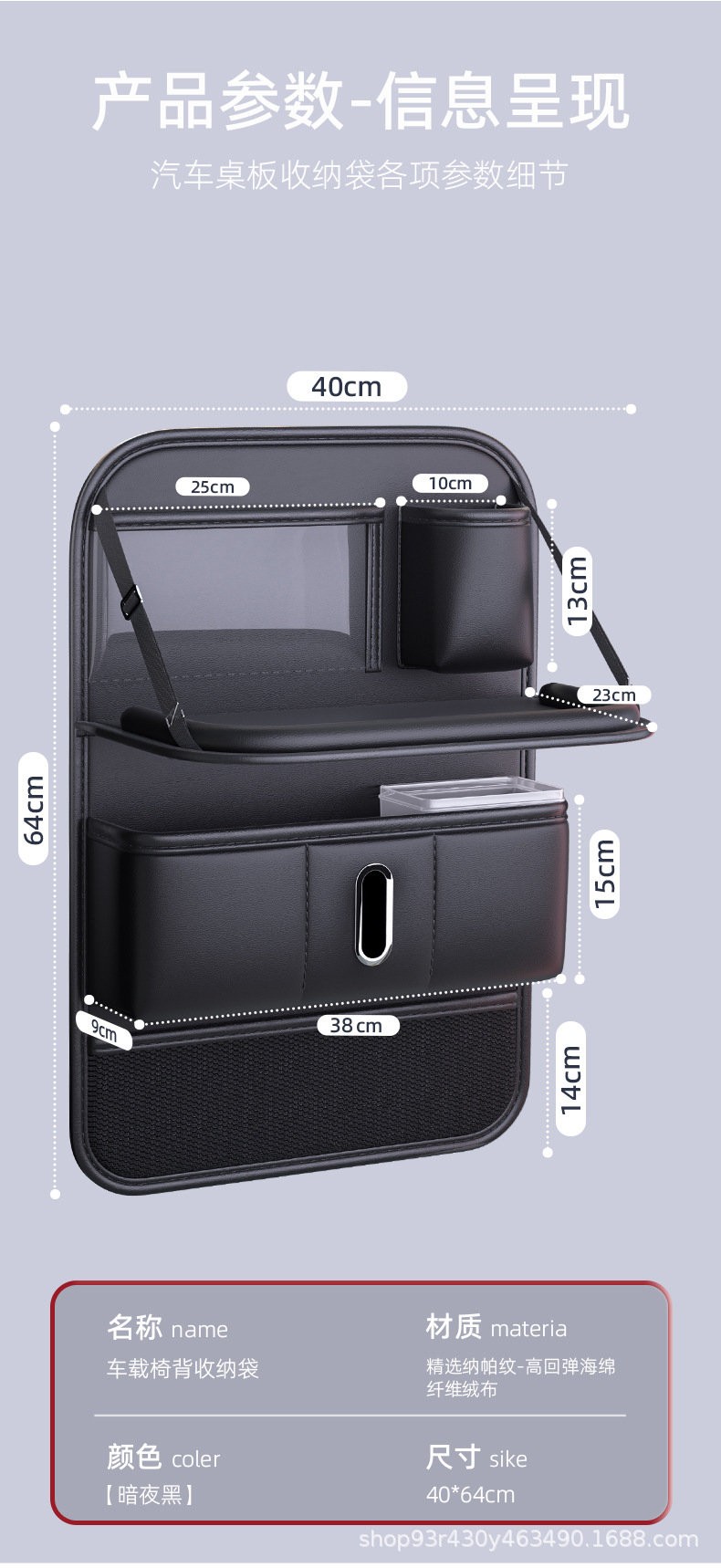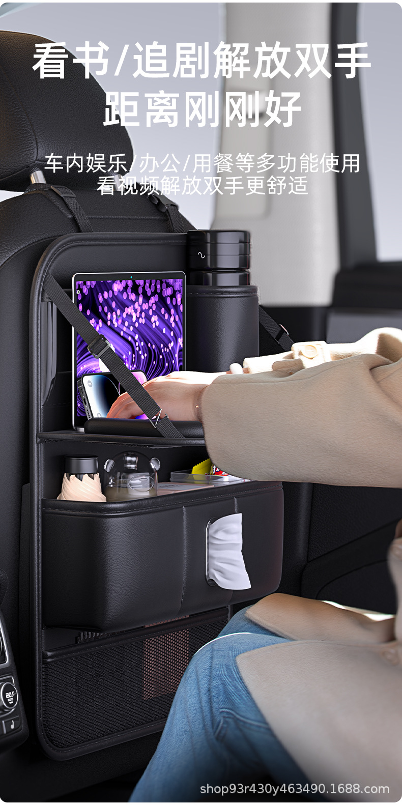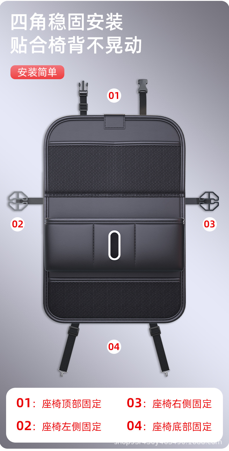 카시트 등받이 수납가방, 차량 뒷좌석 쓰레기통, 소형 테이블 수납선반, 걸이가방 용품