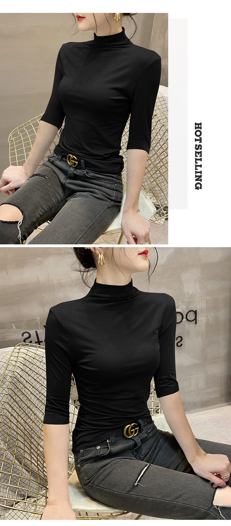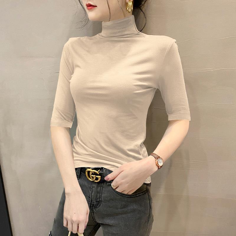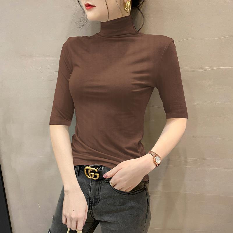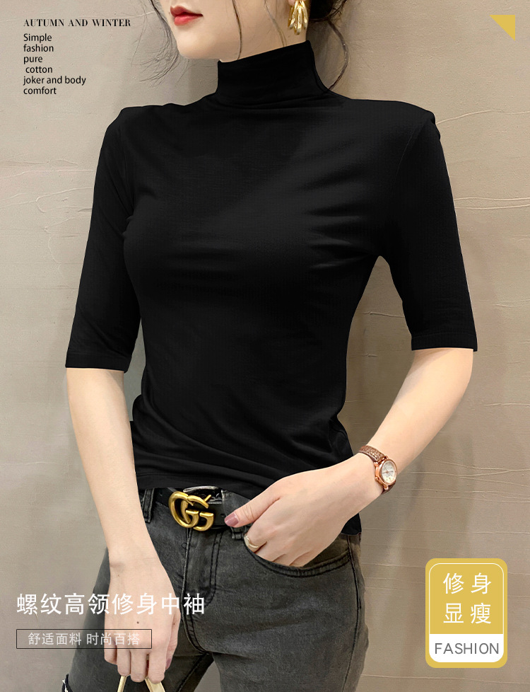 여성용 스레드 터틀넥 셔츠, 2023 봄 신상 슬림핏 미드슬리브 티셔츠, 블랙 스타일 니트 탑