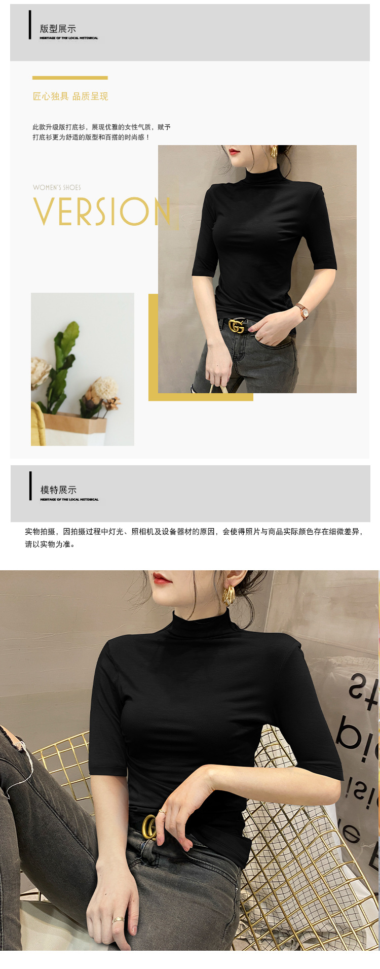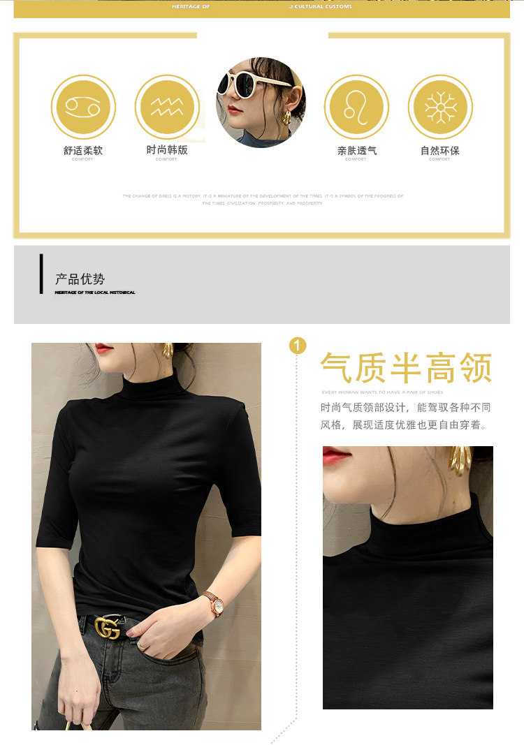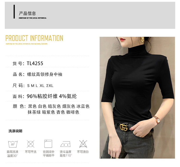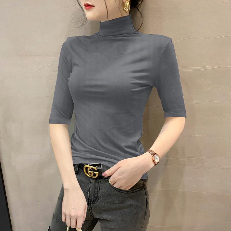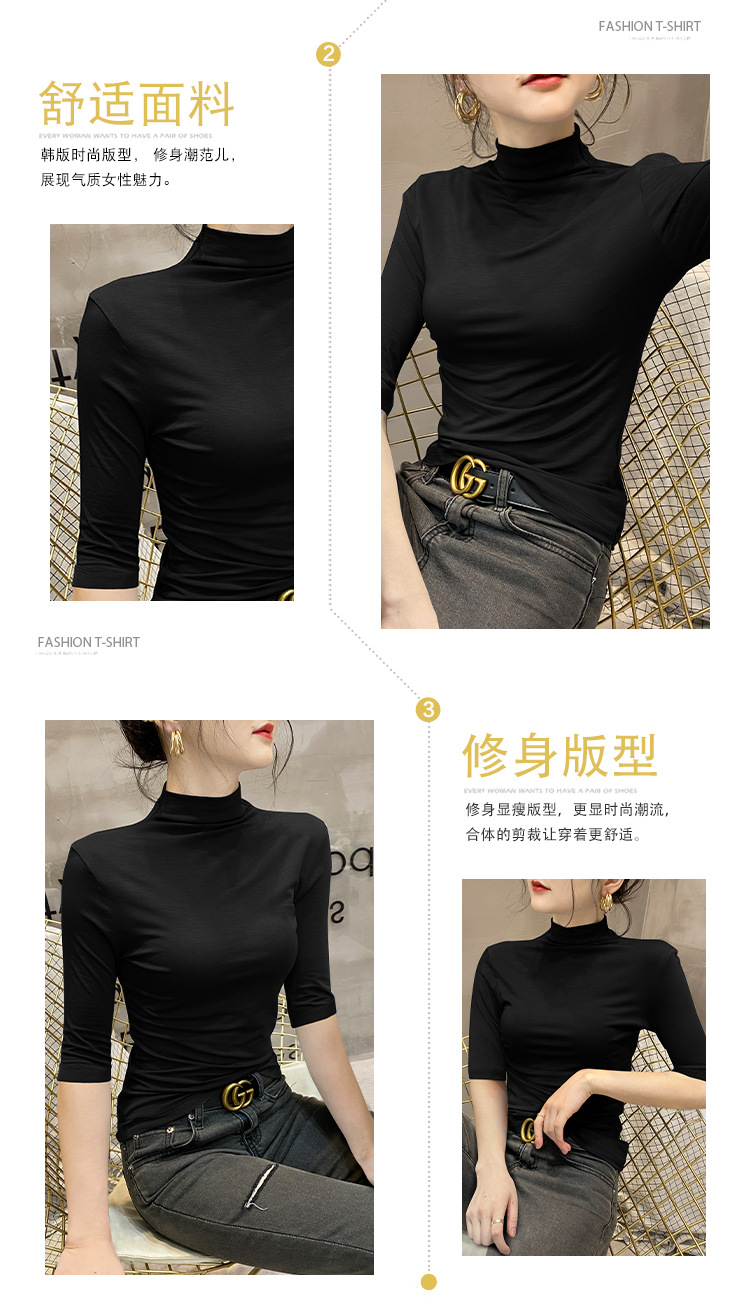 여성용 스레드 터틀넥 셔츠, 2023 봄 신상 슬림핏 미드슬리브 티셔츠, 블랙 스타일 니트 탑