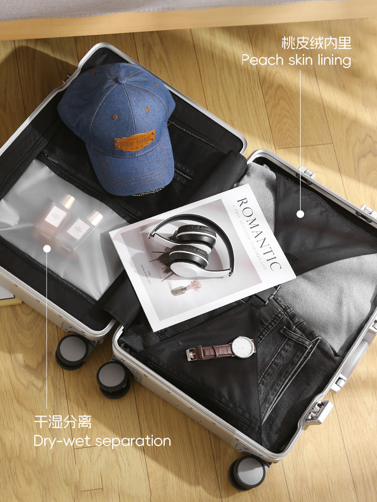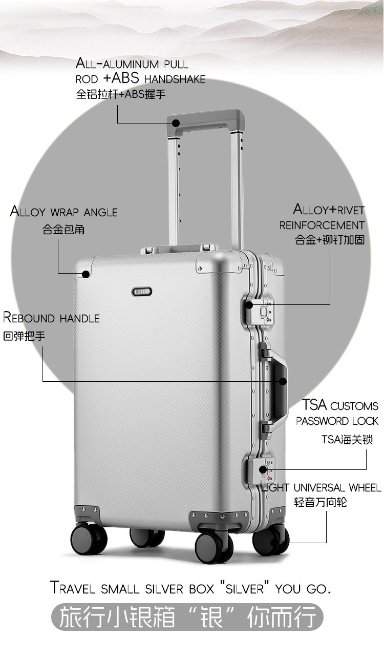 올알루미늄 마그네슘 합금 여행가방, 회전식 바퀴, 남성용 여행가방, 여성용 기내용 가방, 20인치, 2025년형, 도난 방지 비밀번호 잠금장치, 경량