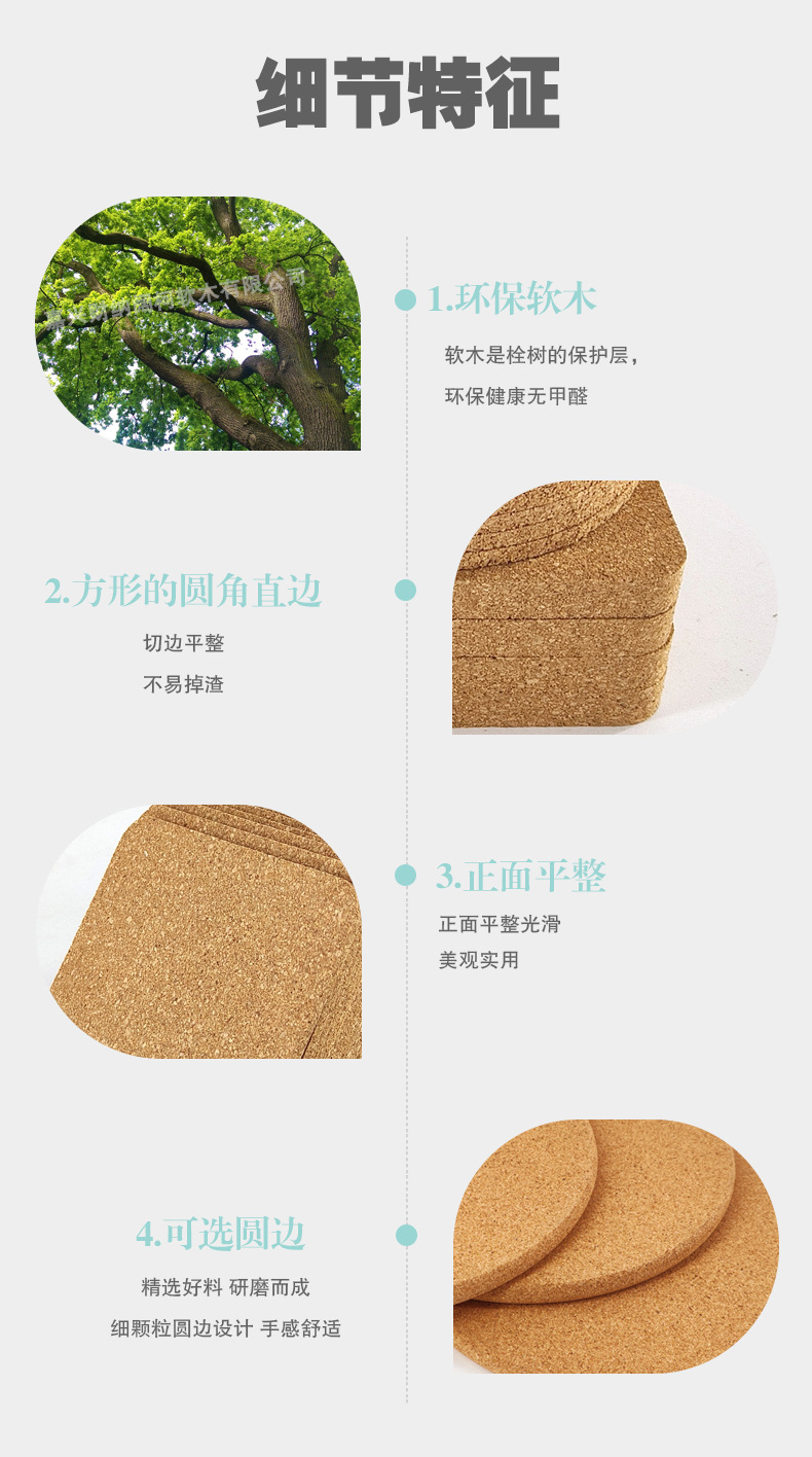 코르크 코스터 두께 5-10MM 냄비 패드 배치 단열 패드 직경 10/16/19CM 인쇄 가능한 로고