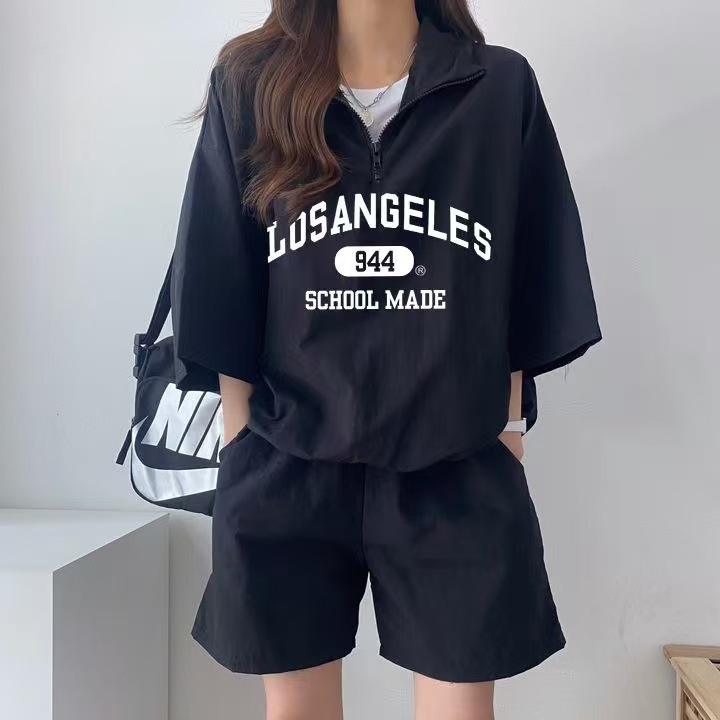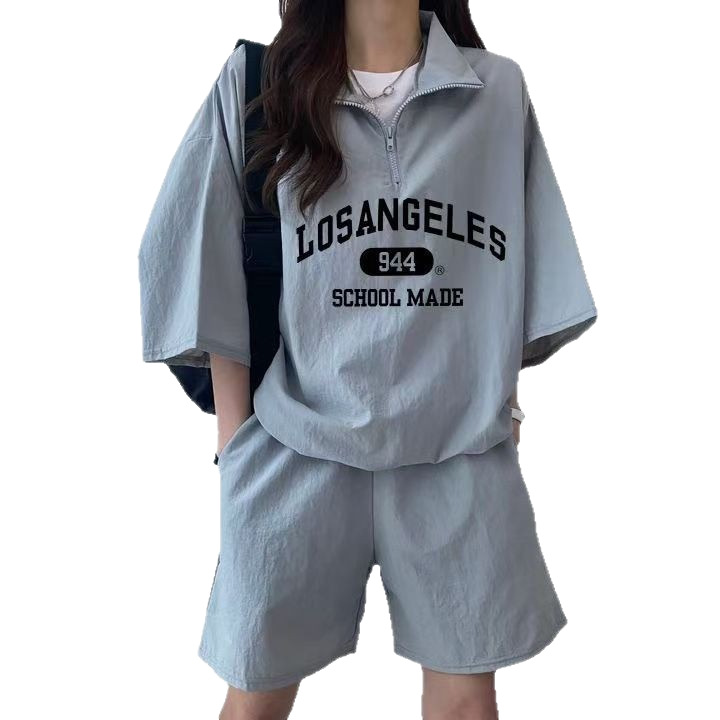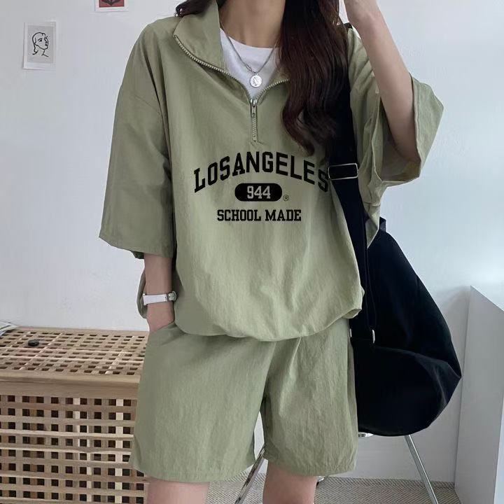 여성을위한 캐주얼 운동복 정장 여름 2025 새로운 반팔 반바지 캠퍼스 스타일 귀여운 소녀 러닝 투피스