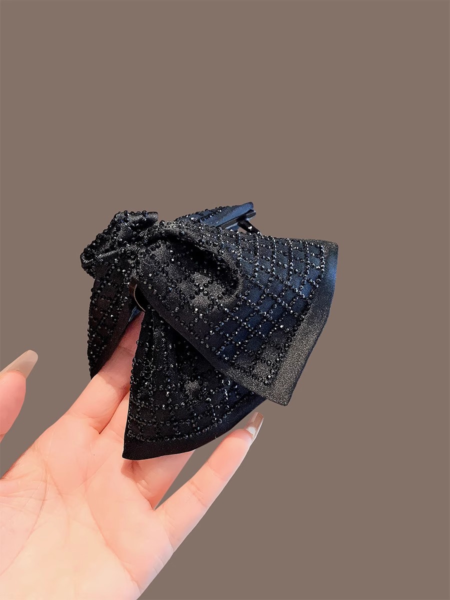 크로스보더 햅번 스타일 풀 다이아몬드 체크 무늬 블랙 클립 하이엔드 뒷머리 샤크 클립 포니테일 클립 머리핀 머리 장식
