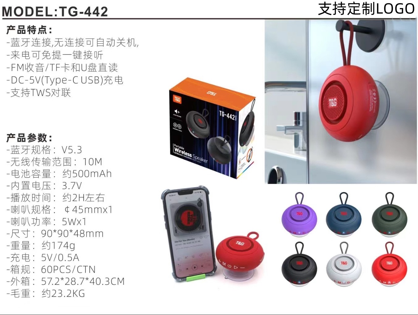 국경 간 선물 TG442 무선 블루투스 오디오 충전 미니 서브 우퍼 홈 욕실 야외 작은 오디오