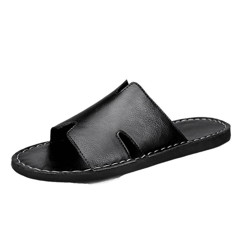 국경 간 플러스 사이즈 슬리퍼 남성 유행 여름 2025 새로운 도착 유행 외부 착용 미끄럼 방지 비치 정품 가죽 슬리퍼