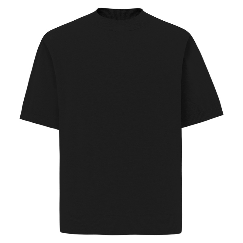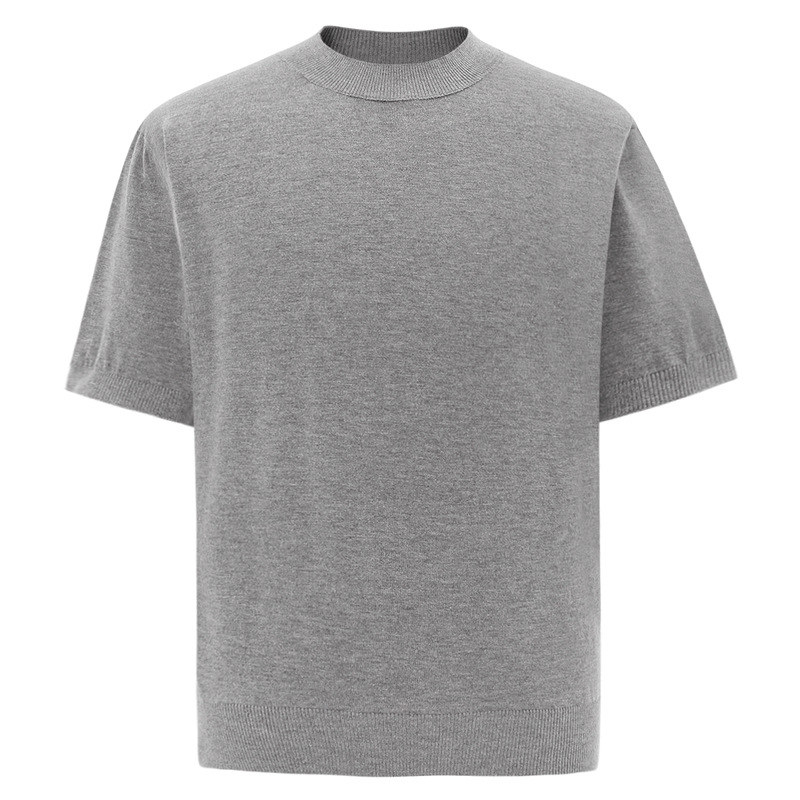 12바늘 플로럴 그레이 블랙 비스코스 스레드 스몰 터틀넥 핏 니트 울 반팔 티셔츠 남성용 올드 머니 스타일 티셔츠