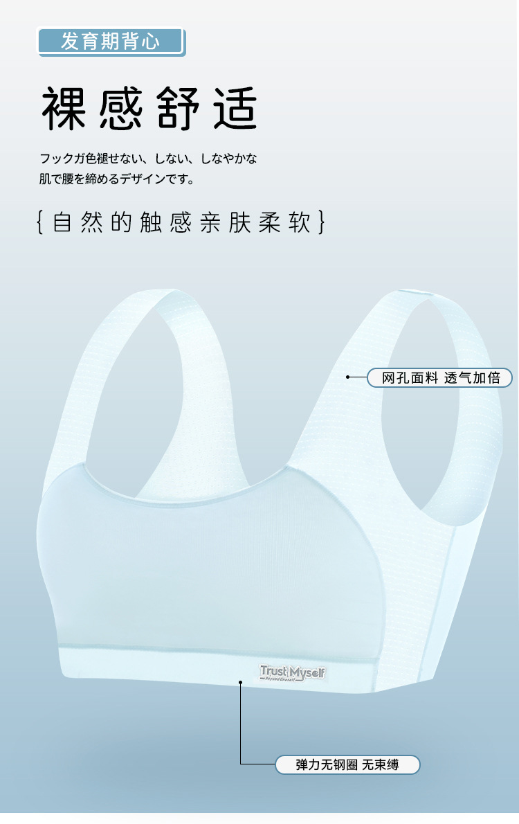 여아, 사춘기 여아 속옷, 브라, 중대형 아동 여름 통기성 메쉬 학생 발달기 아동 조끼