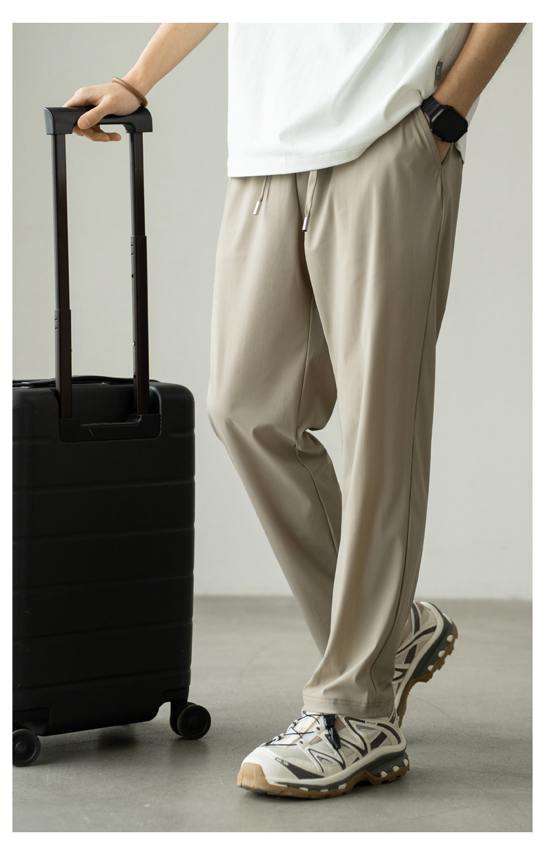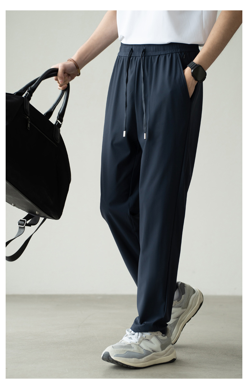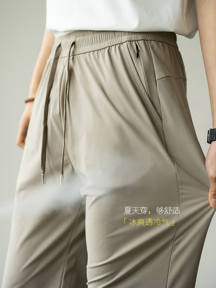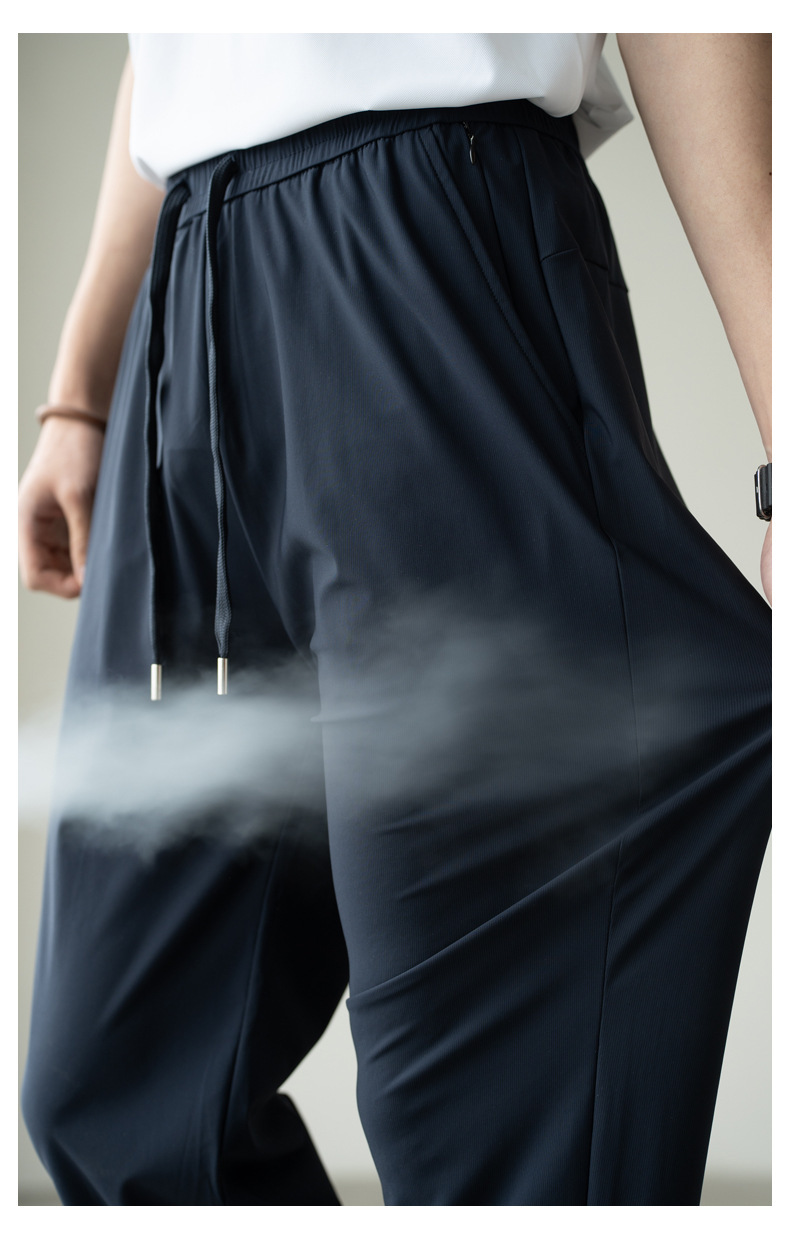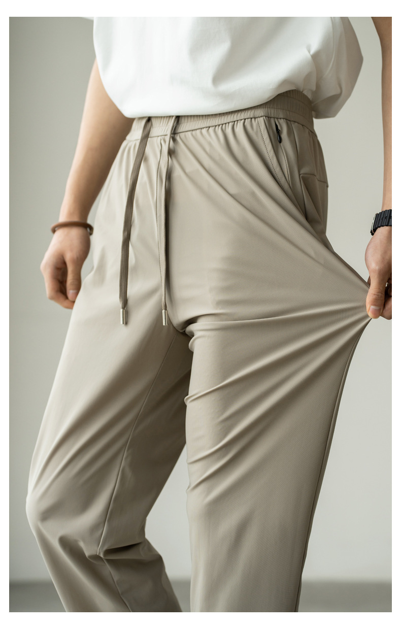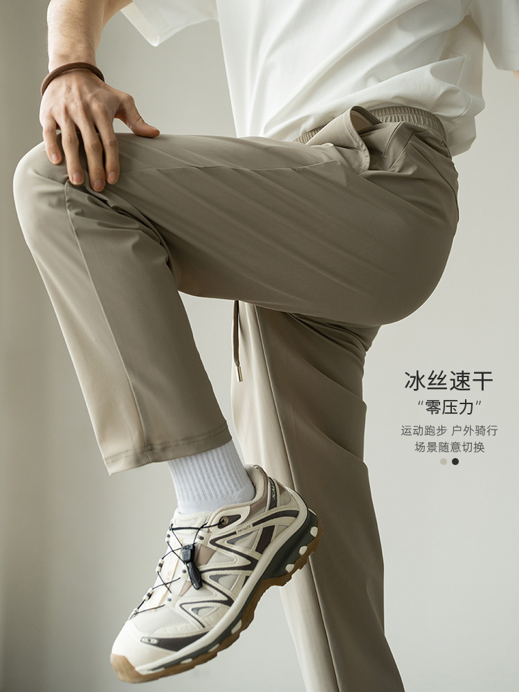 [쿨한 느낌 4 면 탄환] 얇은 아이스 실크 와이드 레그 팬츠 남자 2025 년 여름 야외 스포츠 비즈니스 캐주얼 새 바지