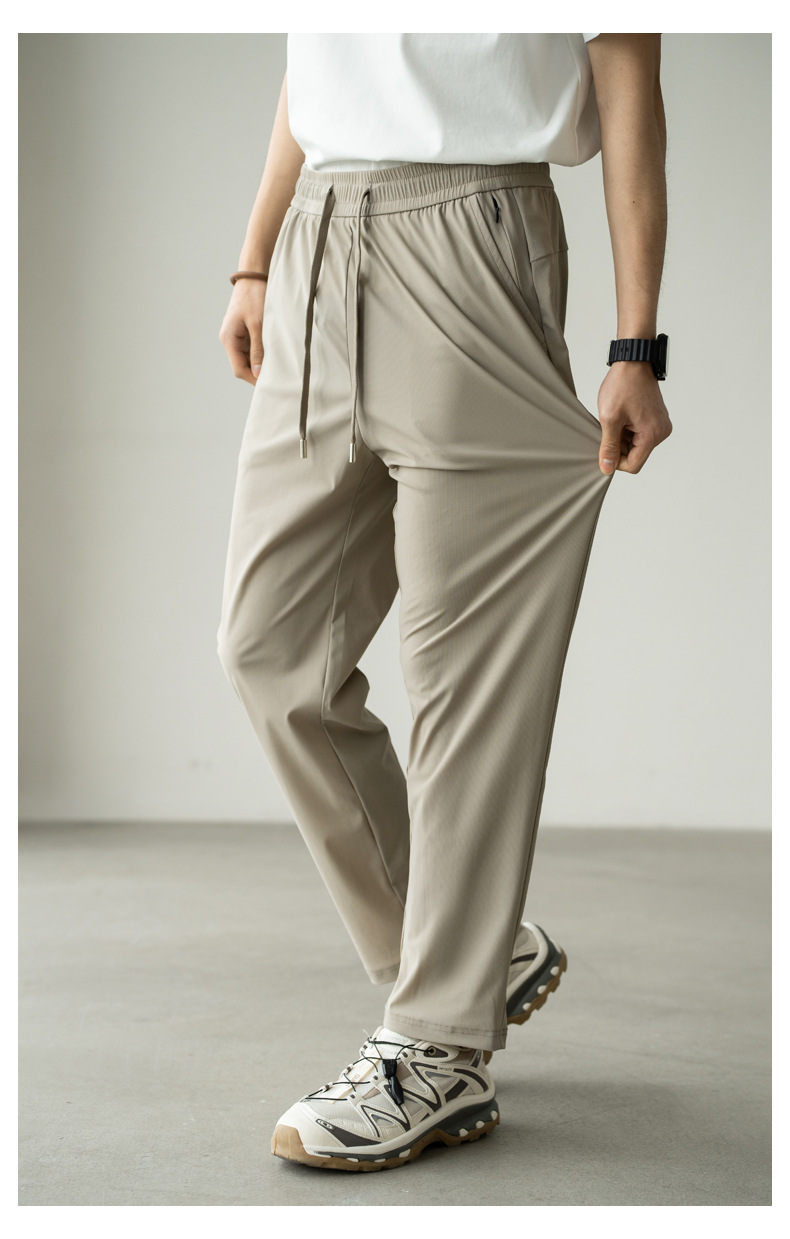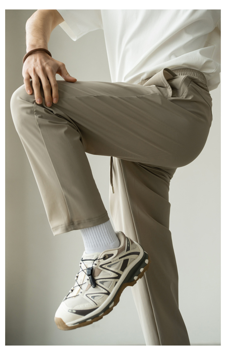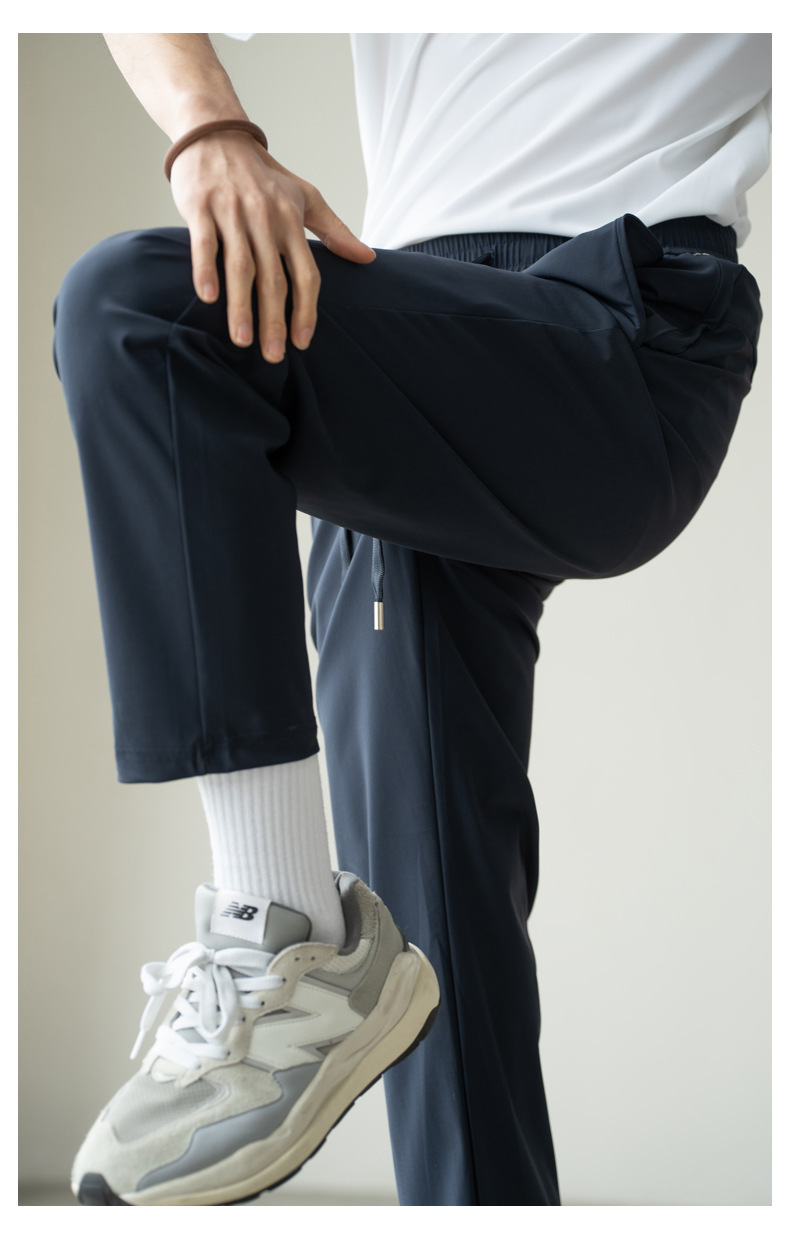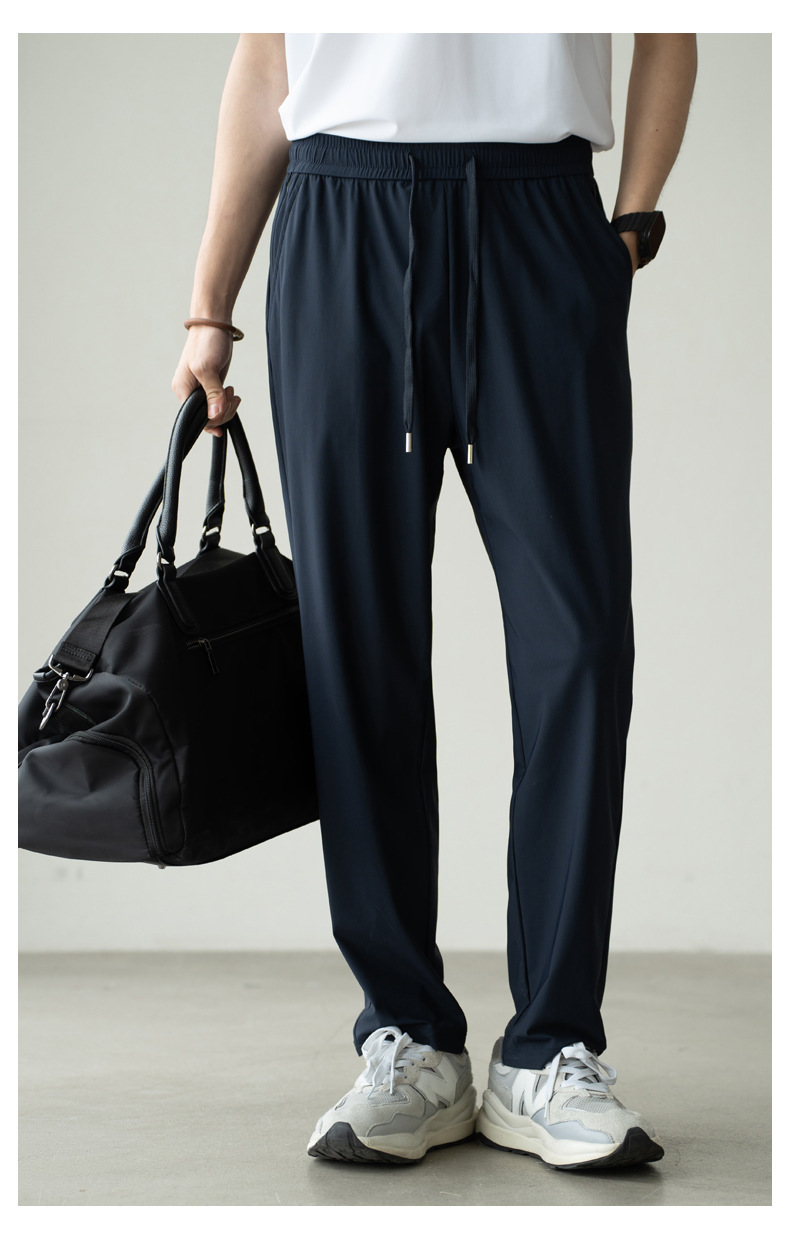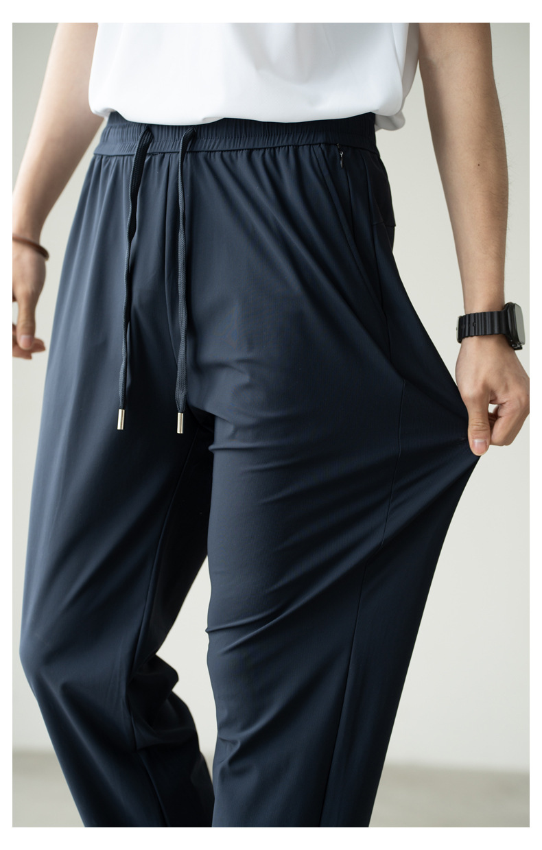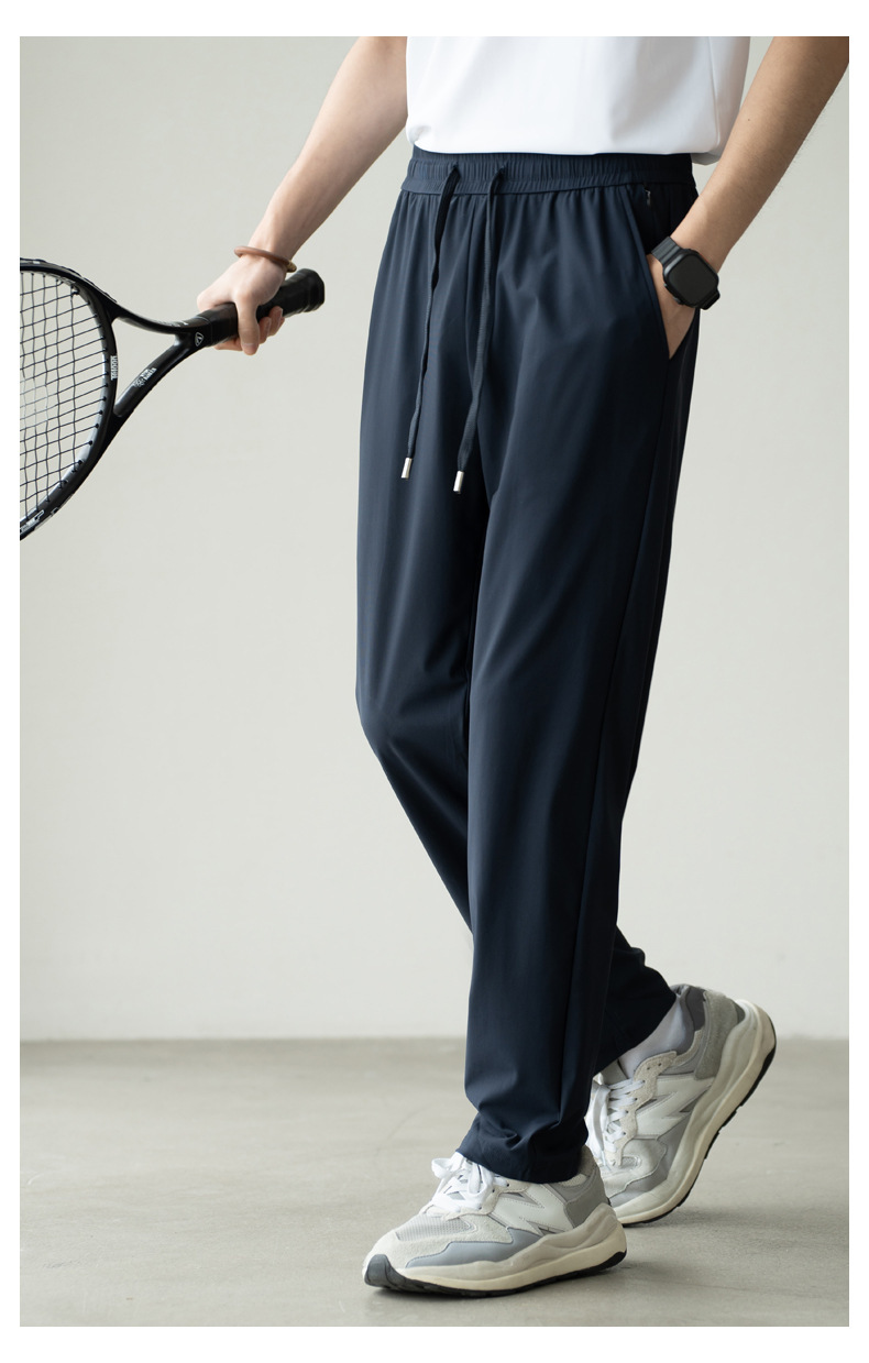 [쿨한 느낌 4 면 탄환] 얇은 아이스 실크 와이드 레그 팬츠 남자 2025 년 여름 야외 스포츠 비즈니스 캐주얼 새 바지