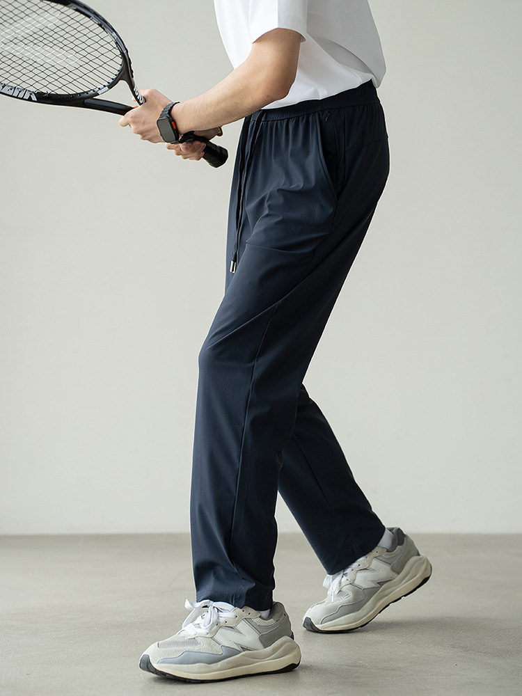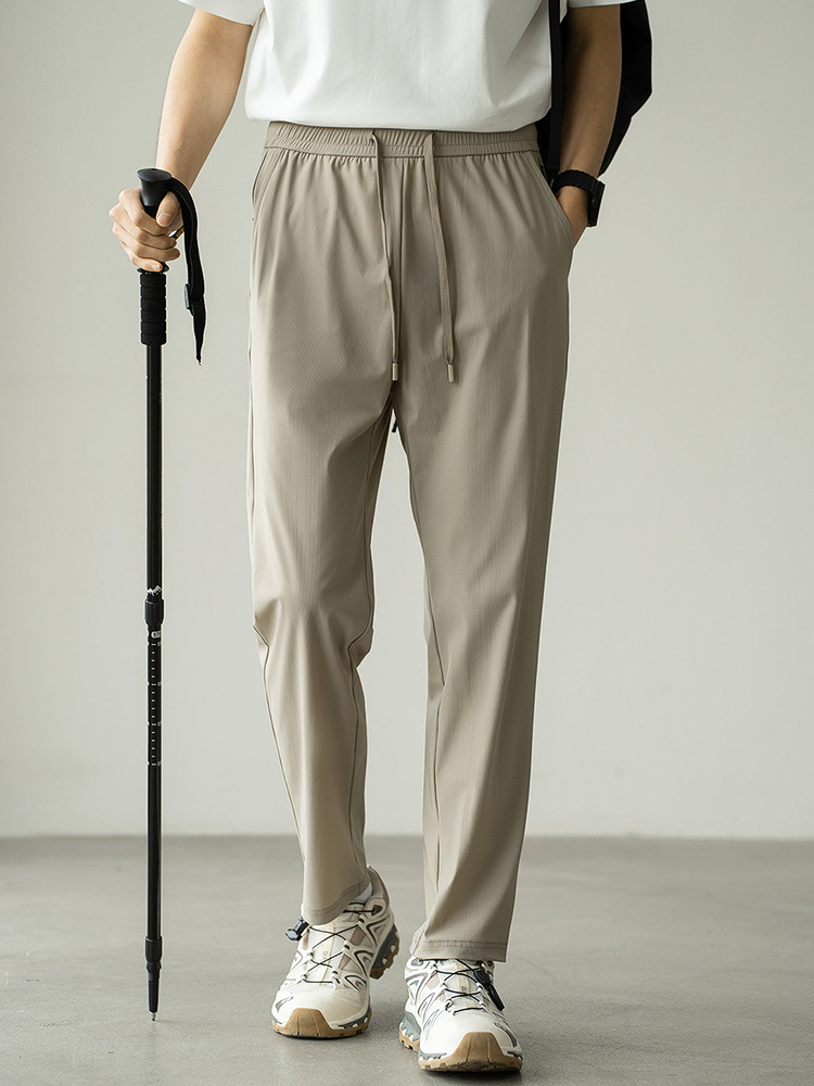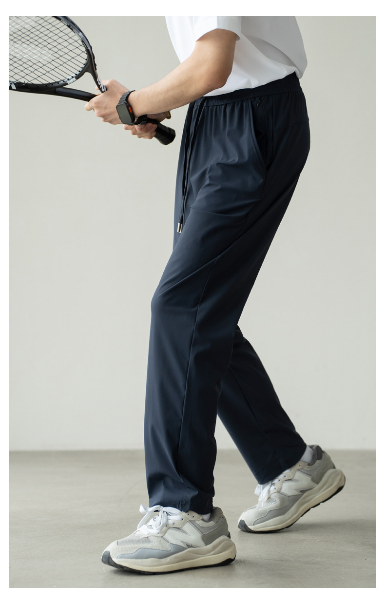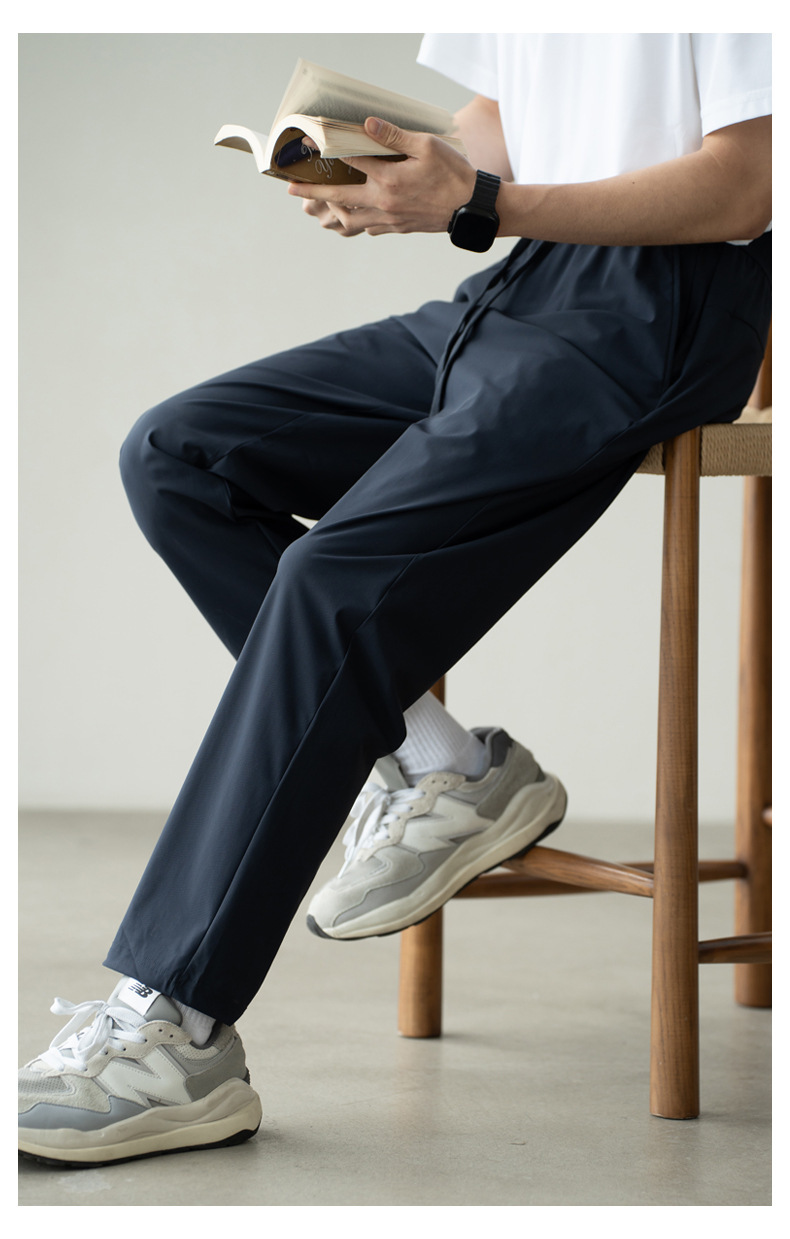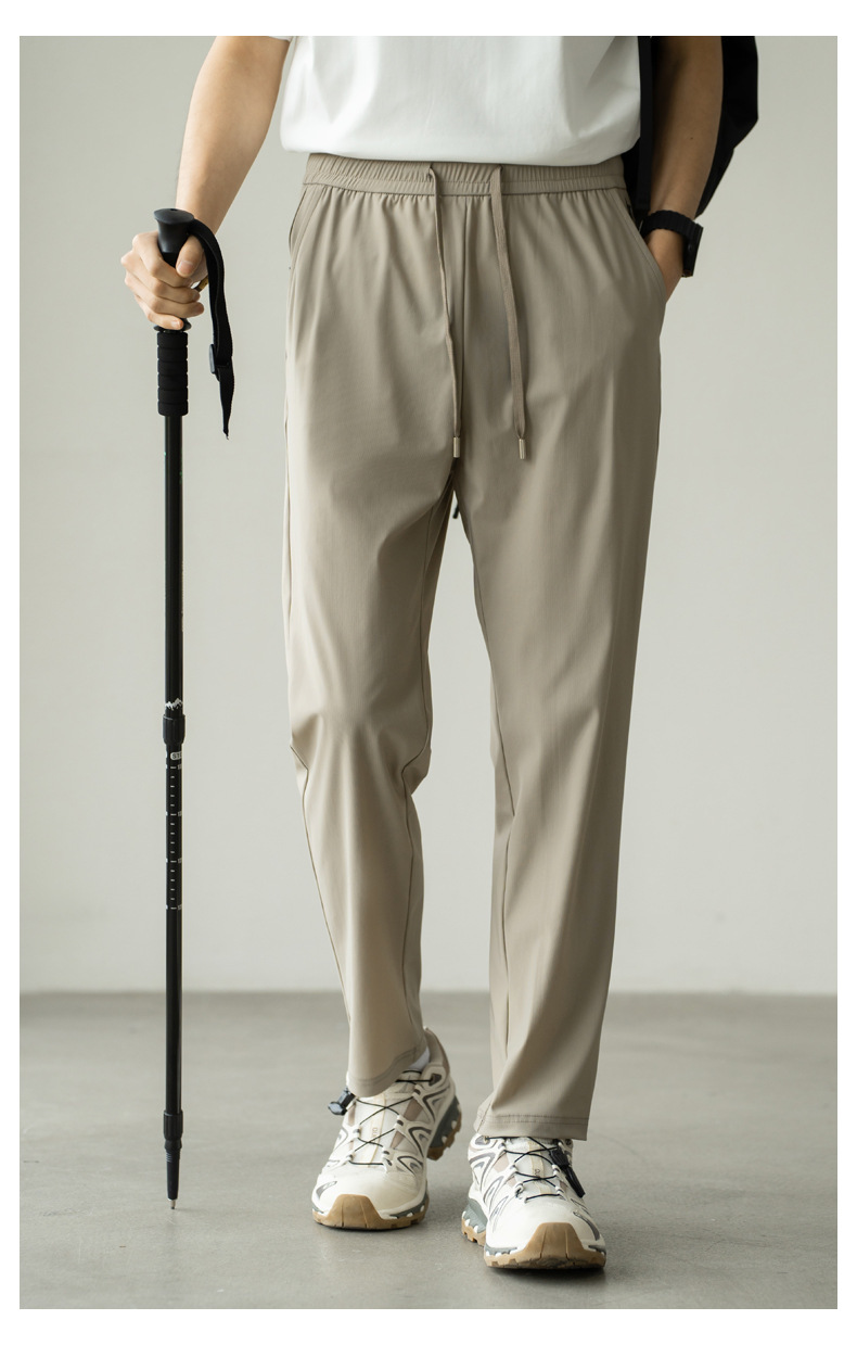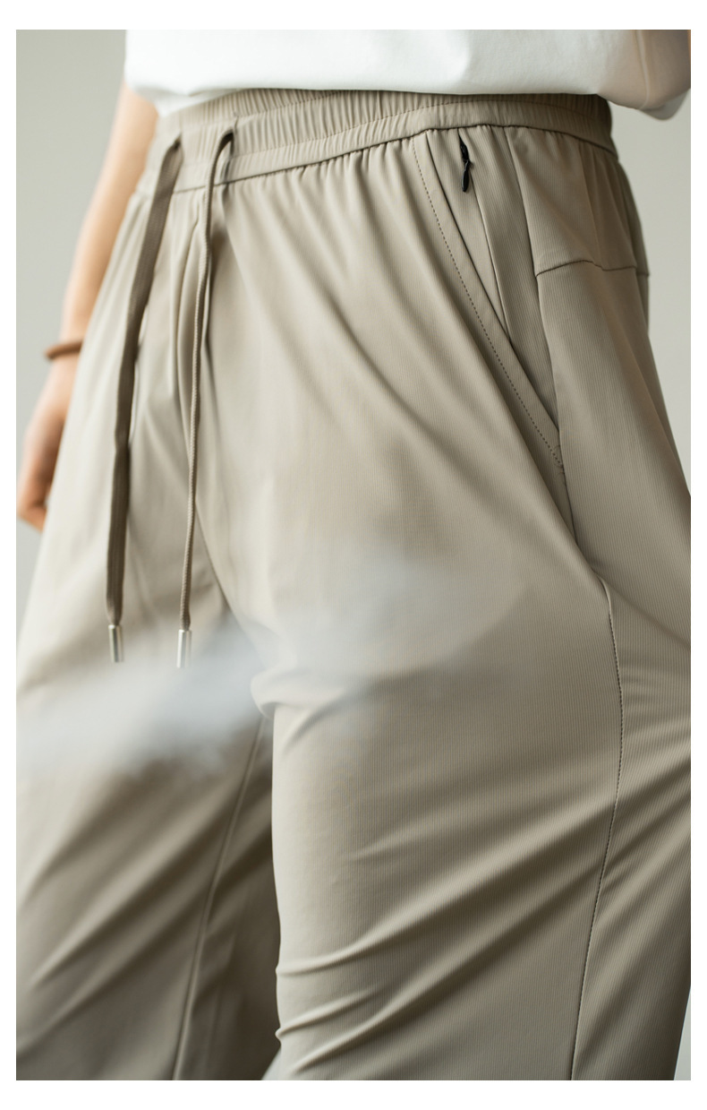 [쿨한 느낌 4 면 탄환] 얇은 아이스 실크 와이드 레그 팬츠 남자 2025 년 여름 야외 스포츠 비즈니스 캐주얼 새 바지