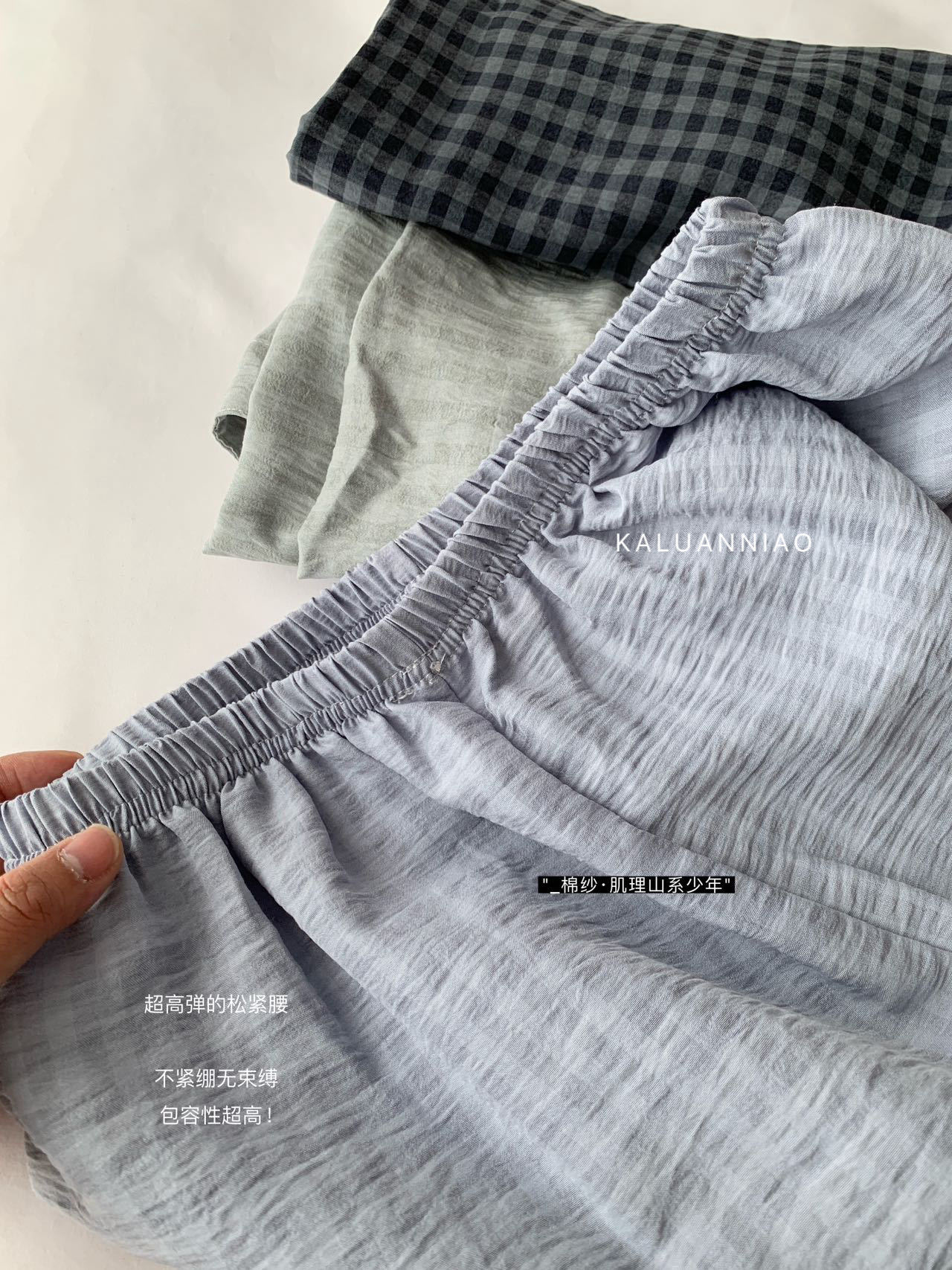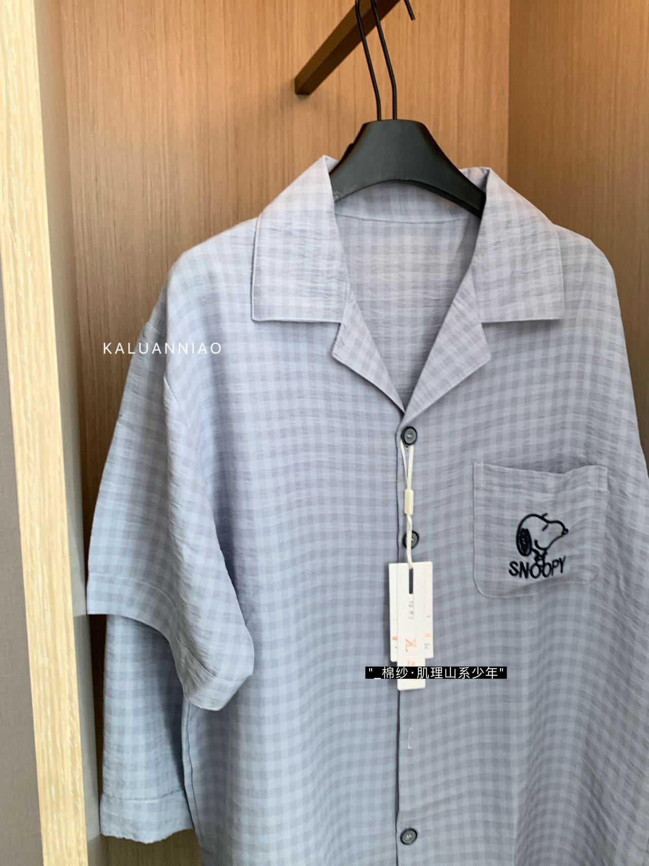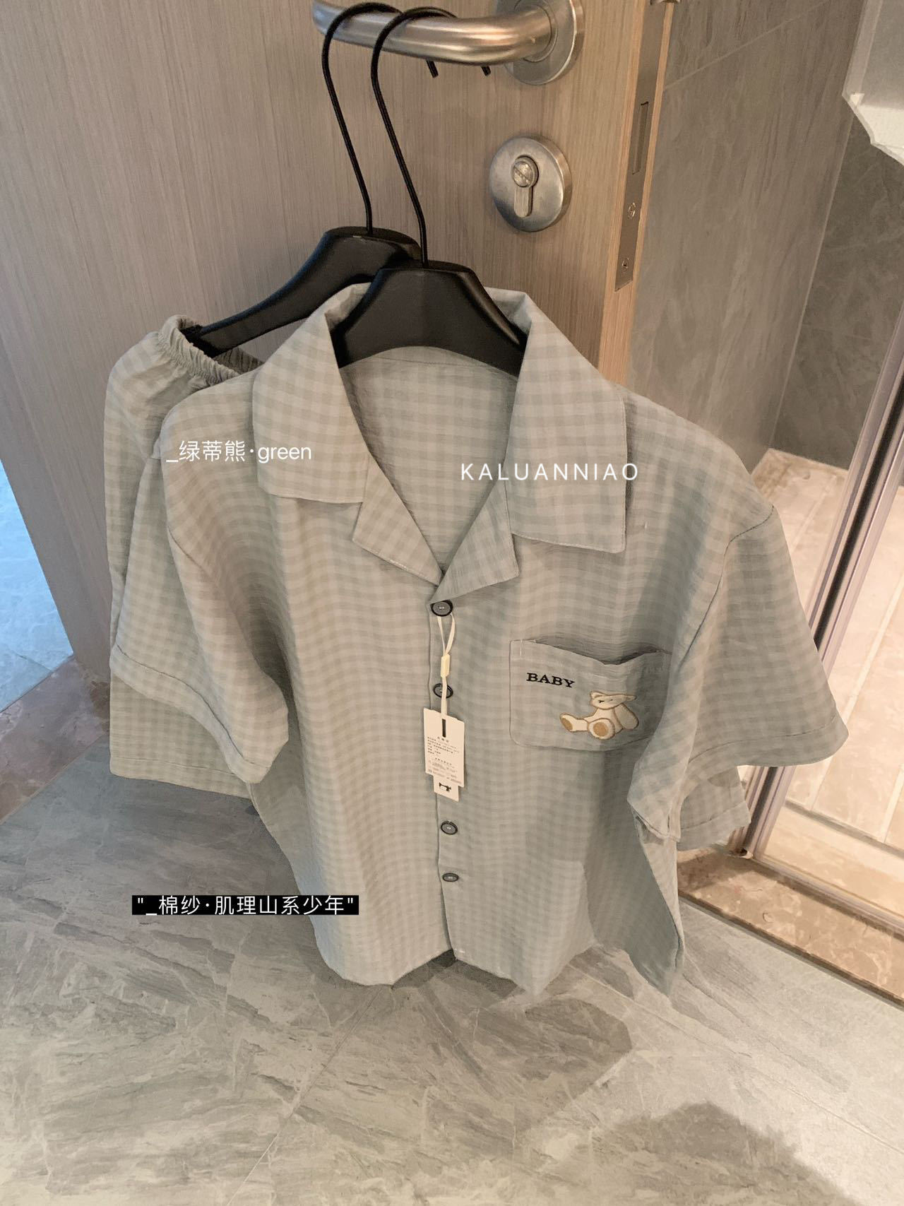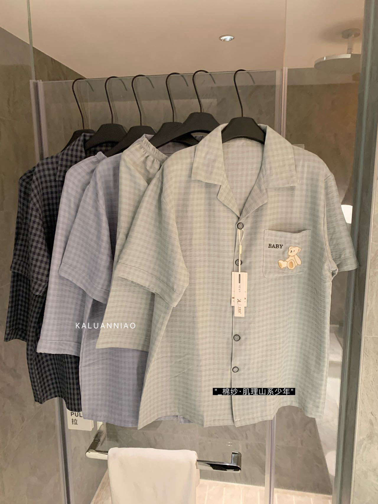 KALUANNIAO "면 원사-질감 마운틴 스타일 주니어 남성 잠옷 홈 의류 에어면 짧은 소매 반바지