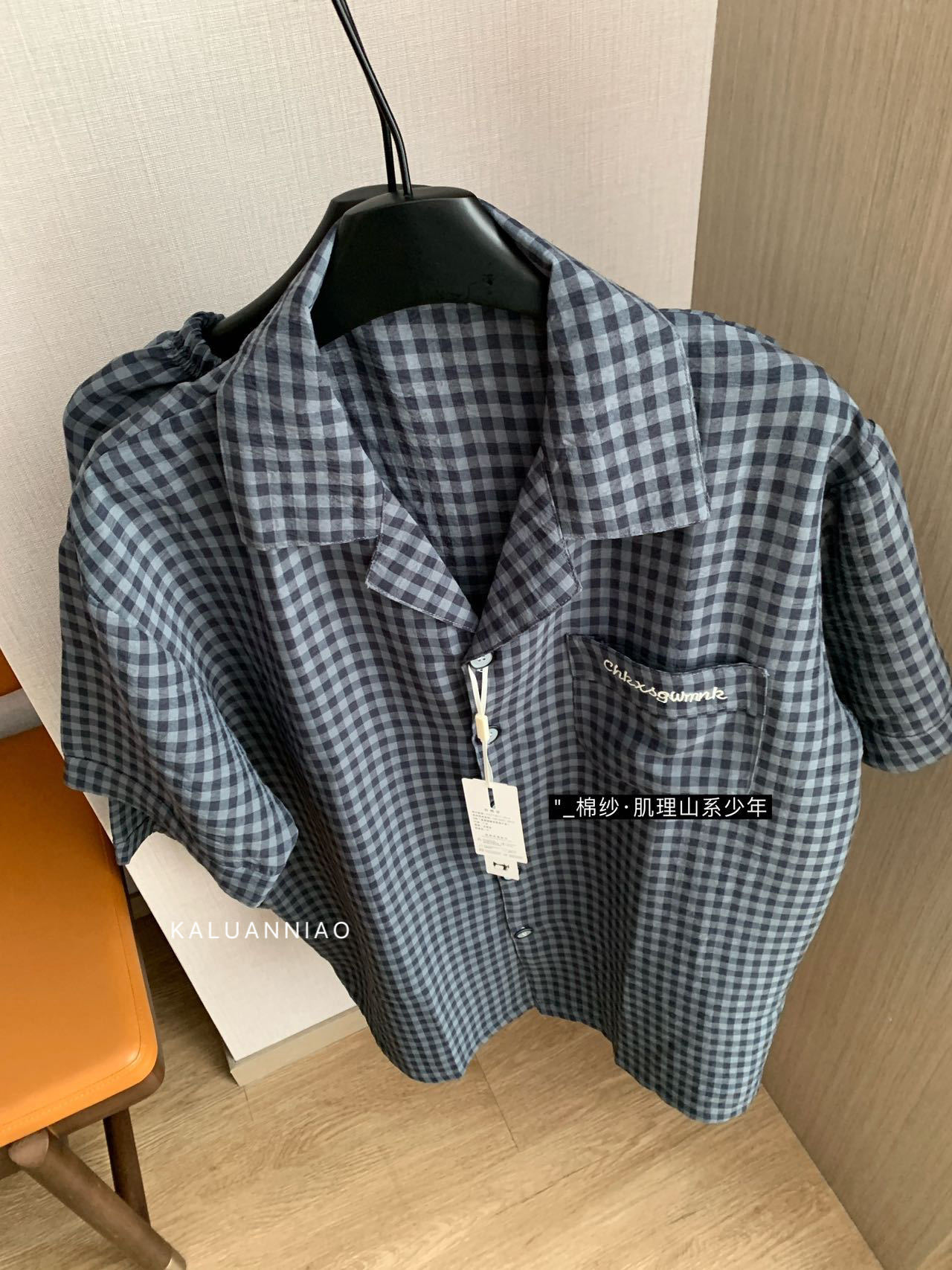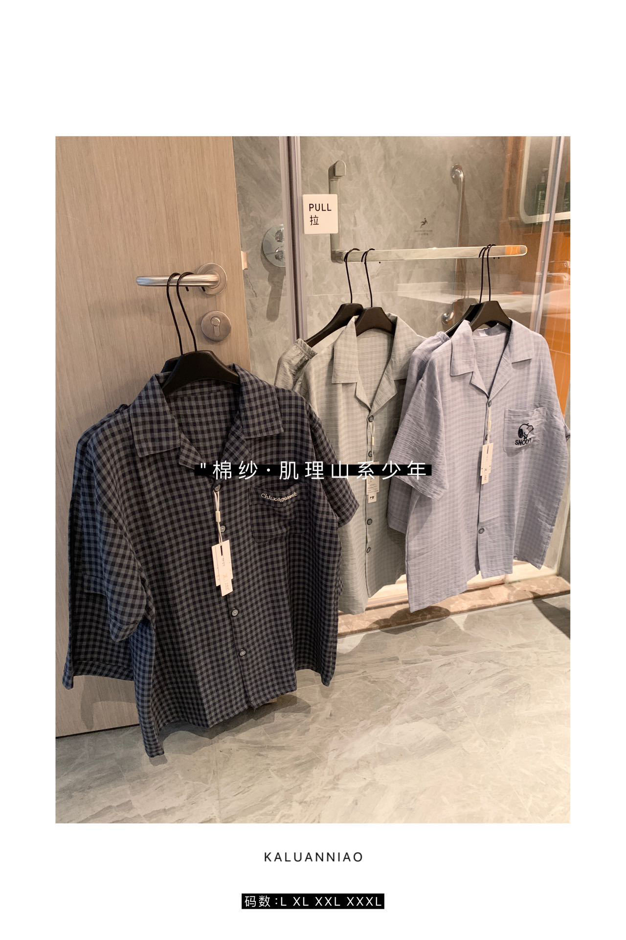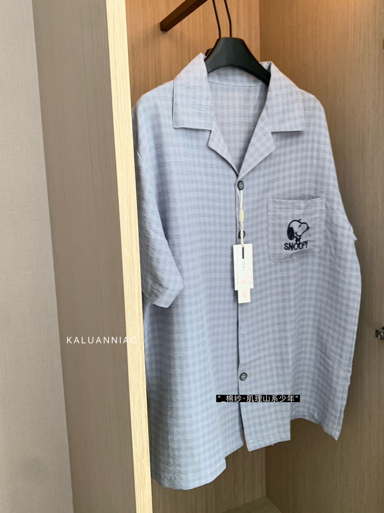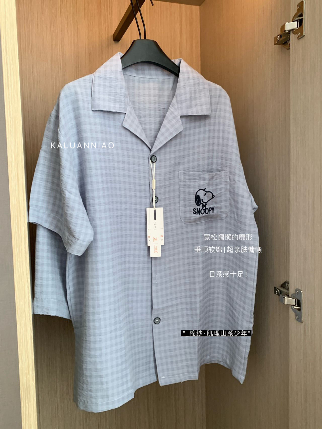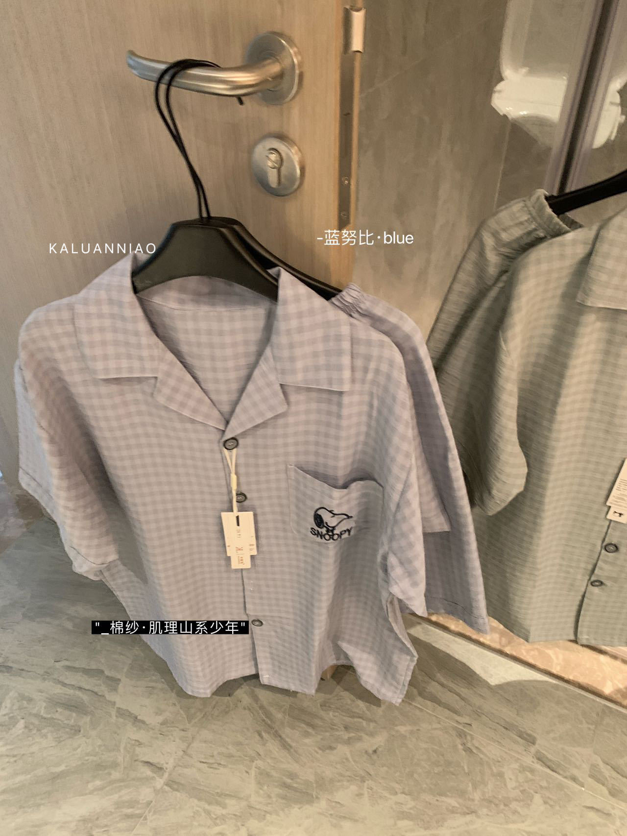 KALUANNIAO "면 원사-질감 마운틴 스타일 주니어 남성 잠옷 홈 의류 에어면 짧은 소매 반바지