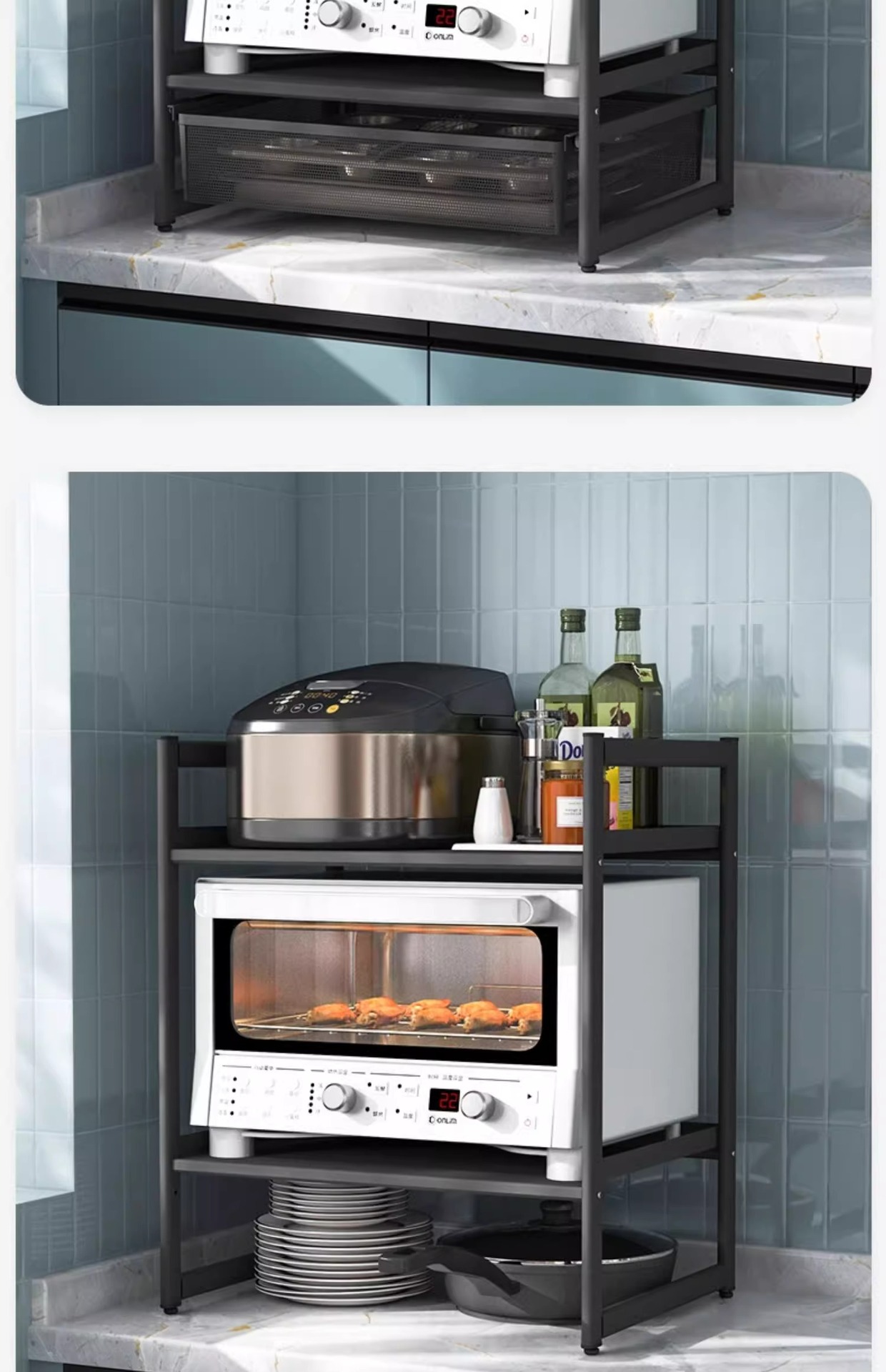 주방 랙 전자 레인지 랙 가정용 더블 레이어 카운터 탑 데스크탑 스토리지 브래킷 작은 스토리지 랙