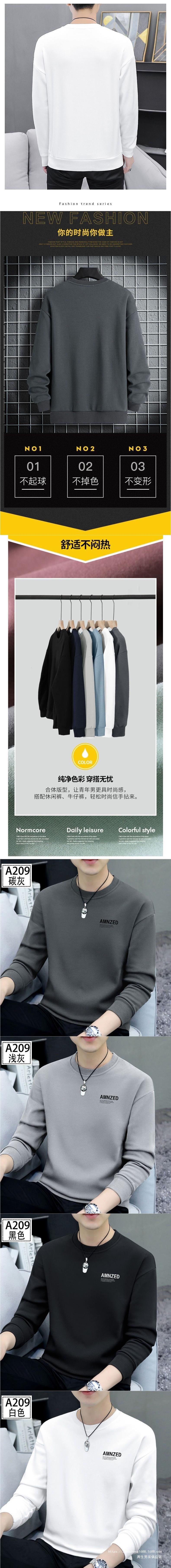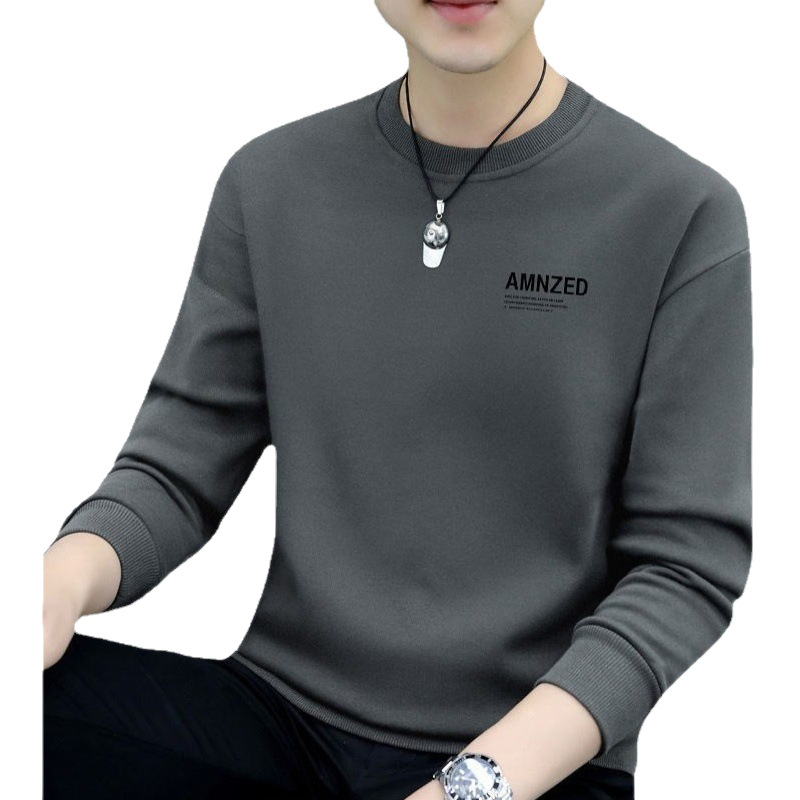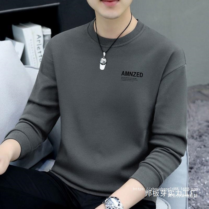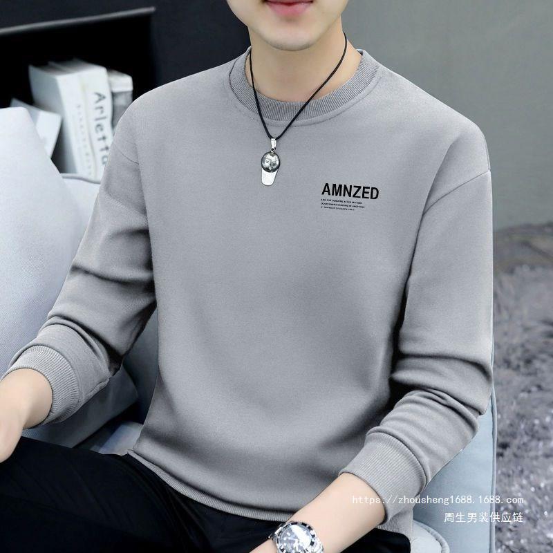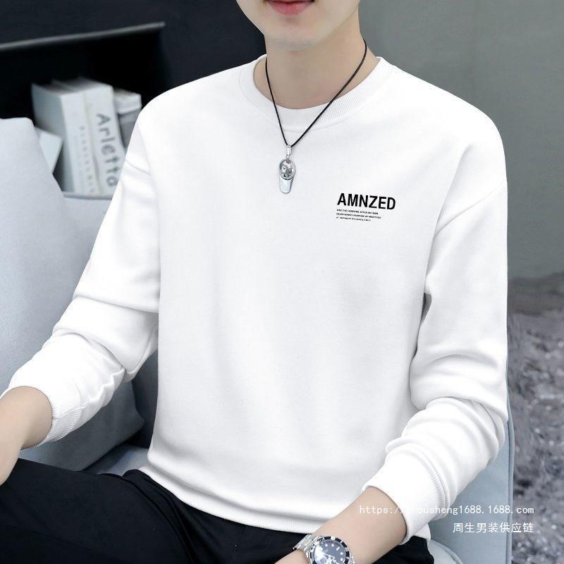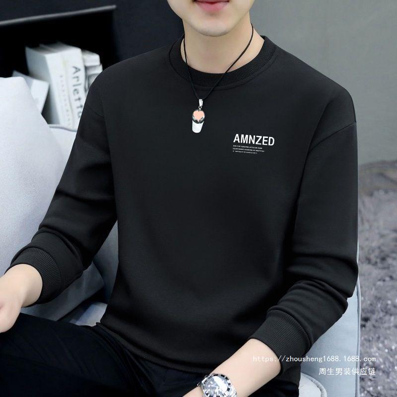 새로운 가을 남성 운동복 라운드 넥 프린트 티셔츠 긴팔 겉옷 캐주얼 트렌디 남성 탑 바닥 셔츠 도매