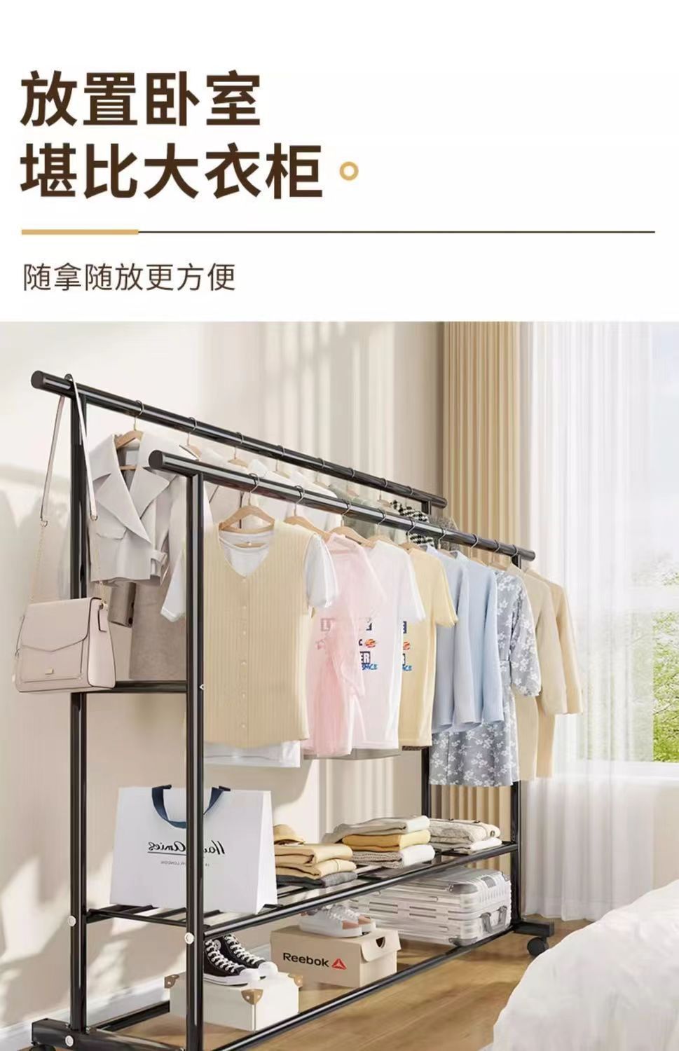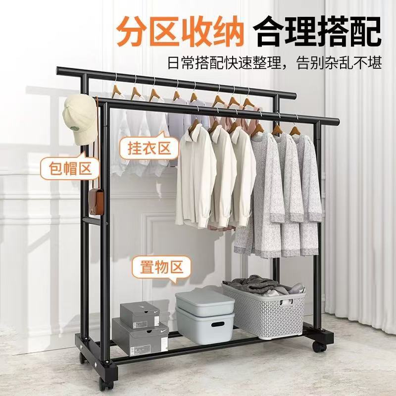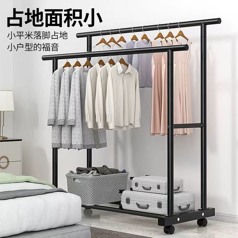 건조 랙 바닥 가정용 침실 두꺼운 두꺼운 옷 더블 로드 간단한 실내 바퀴 달린 모바일 의류 랙