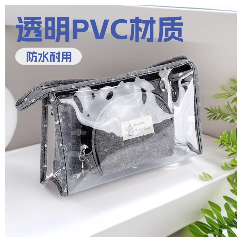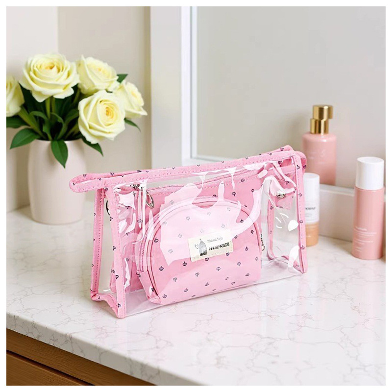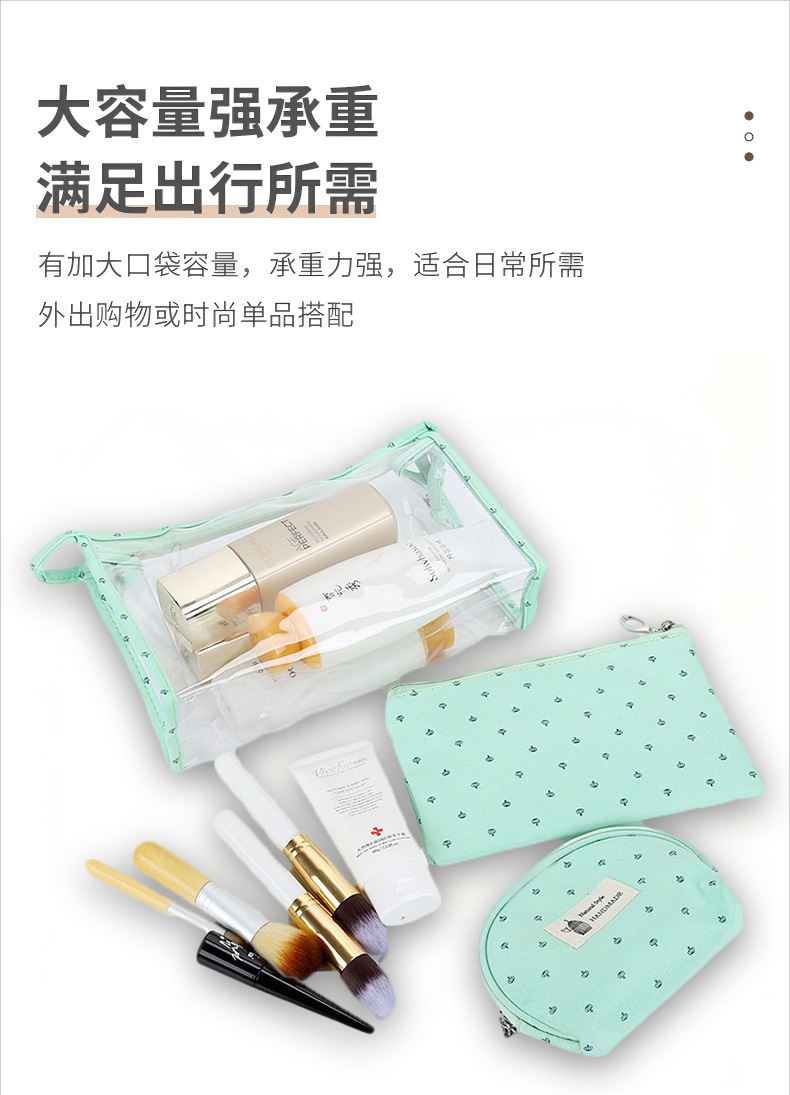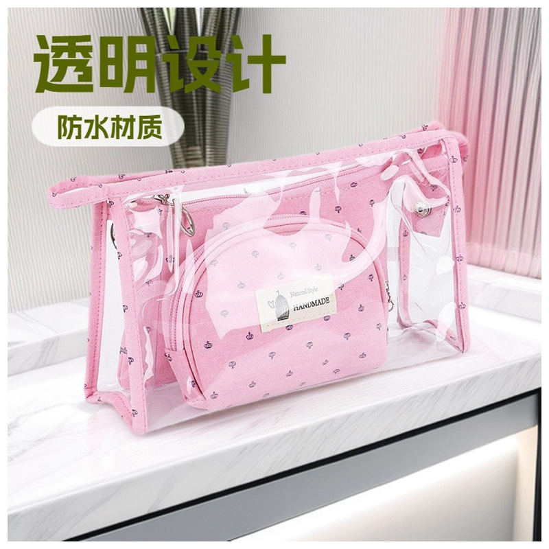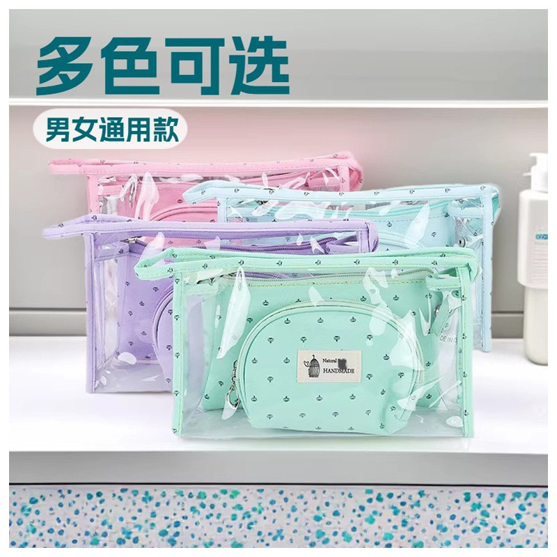 핫한 한국식 3종 세트 여행용 세면도구 투명 화장품 가방 대용량 투명 동전 지갑 간이 화장품 가방