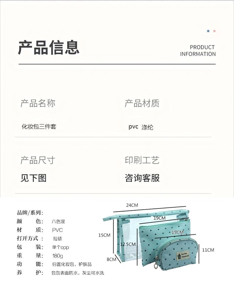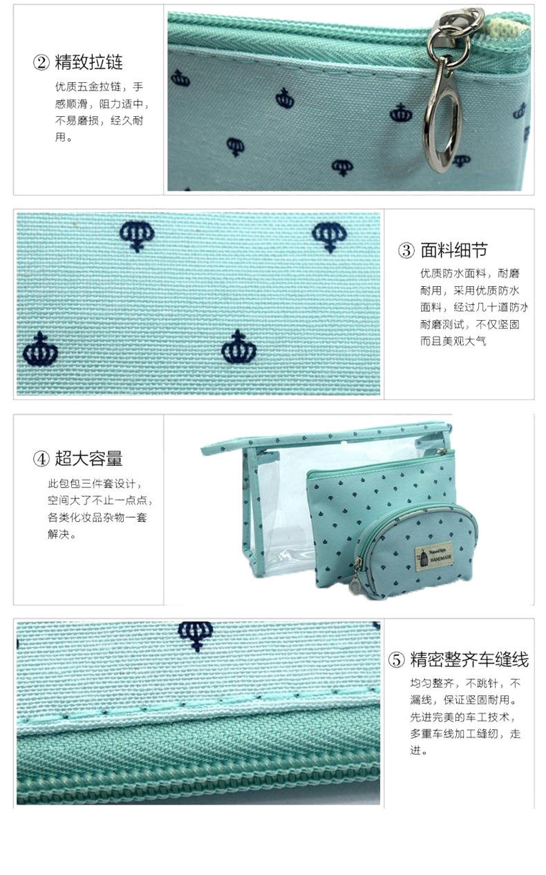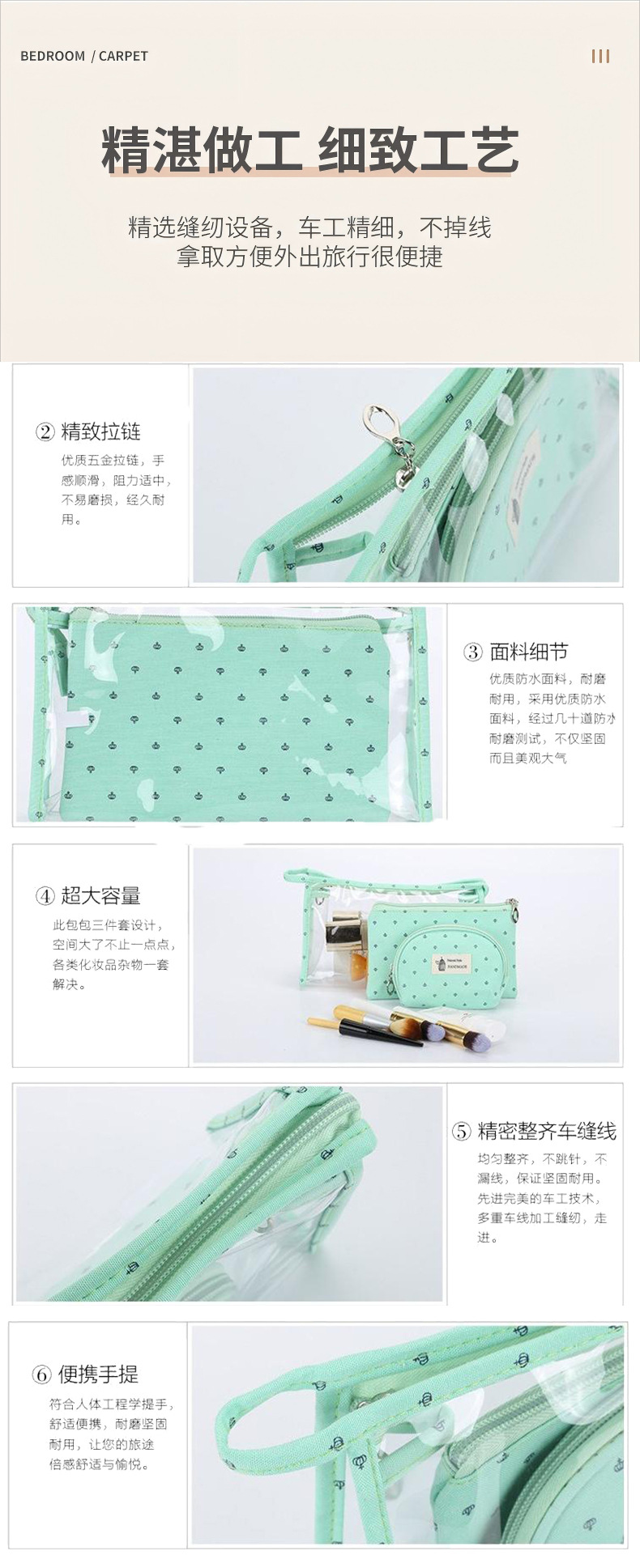 핫한 한국식 3종 세트 여행용 세면도구 투명 화장품 가방 대용량 투명 동전 지갑 간이 화장품 가방