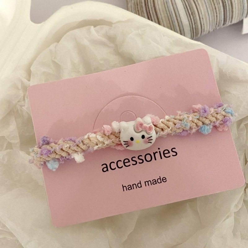 도파민 귀여운 컬러 헤어 밴드 고양이 헤어 로프 달콤한 머리띠 고탄성 고무 밴드 학생 머리 장식 헤어 액세서리