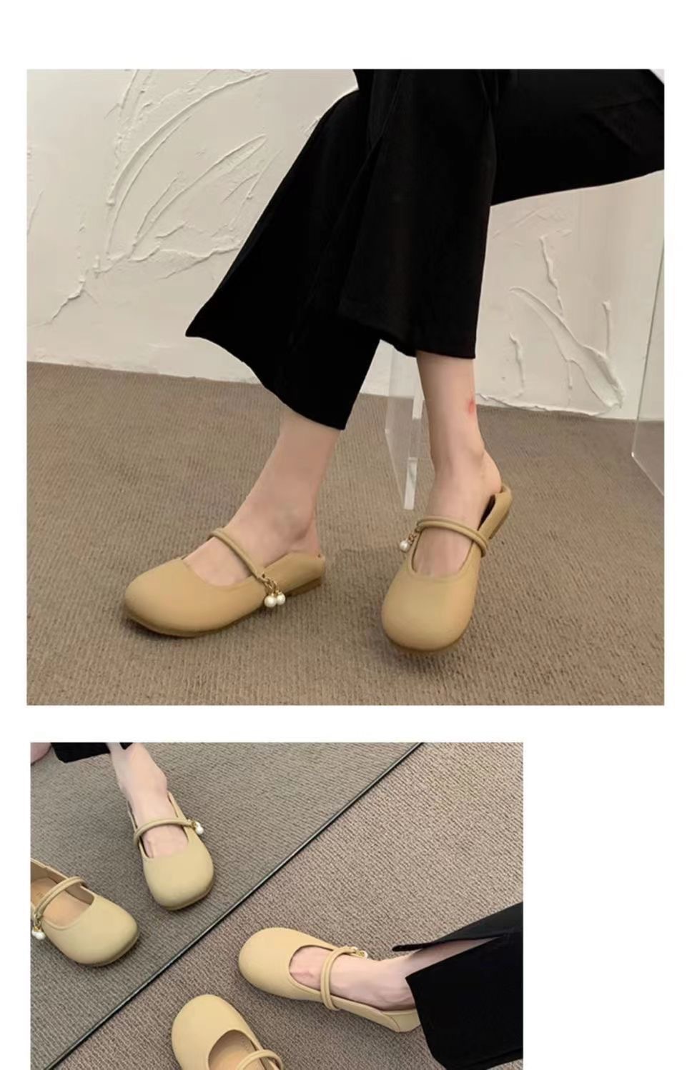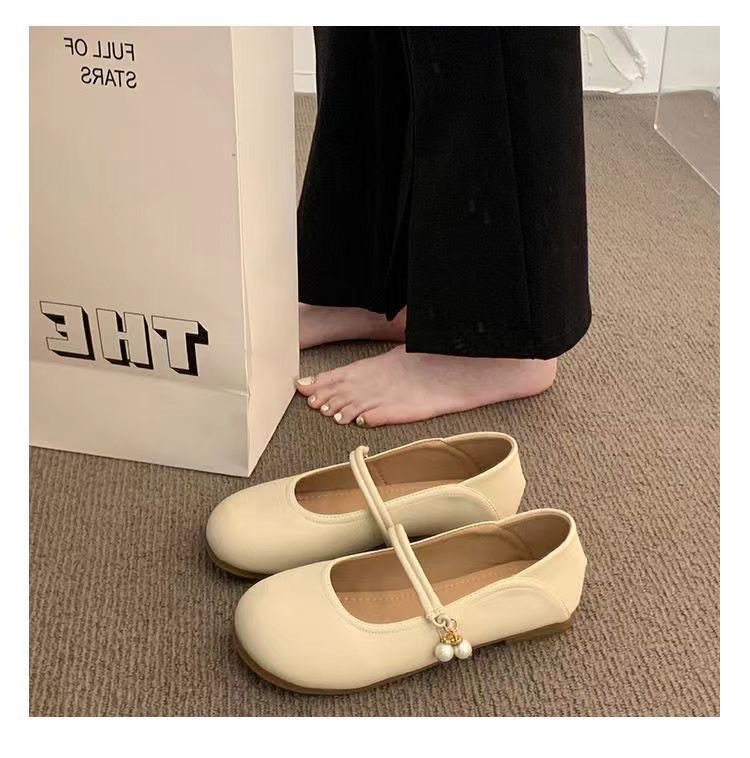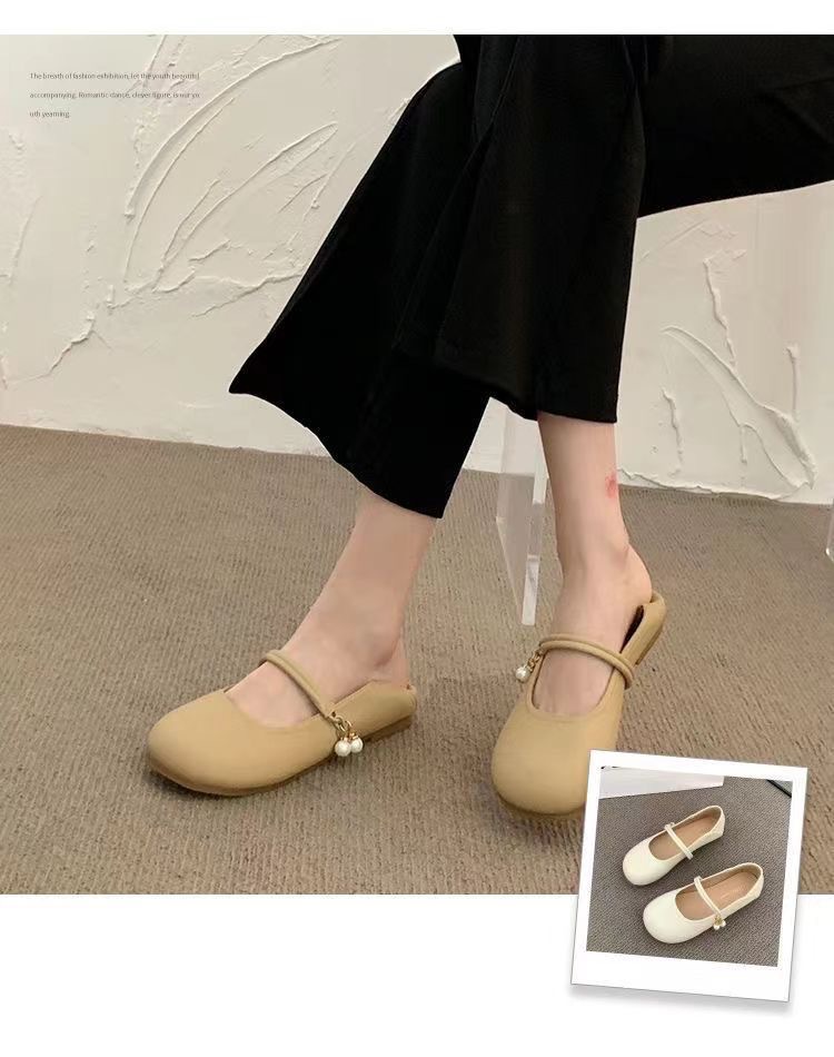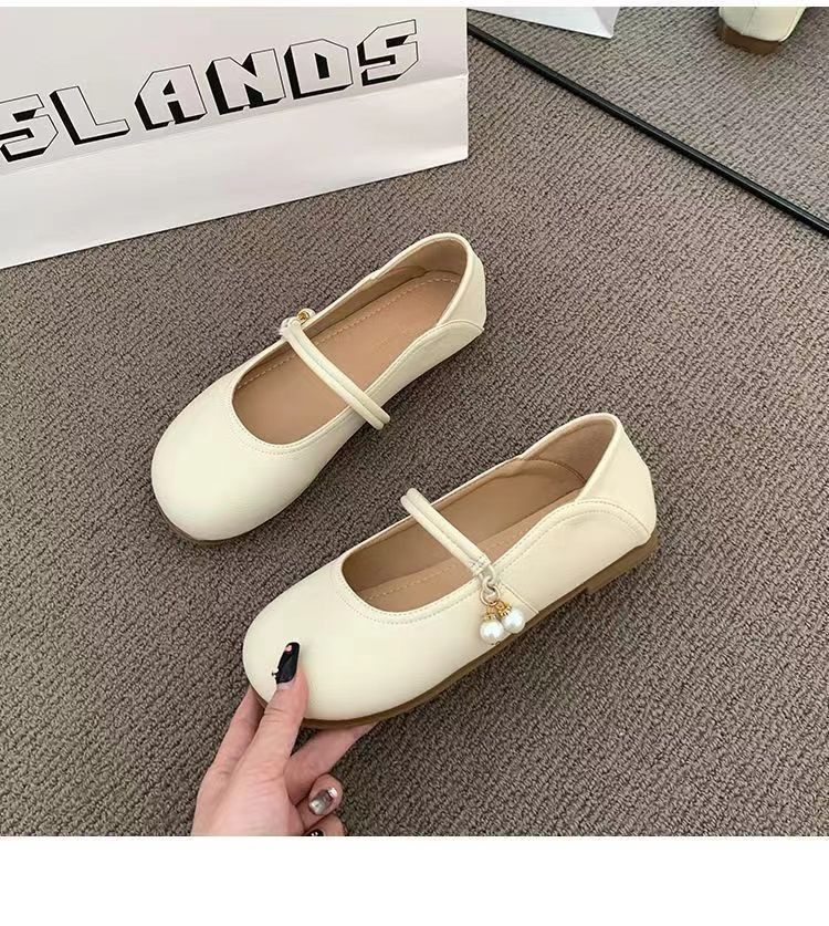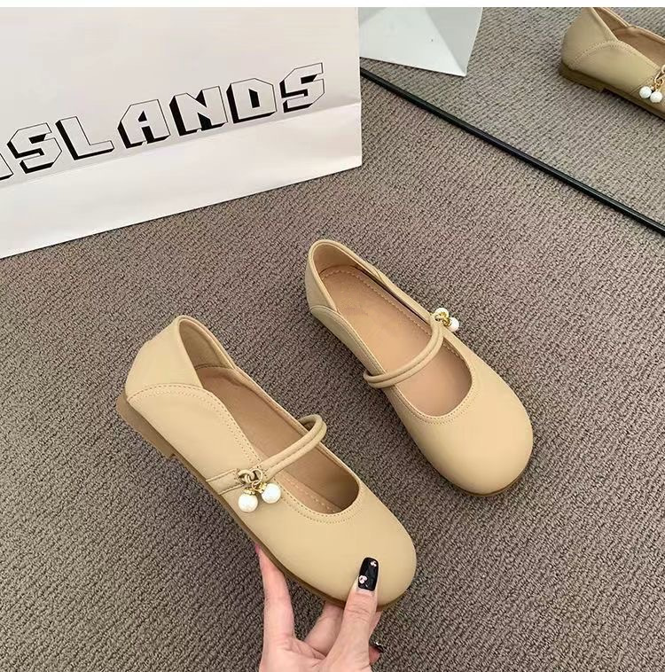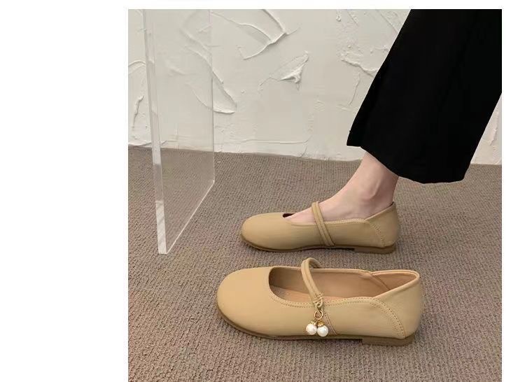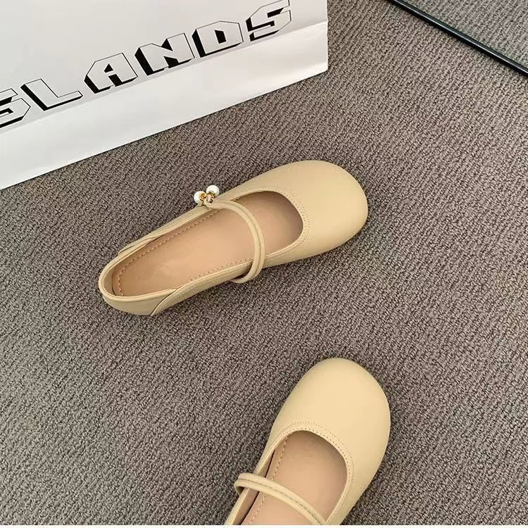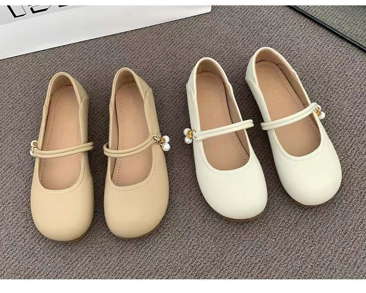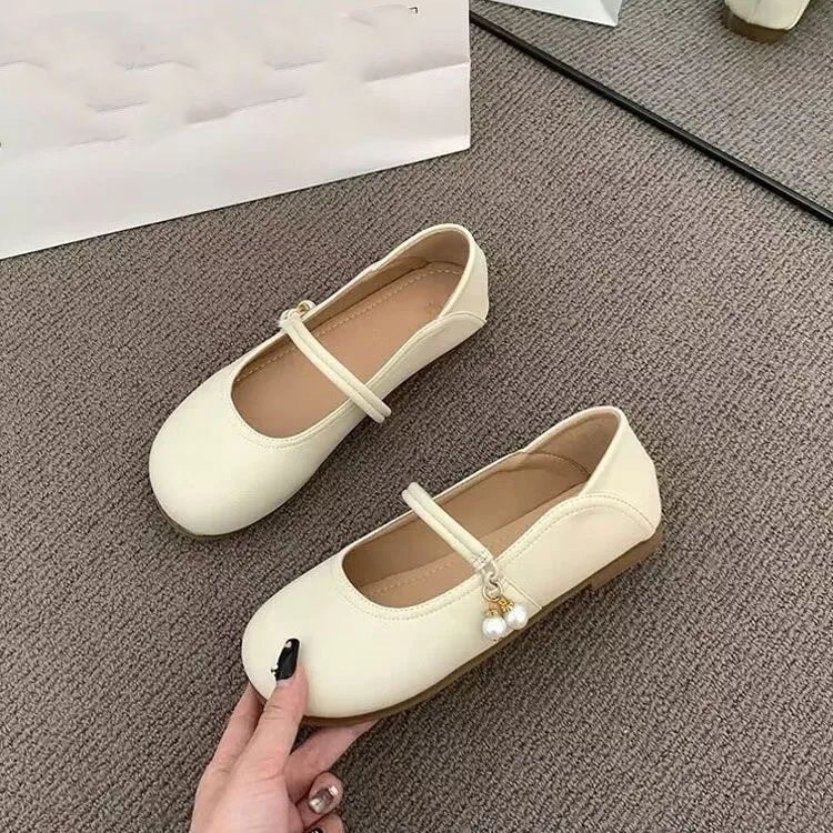 부드러운 가죽 프렌치 스커트 라운드 토 메리 슈즈 2025년 여름 신상 얕은 입 부드러운 밑창 여성화 플랫 캐주얼 가죽 신발