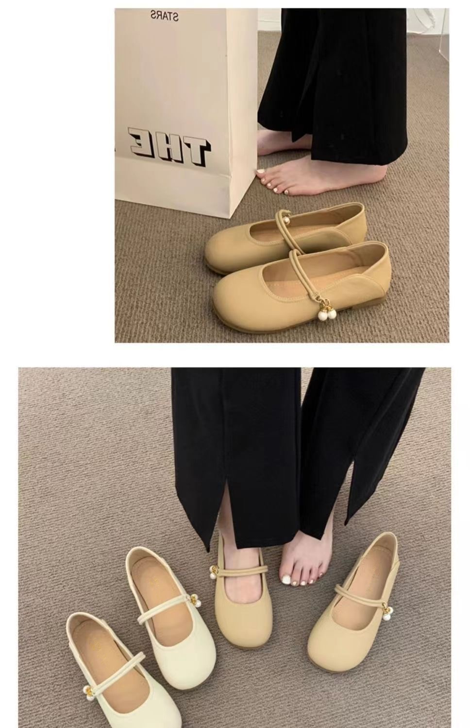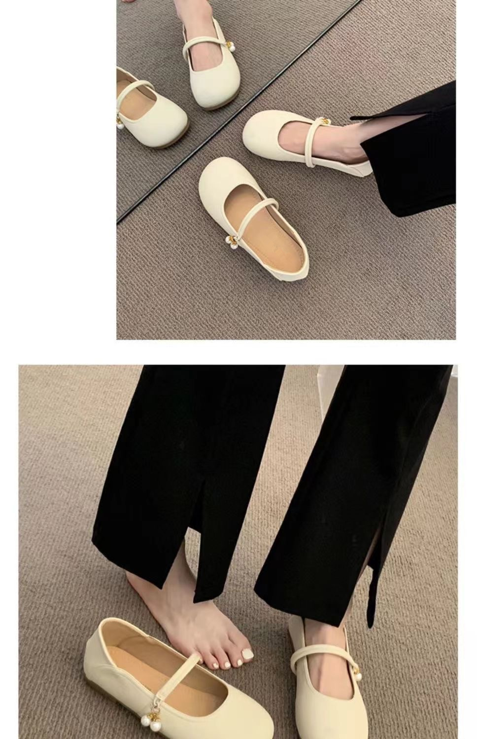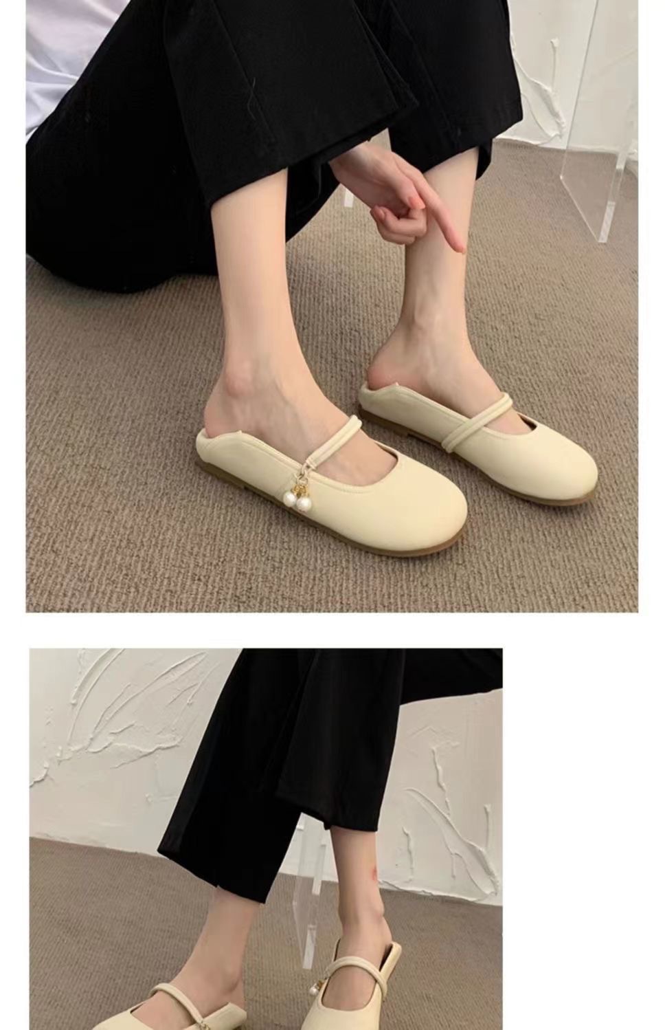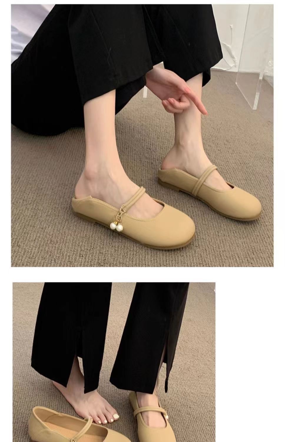 부드러운 가죽 프렌치 스커트 라운드 토 메리 슈즈 2025년 여름 신상 얕은 입 부드러운 밑창 여성화 플랫 캐주얼 가죽 신발