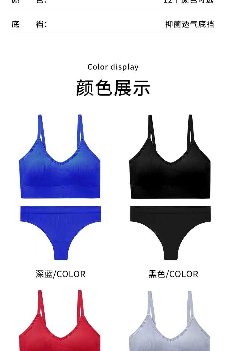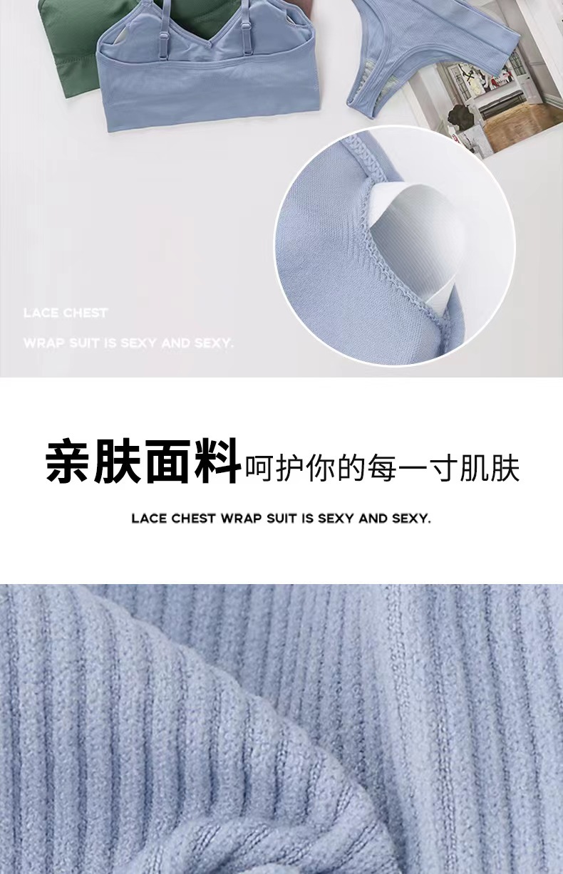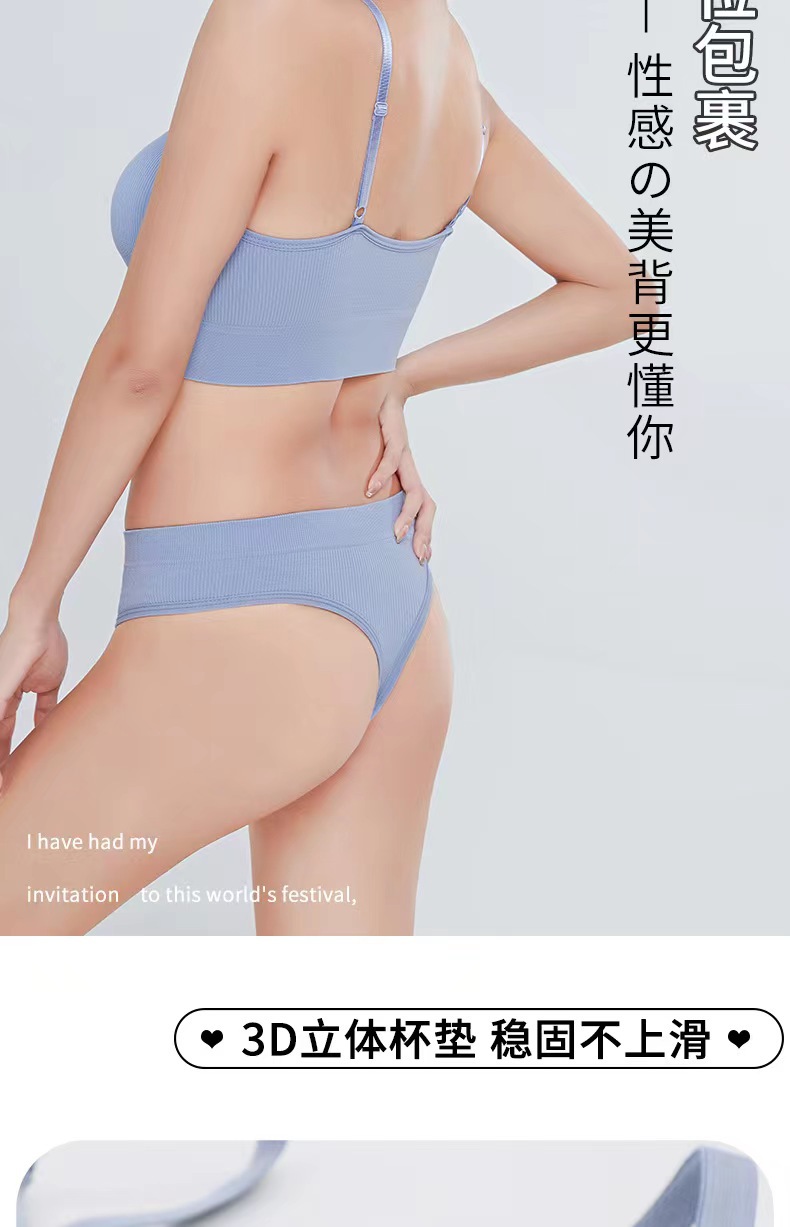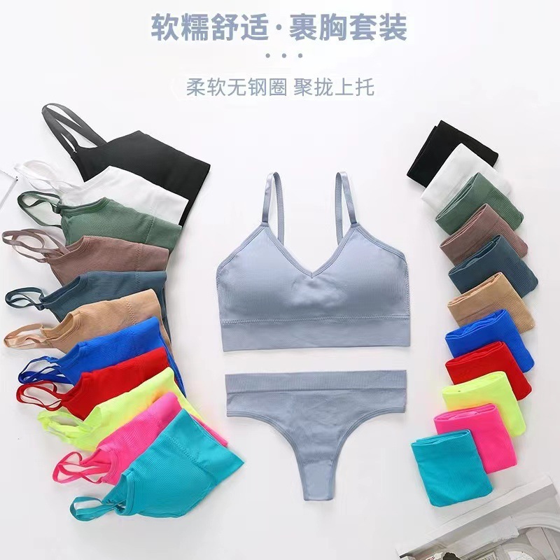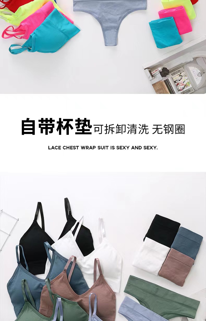 크로스보더 빅 U 뷰티 백 스포츠 브라 T자형 팬티 세트 섹시한 심리스 스레드 조절 벨트 뷰티 백 여성 프렌치 속옷