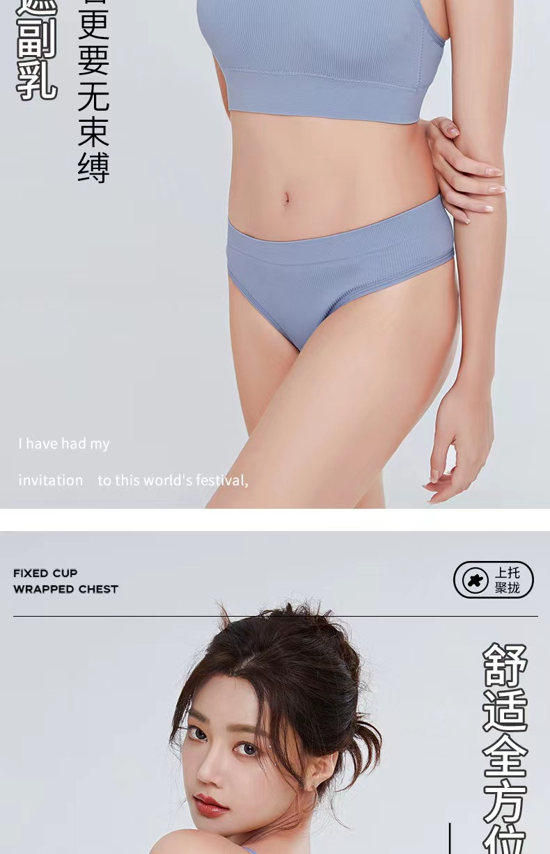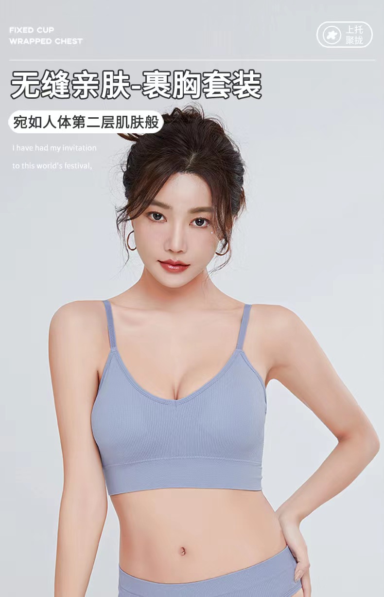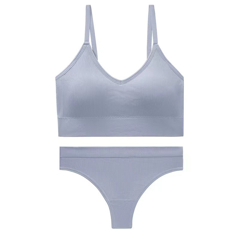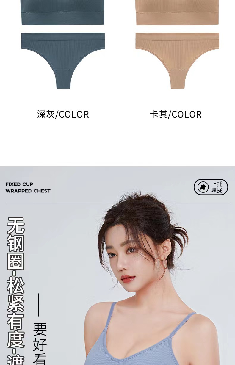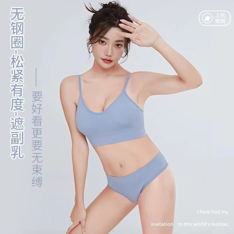 크로스보더 빅 U 뷰티 백 스포츠 브라 T자형 팬티 세트 섹시한 심리스 스레드 조절 벨트 뷰티 백 여성 프렌치 속옷