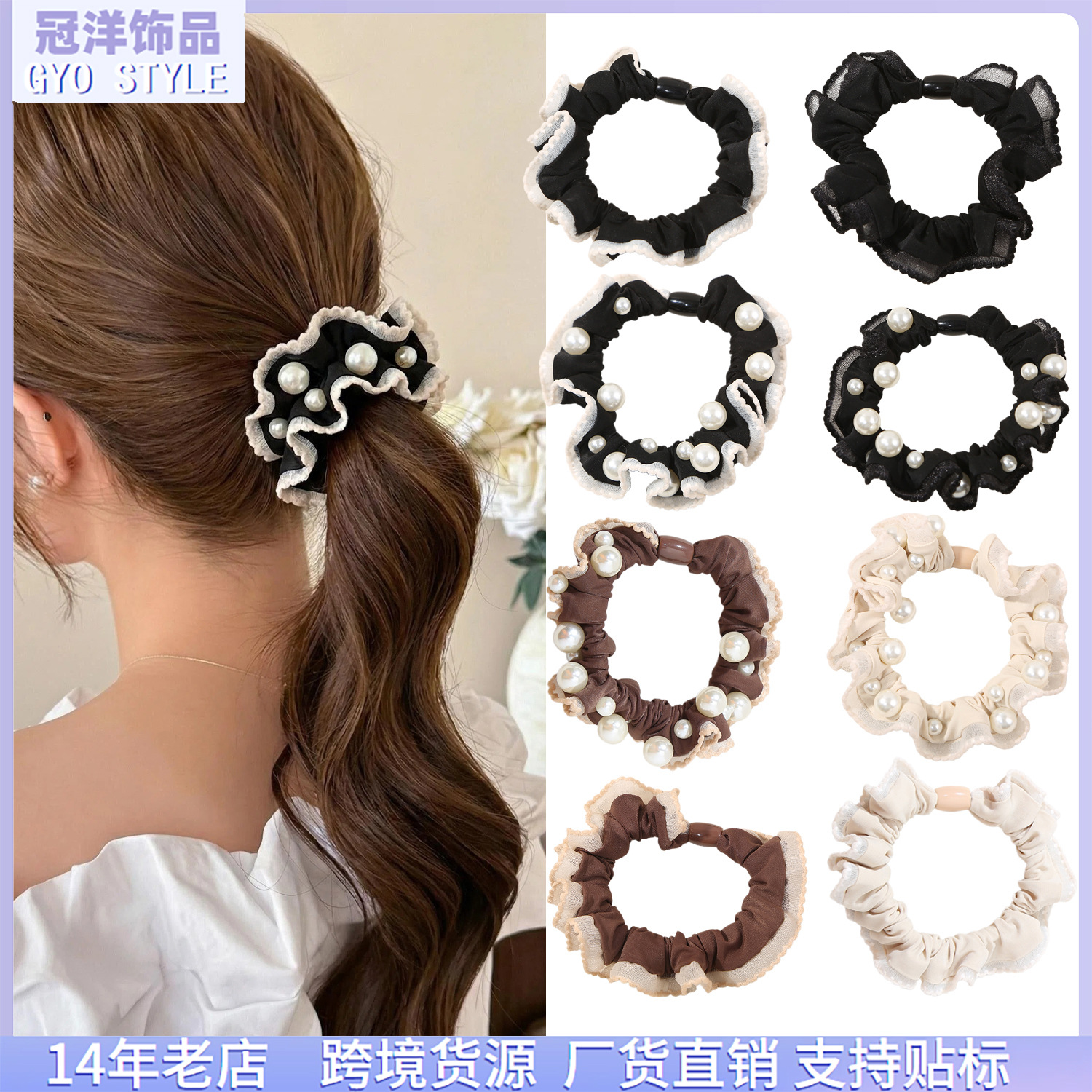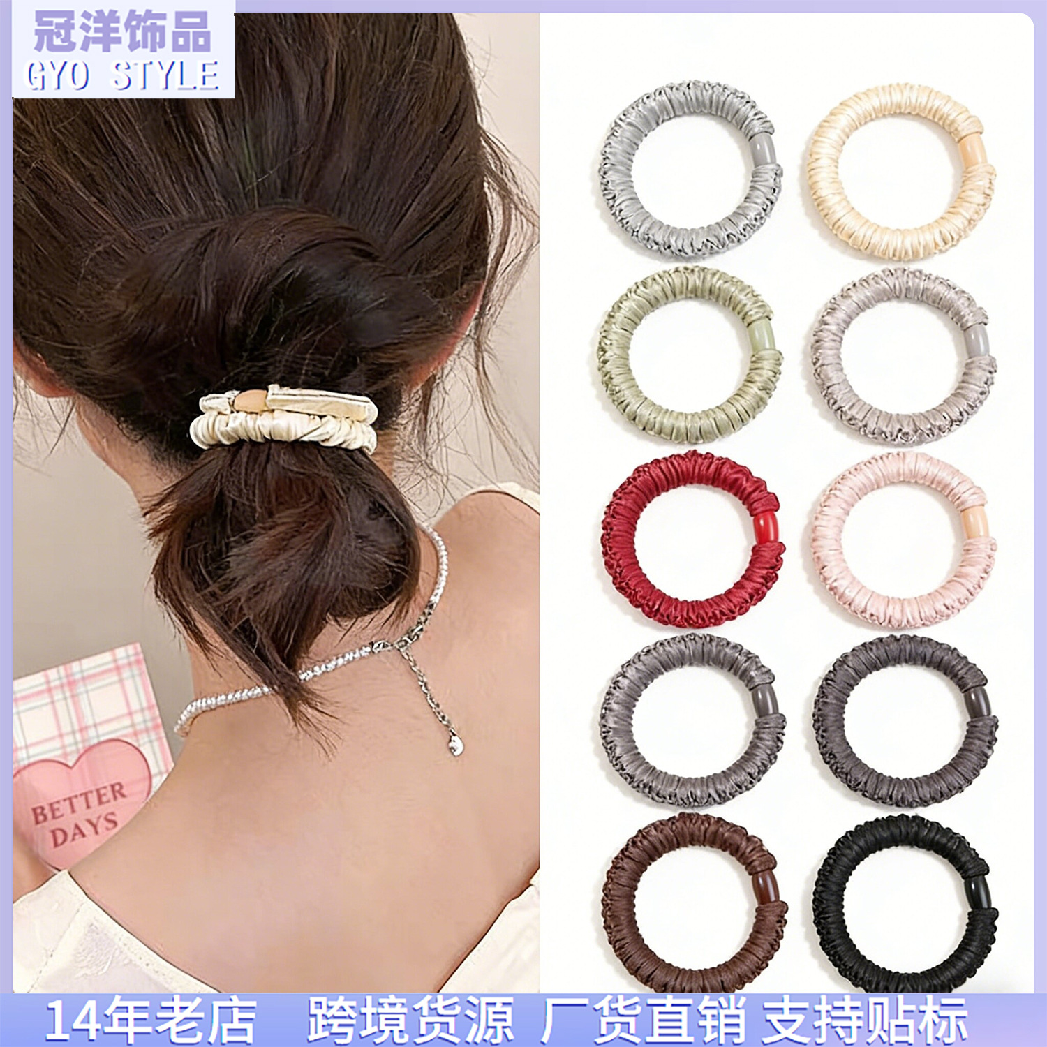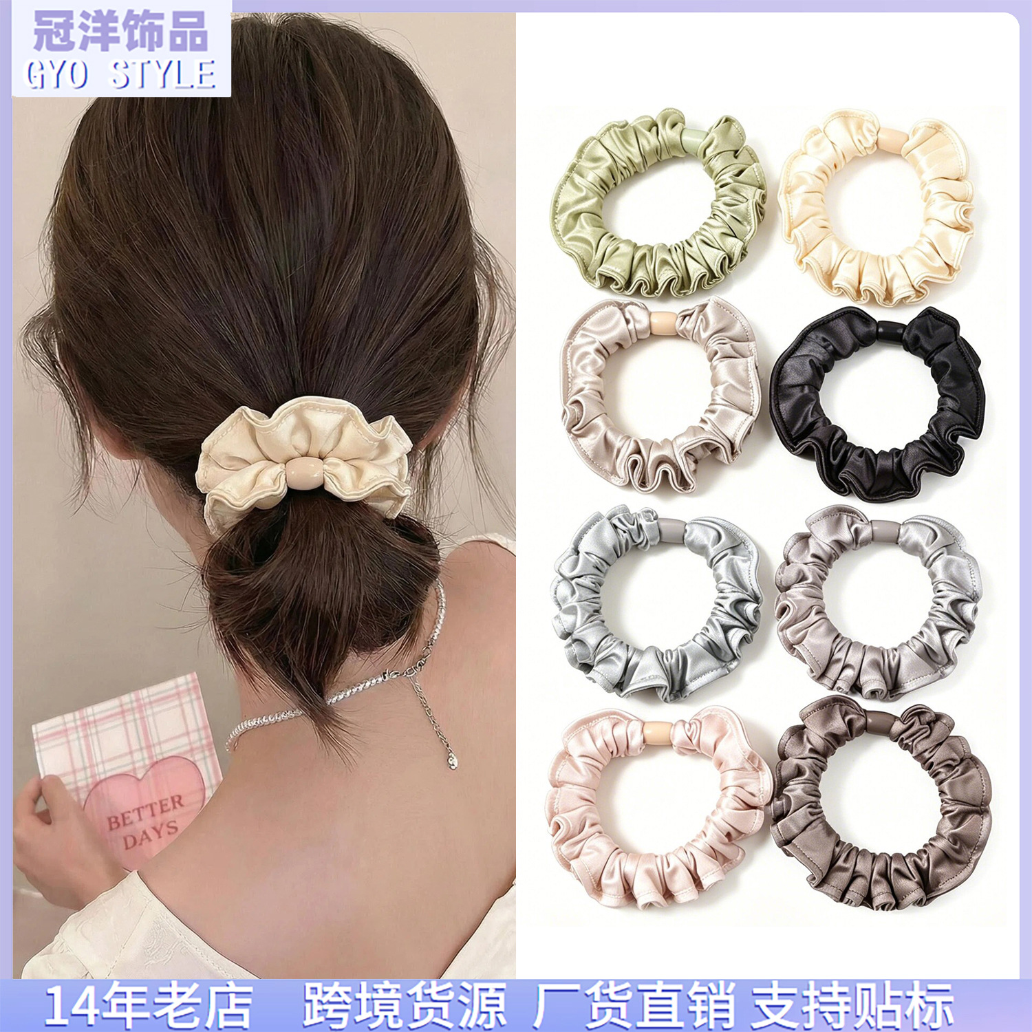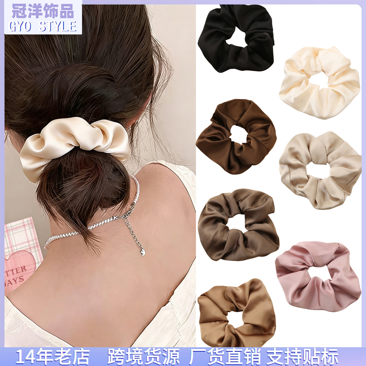 국경 단색 대장 머리 반지 고급 새틴 머리 밧줄 여성 돼지 대장 꽃 지방 소시지 머리 반지 한국식 헤어 액세서리